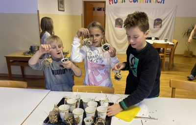 V mesecu januarju smo v Soči veliko časa namenili opazovanju ptic. Ana nam je popestrila dopoldne z delavnico izdelave ptičjih pogač. Komaj smo čakali, da se strdijo in jih lahko obesimo na drevesa v okolici šole. Naslednje dni smo opazovali, koliko semen so ptički že pojedli. Pobarvali smo vsak svojo leseno siničko. Obiskal nas je fotograf Božo. Čudili smo se fotografijam ptic, ki jih je uspel ujeti v njihovem naravnem okolju. Skupaj z Ano in Božom smo se odpravili na sprehod, kjer smo opazovali ptice. Videli smo krokarja, plavčka, čapljo, povodnega kosa, veliko in čopasto sinico. Veseli smo za to priložnost, hvala vsem omenjenim akterjem.