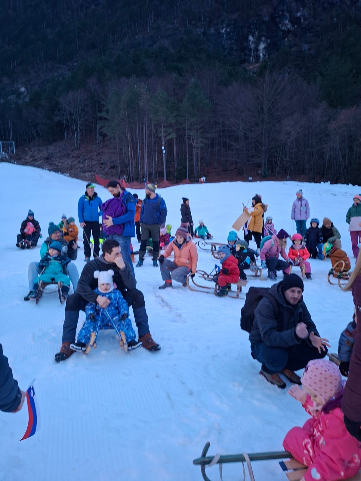 Da smo poskrbeli tudi za zdravje staršev, smo vzgojiteljice 9. februarja 2026 povabile starše in otroke na popoldansko sankanje. Imeli smo prave male olimpijske igre, kjer smo se preizkusili v spuščanju s sankami po belih strminah, premagovali različne ovire ter spodbujali domišljijo in raziskovanje. Po tem smo se igrali in kepali v kupih snega, kar je poskrbelo za zdrava rdeča lica. Dan smo zaključili prijetno utrujeni in z nasmehi na obrazih, ob tem pa smo veliko časa preživeli na svežem zraku ter uživali v gibanju na prostem. Takšne aktivnosti ne razvijajo le telesnih sposobnosti, ampak tudi socialne veščine in sodelovanje med otroki, starši in vrtcem.