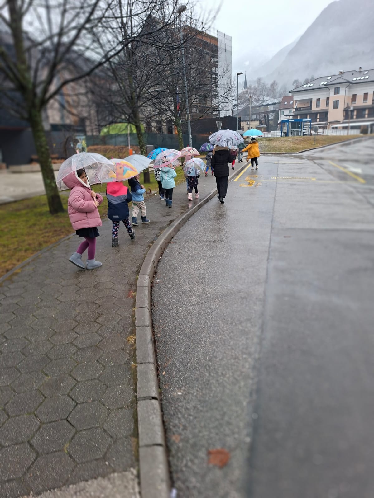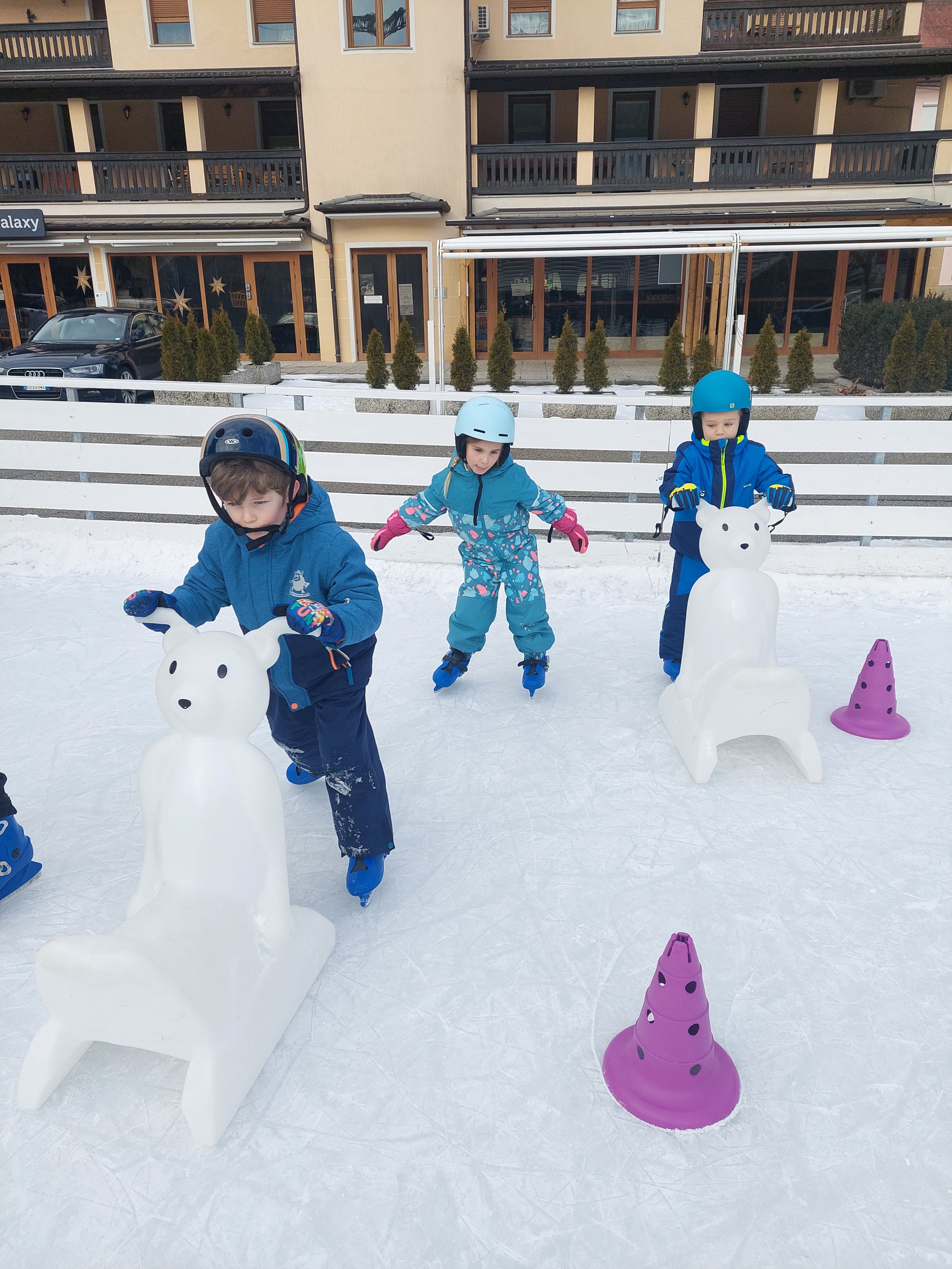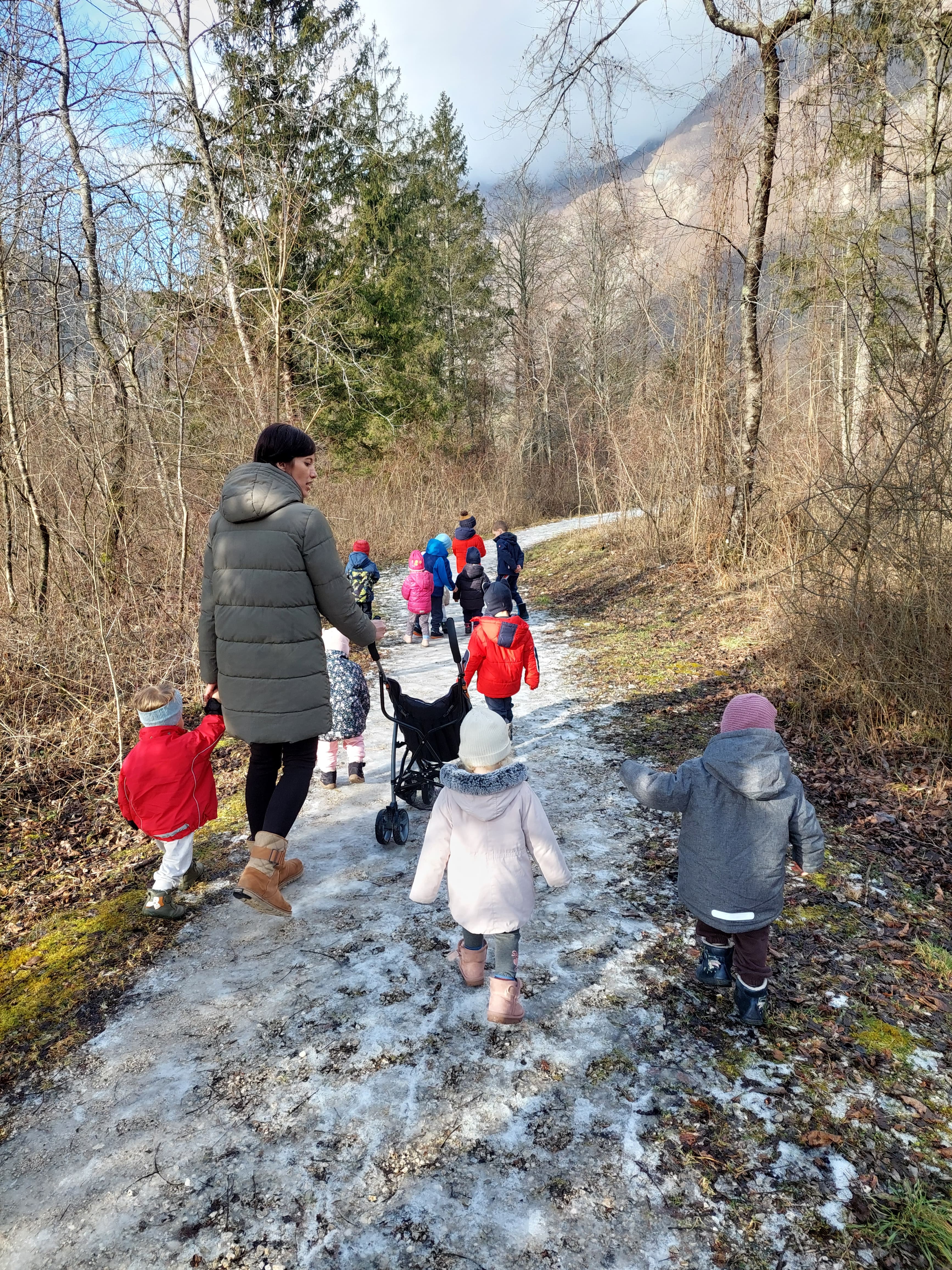 Za dodatno športno doživetje smo izkoristili drsališče v Bovcu, kjer so se drsanja preizkusili otroci iz skupin Zajčki, Ptički in Barvice. Otroci so pokazali veliko poguma, vztrajnosti in veselja do gibanja. Najstarejši smo se z avtobusom odpravili v Tolmin, kjer smo obiskali kino, vrtec Tolmin in knjižnico Tolmin. Ob tem smo širili obzorja, spoznavali novo okolje ter utrjevali kulturno vedenje na javnih mestih.