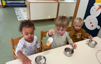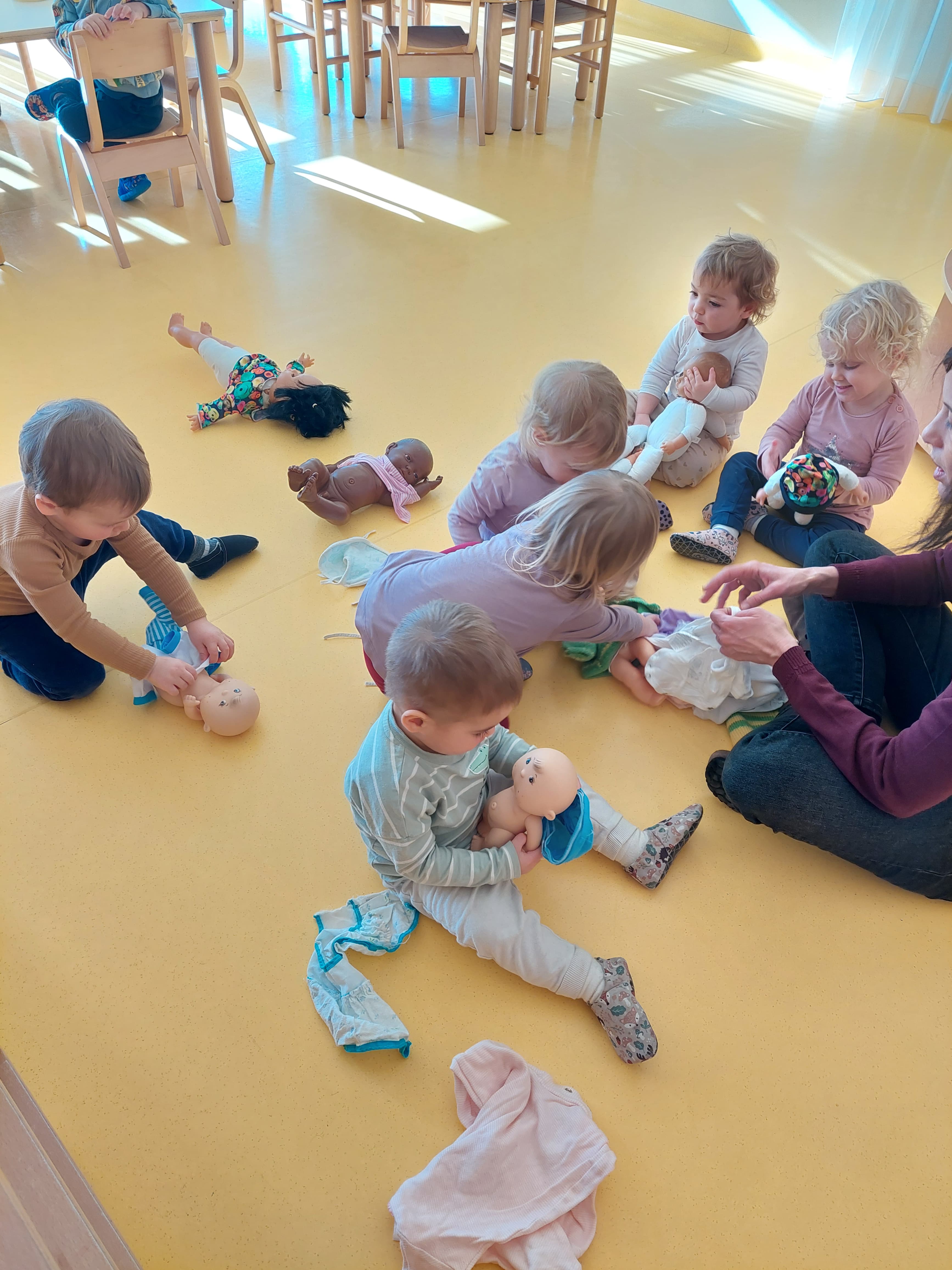 V skupini Barvice, je narava po počitnicah poskrbela za naše zdravje in pobelila travnike. Hitro smo to izkoristili in v vrtec prinesli bunde, kombinezone, rokavice, kape, šale ter sanke in lopate za sankanje. Podali smo se na igrišče, kjer smo uživali v zimskih radostih in svežem zraku. Pogovor je nanesel tudi na zimska oblačila, zato smo poleg sebe primerno oblekli še naše dojenčke. Starši so nam pripravili presenečenje in odigrali lutkovno predstavo o živalih, ki prespijo zimo, in tistih, ki ne. Ugotovili smo, da je spanje zelo pomembno za zdravje in krepitev imunskega sistema.