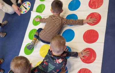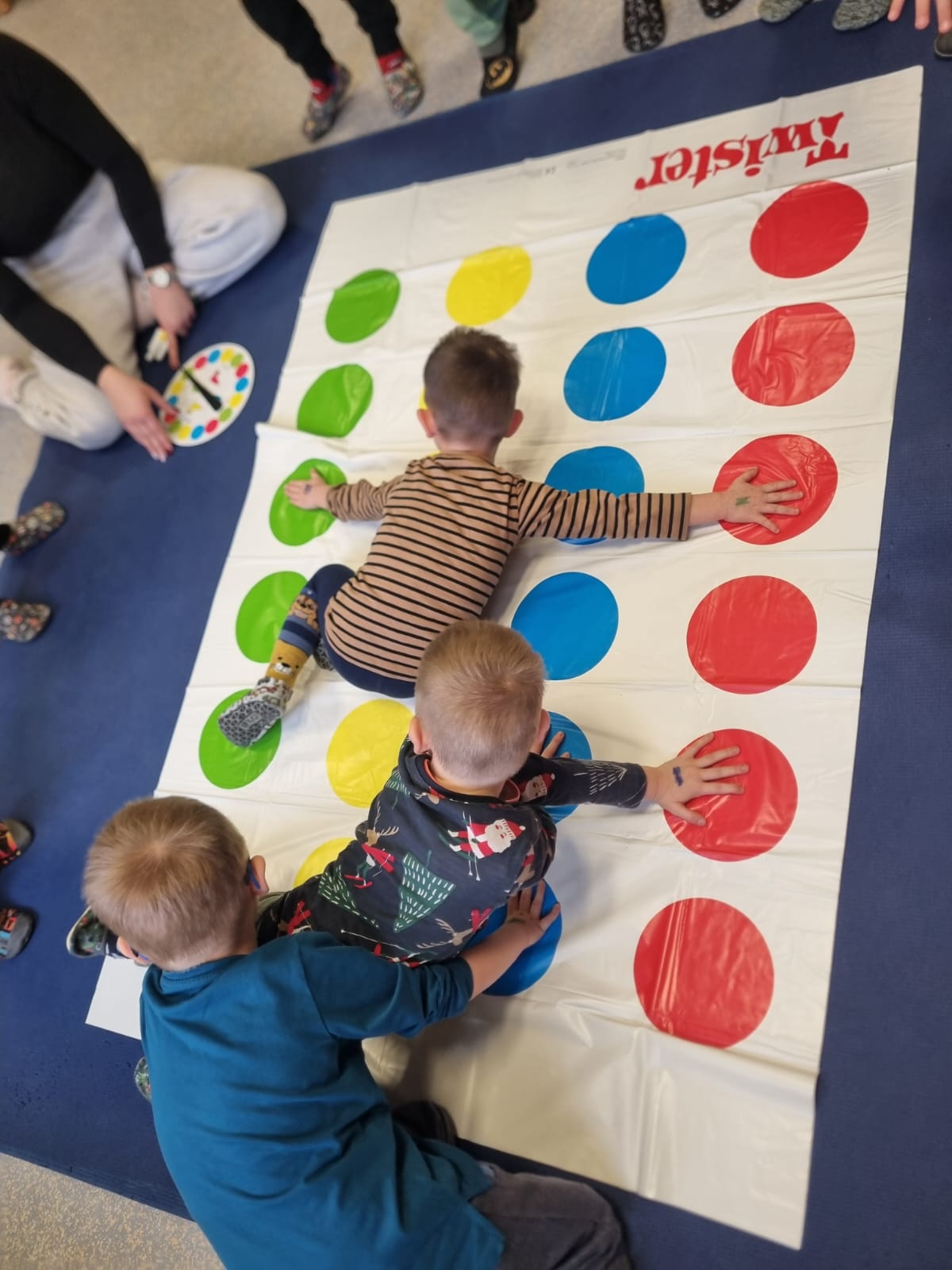 V Pikapolonicah smo letos spremljali Zimske olimpijske igre. O športih smo se veliko pogovarjali in jih nato izvajali v vrtcu v različnih prilagojenih oblikah. V telovadnici smo izvajali drsanje s ploščami iz stiroporja, skoke smo izvajali iz blazin, sankanje na toboganu in smučanje s kartonskimi smučmi. Otroci so se pri tem učili koordinacije, ravnotežja in gibanja po prostoru ter se zabavali ob posnemanju zimskih športov. Ob tem smo se pogovarjali tudi o tem, kako se počutimo, ko zmagamo, in kako, ko izgubimo. Otroci so spoznali, da se ob zmagah ni potrebno bahati, da je lepo biti vesel za druge in da lahko uživamo v igri ter uspehu, ne glede na rezultat. Prav tako smo krepili fino motoriko z igranjem s pincetami, cofki, plastelinom, škarjami, elastikami in natikanjem perlic, s čimer smo krepili prste, da bodo otroci v prihodnosti lažje pisali, risali in izvajali druge natančne ročne dejavnosti. Odločili smo se tudi, da bomo namenili cel teden gibanju na prostem in športnim dnevom, kjer smo otrokom omogočili premagovanje različnih ovir, spodbujali domišljijo, raziskovanje ter hkrati razvijali koordinacijo, ravnotežje in moč nog, pri tem pa uživali v igri in gibanju v naravi.