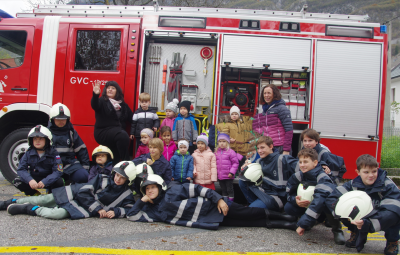 Danes smo imeli v vrtcu prav poseben obisk. V okviru meseca požarne varnosti, ki ga obeležujemo v oktobru, so nas obiskali Bovški gasilci s čisto pravimi gasilskimi vozili.