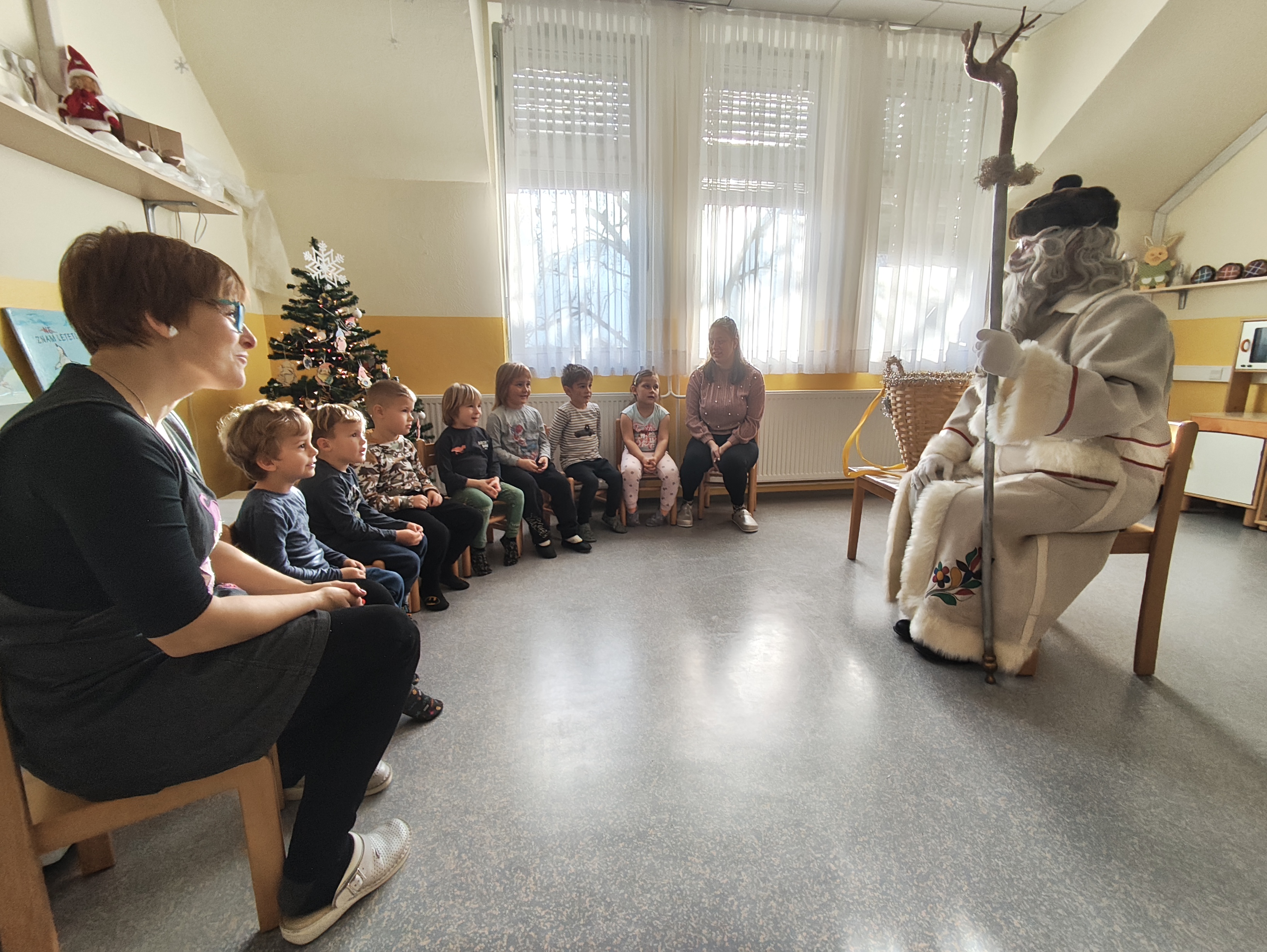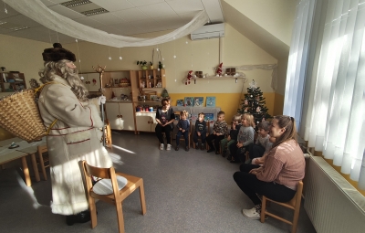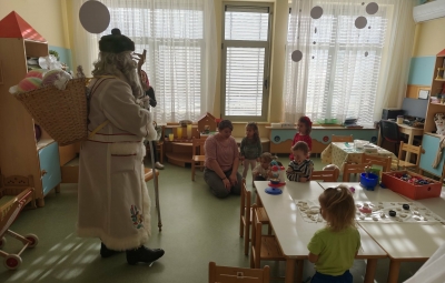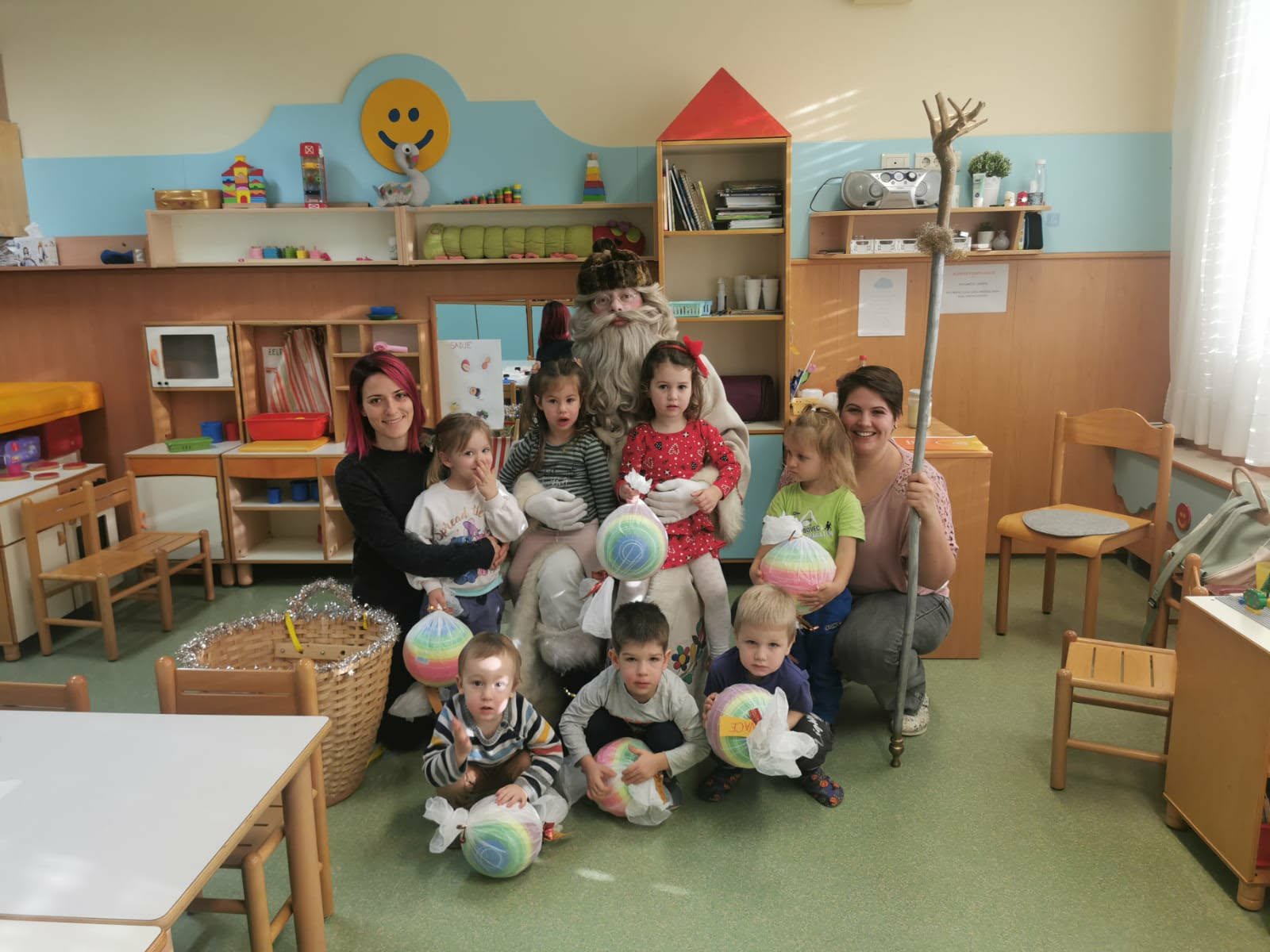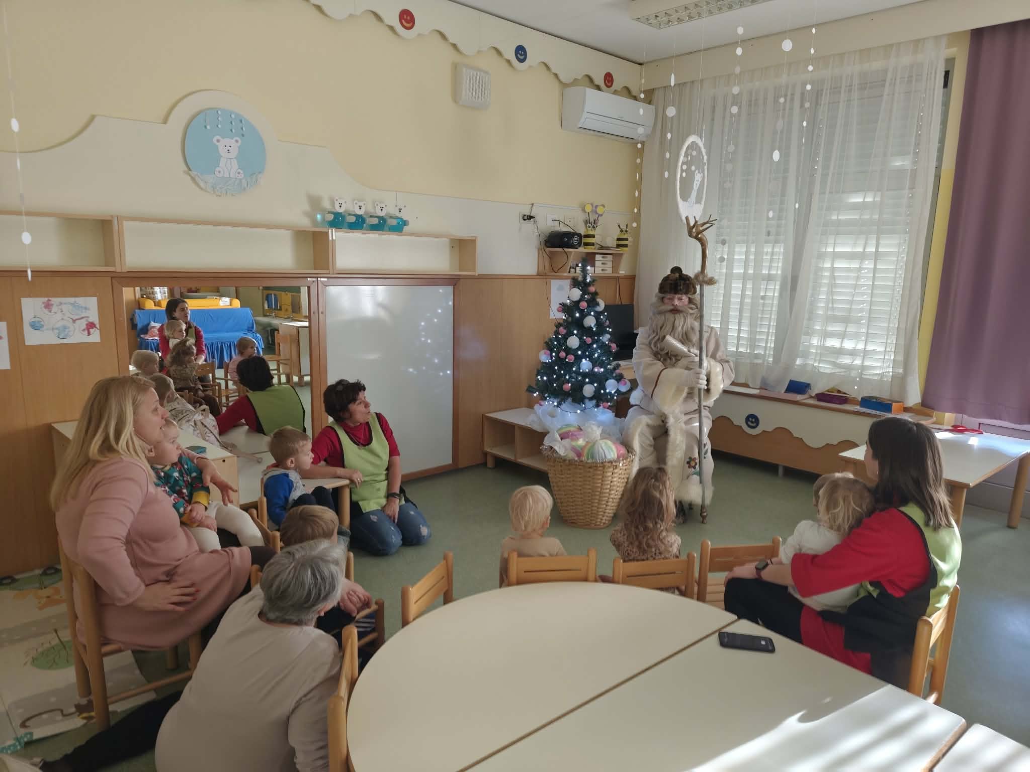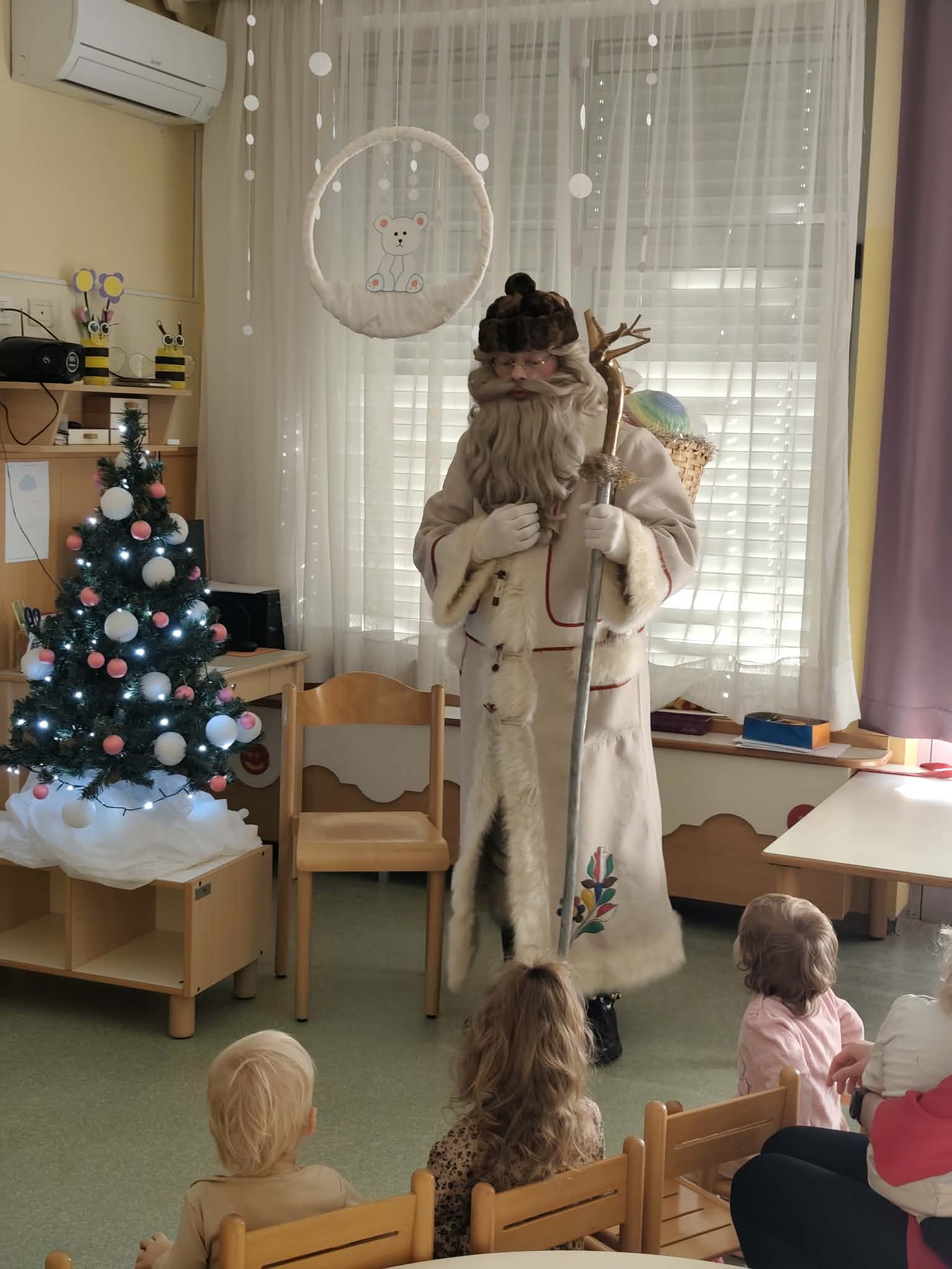V našem vrtcu smo doživeli še en poseben in čaroben decembrski dan, saj nas je obiskal Dedek Mraz. Otroci so ga z velikim navdušenjem pričakali in ga sprejeli z nasmehi, toplim aplavzom ter prazničnim vzdušjem. Dedek Mraz si je vzel čas za pogovor z otroki, jih povprašal o njihovih željah, igrah in vsakdanjih dogodivščinah v vrtcu. Seveda ga je zanimalo tudi, če pomagajo staršem in starim staršem pri vsakodnevnih opravilih. Otroci so mu z veseljem pripovedovali, kaj radi počnejo, in mu obljubili, da se bodo še naprej trudili biti prijazni, spoštljivi in pridni. Skupaj so zapeli nekaj prazničnih pesmi, ki so prostor napolnile z veseljem in otroškim smehom. Dedek Mraz je nato prebral seznam pridnih otrok, na katerem se je seveda znašlo prav vsako ime, kar je med otroki povzročilo veliko veselja in ponosa.