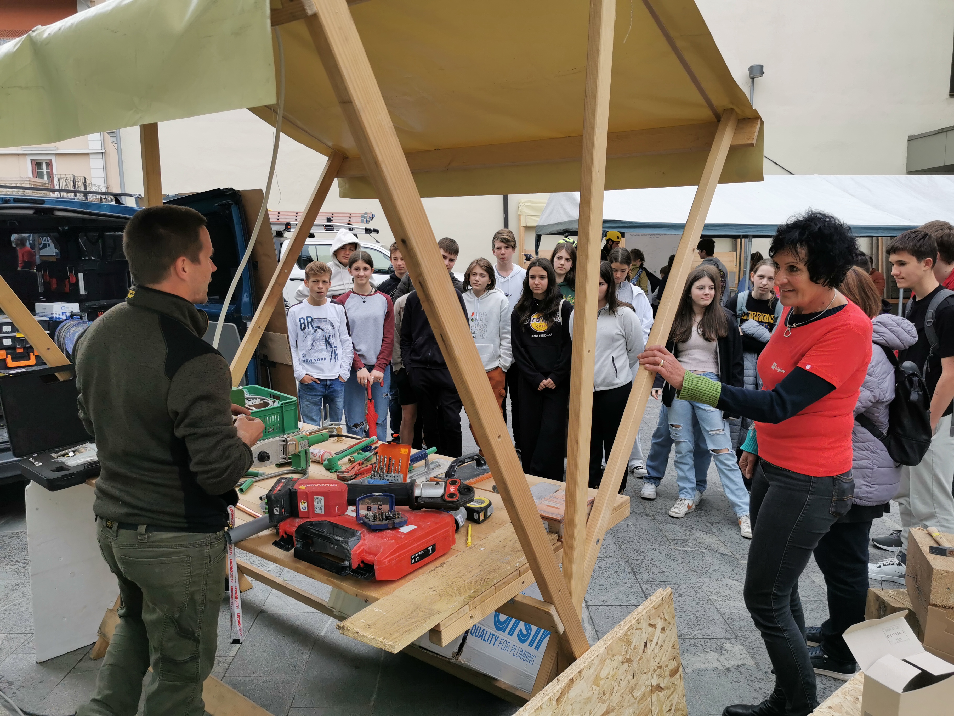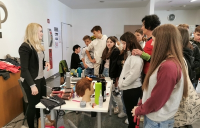 V petek, 12. 5. 2023, so učenci 8. razreda tekom dopoldneva obiskali "Ulico obrti in podjetništva" v Tolminu. Z namenom interaktivne predstavitve poklicev je Območna obrtno - podjetniška zbornica (OOZ) predstavila posamezne obrti in deficitarne poklice kot so: mehatronik, kovinar, orodjar, konstruktor, kuhar, natakar, frizer, kozmetik, cvetličar, gradbinec, vodovodar, električar, avtoklepar, mehanik, avtoličar, vulkanizer, oblikovalec spletnih strani, računalničar, kmet, policist, vojak, reševalec, gasilec itd.