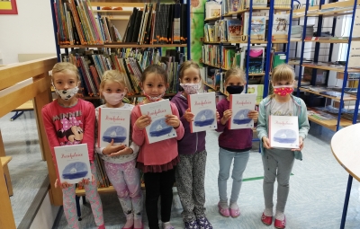 Na dan Zlate knjige, ko se prične Bralna značka, so otroci 1. razreda obiskali šolsko knjižnico. Tam smo z zanimanjem prisluhnili knjižničarki, ki nam je predstavila knjigo, ki so jo otroci prejeli v dar. Polni bralnega navdiha se podajamo novim bralnim dogodivščinam naproti.