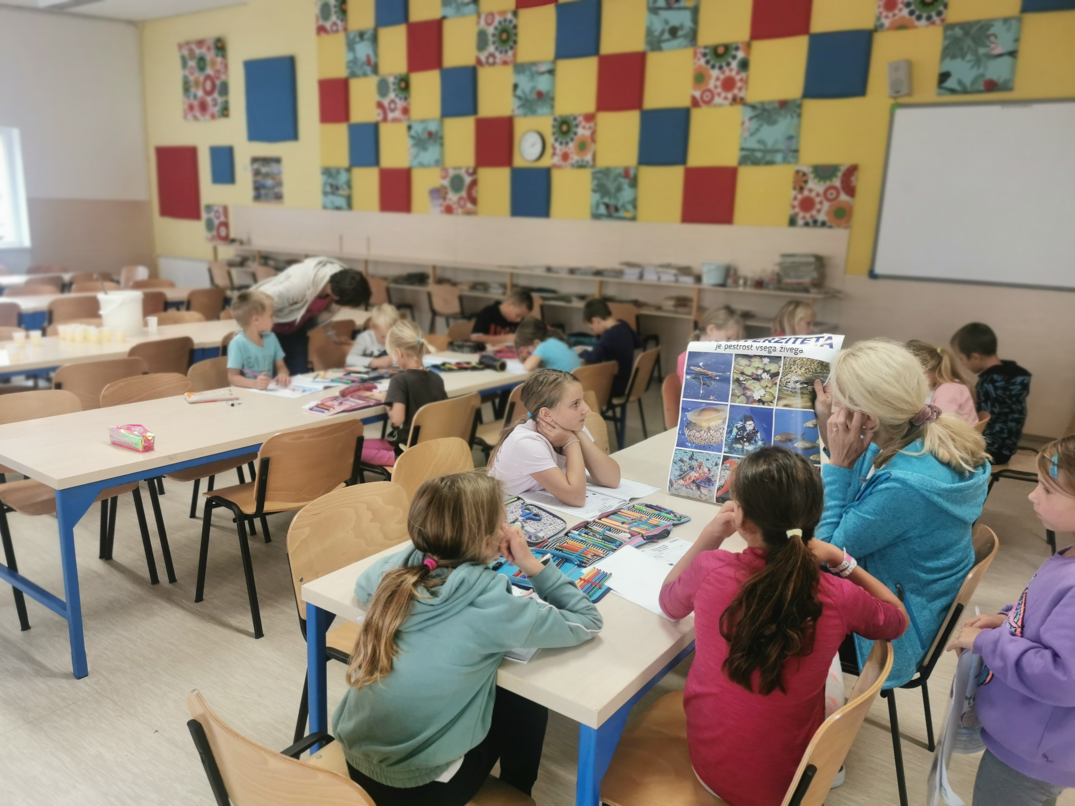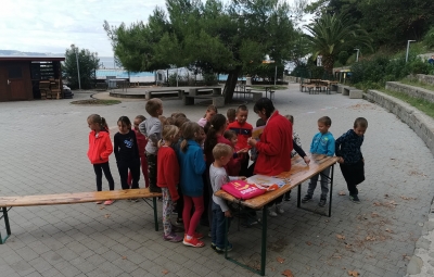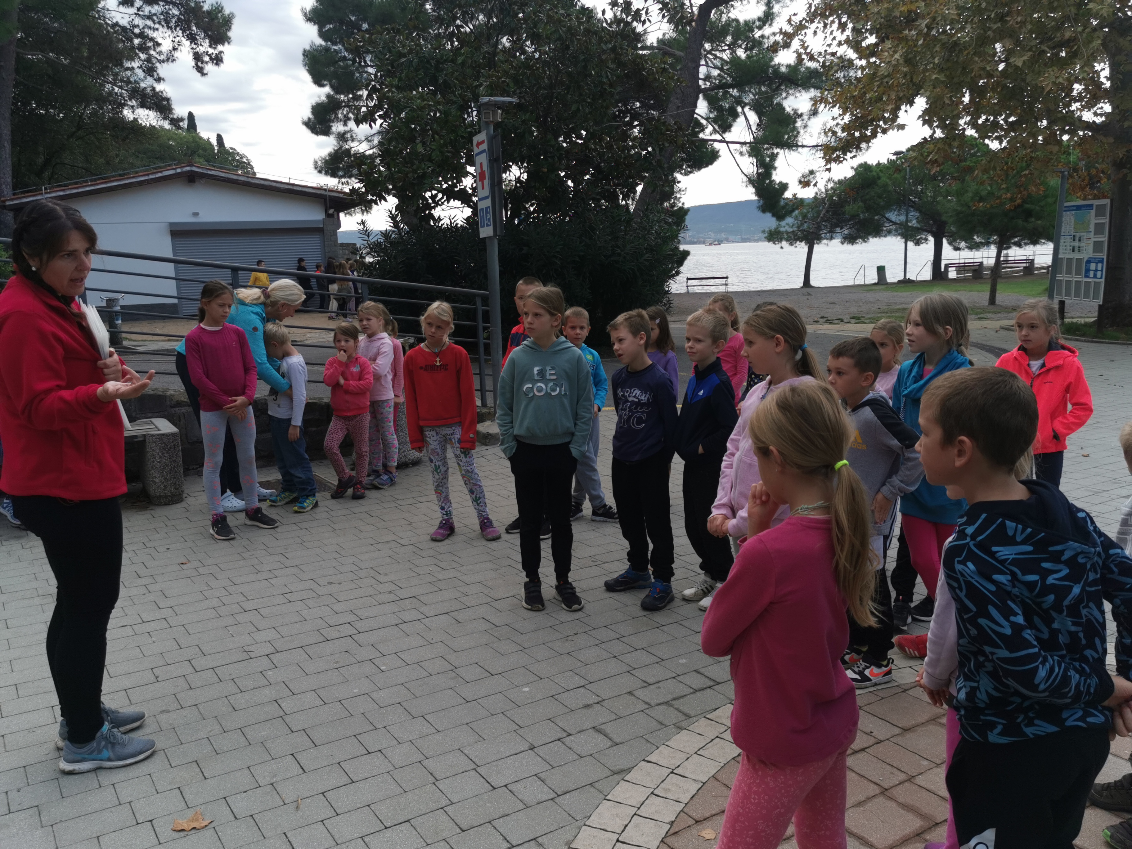 Drugi dan na Debelem Rtiču smo pričeli z jutranjo telovadbo. Po zajtrku smo se v skupinah pomerili v lovu na zaklad. Sledil je pouk in dopoldanski obisk bazena kjer pridno utrjujemo znanje plavanja.
