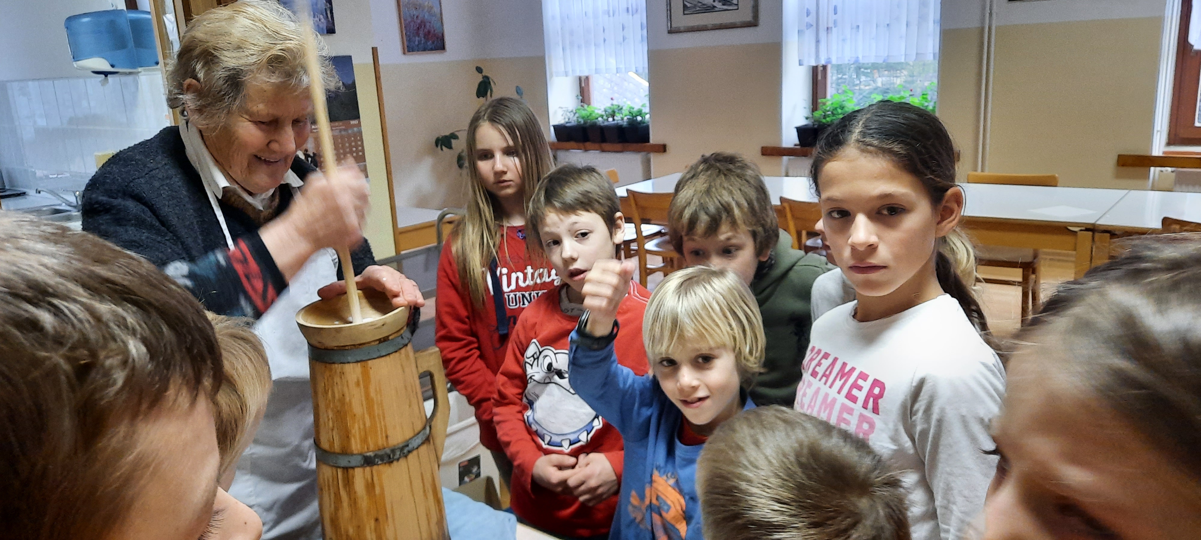 Učenci PŠ Soča smo skupaj s Sabino Kravanja izdelali domače maslo. Naredili smo ga v pinji. Maslo je bilo zelo prijetnega okusa, odličen je bil tudi pinjenec oz. po domače metuda.