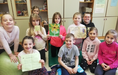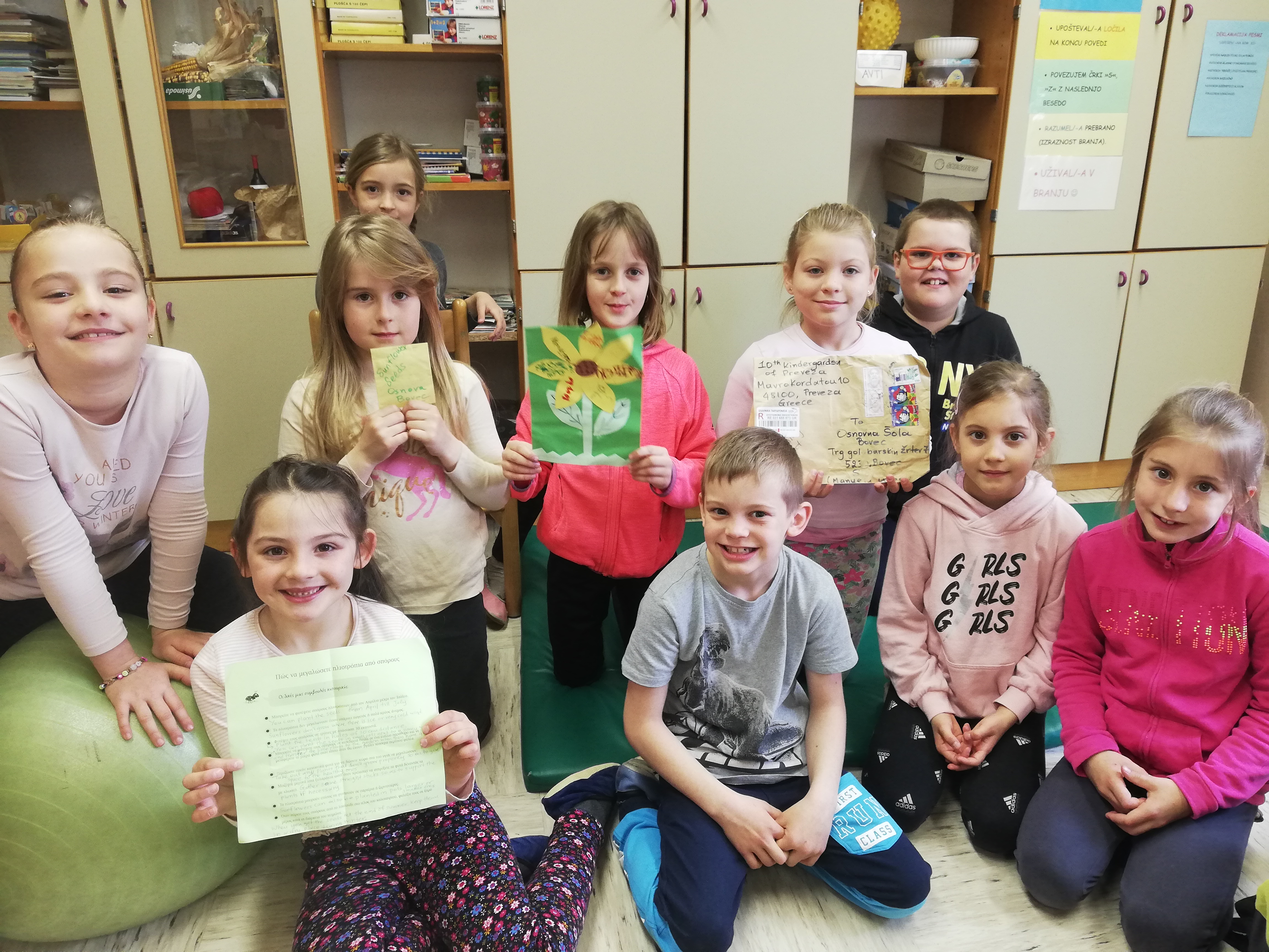 V februarju smo imeli spletno srečanje z našimi grškimi prijatelji. Izbrali smo najboljši karnevalski klobuček in skupaj zaplesali. V aprilu pa smo prejeli prav posebno pismo iz Grčije, v katerem so nam poslali semena sončnic. Te smo že posadili in sedaj vsi nestrpno čakamo, da zrastejo.