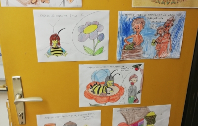 Cel teden so spoznavali našo pridno čebelico kranjsko sivko in jo na koncu tudi izdelali. Barvali so pobarvanke na temo čebelarstva in zdrave prehrane.