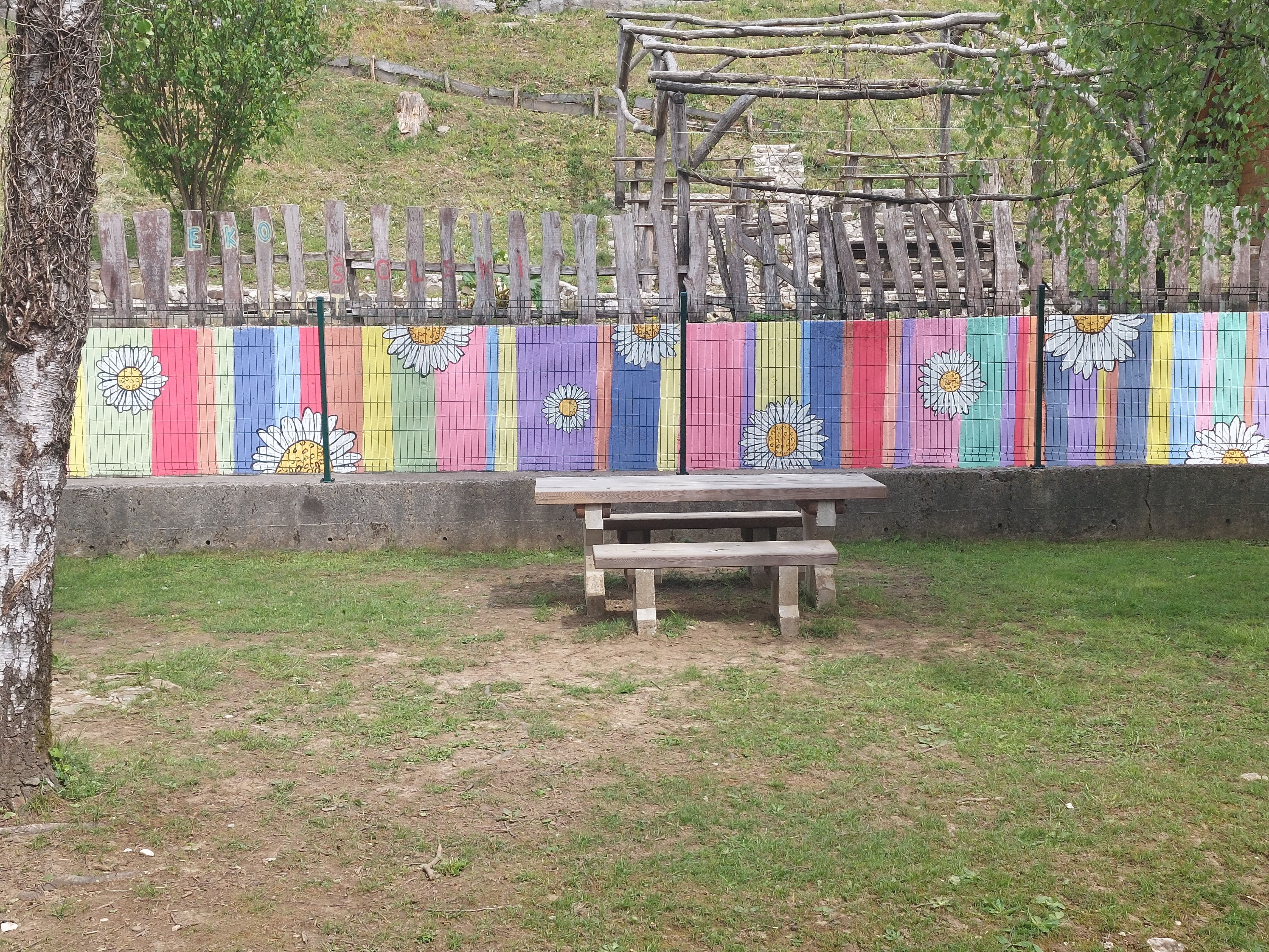 V likovni delavnici so učenci rezali kroge, s katerimi bodo okrasili kulturni dom, in šablone rož za poslikavo zidu pred šolo. Nadaljevali so s slikanjem zidu, da bo pot v šolo bolj prijetna.
