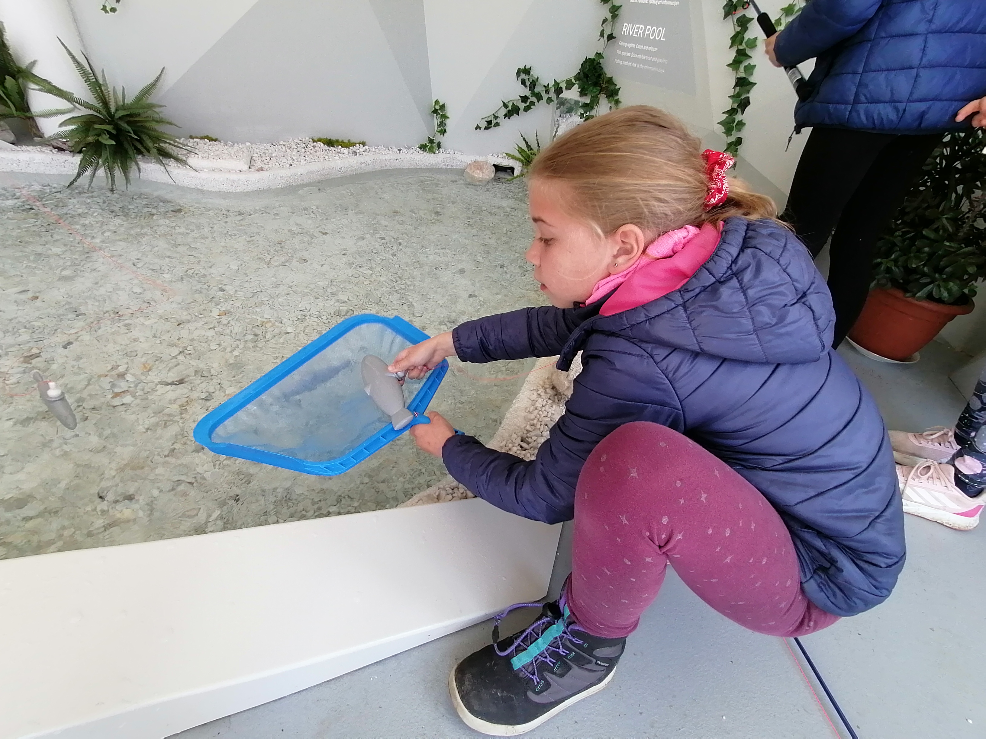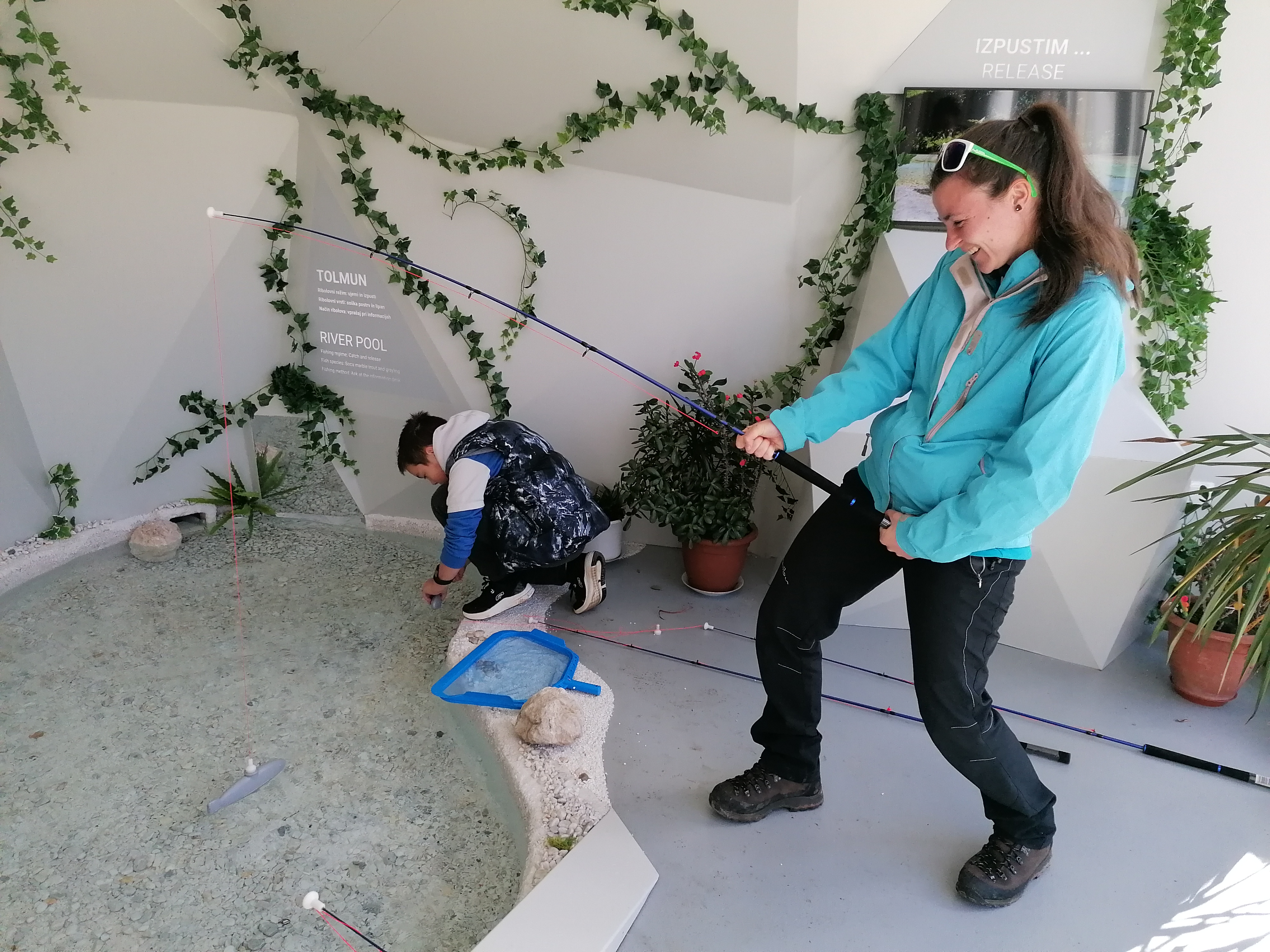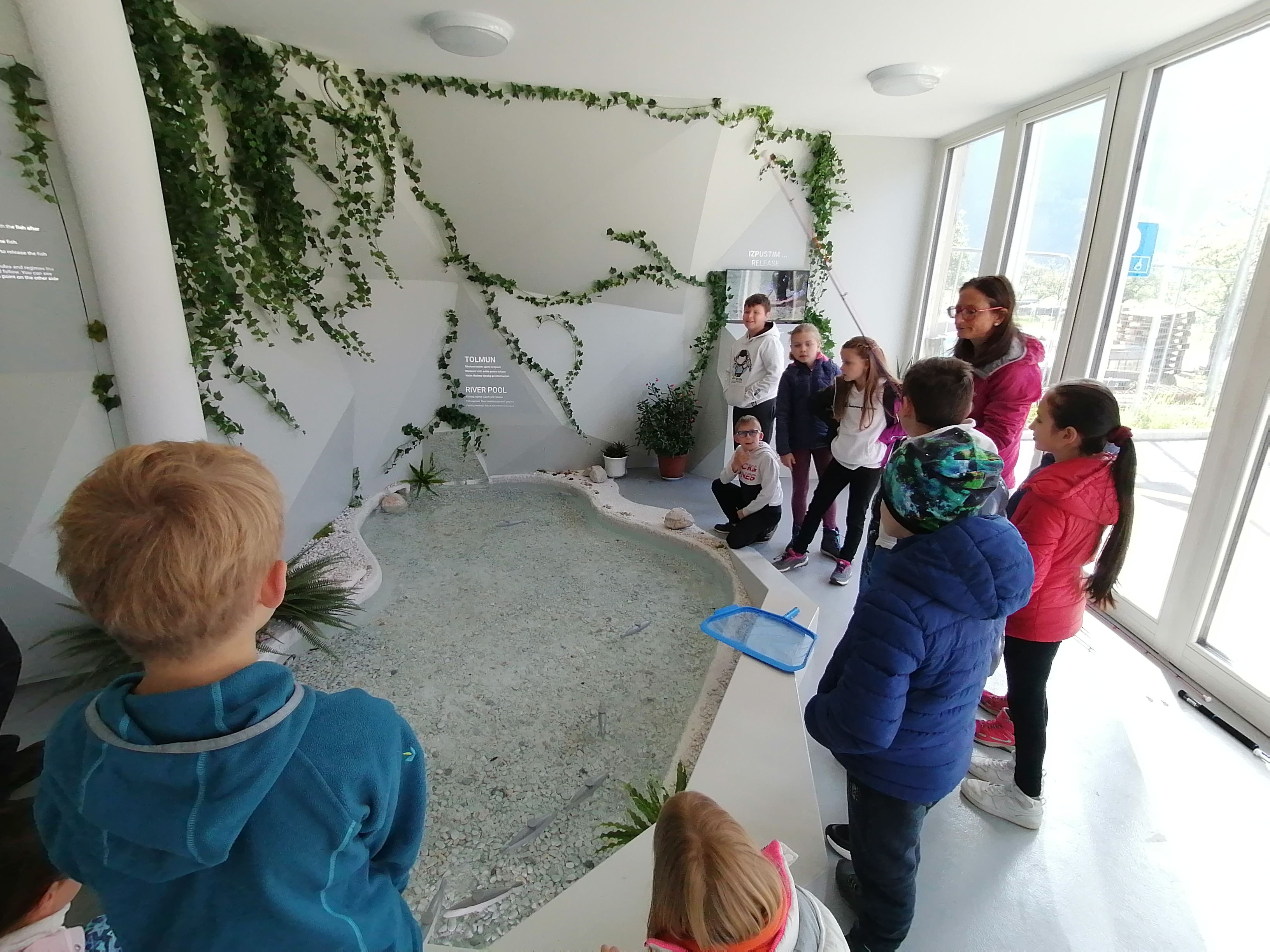 Učenci tretjega in četrtega razreda so se v lepem sončnem, čeprav malo hladnem vremenu, odpravili peš na Kal Koritnico, kjer so si v Ribiški hiši ogledali razstavo, ki predstavlja eno najbolj priljubljenih oblik športnega ribolova – muharjenje. V majhnem tolmunu so lovili umetne ribe, ki predstavljajo avtohtoni vrsti rib, ki domujeta v reki Soči, to sta soška postrv in lipan.