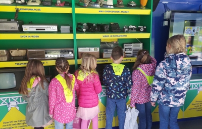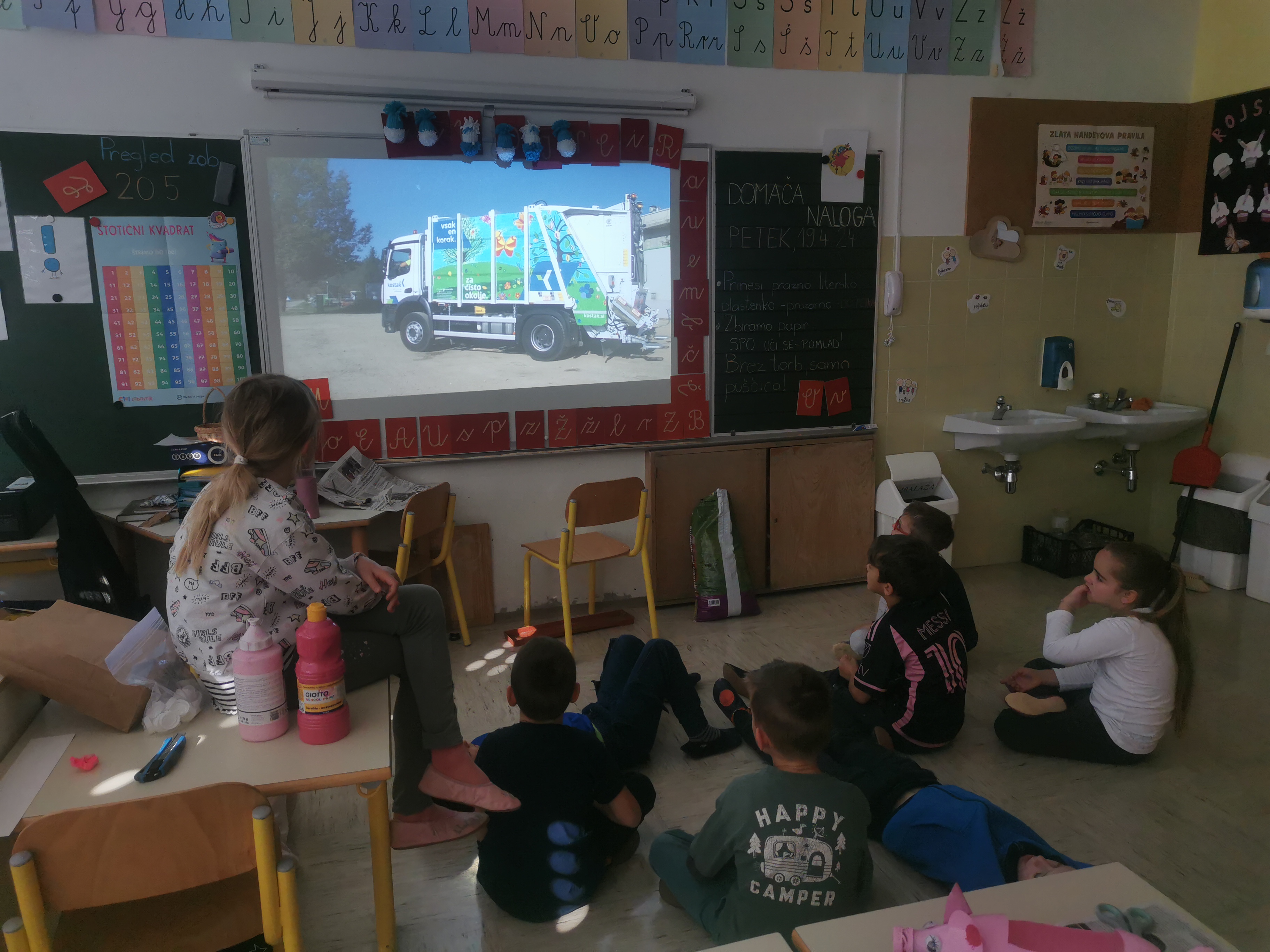 Naši prvošolci so si v tem času ogledali nekaj filmčkov o ločevanju odpadkov, se odpravili na ogled ekološkega otoka in zaigrali igrico na omenjeno temo.