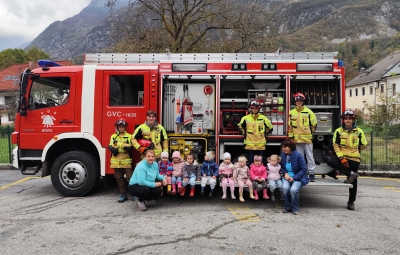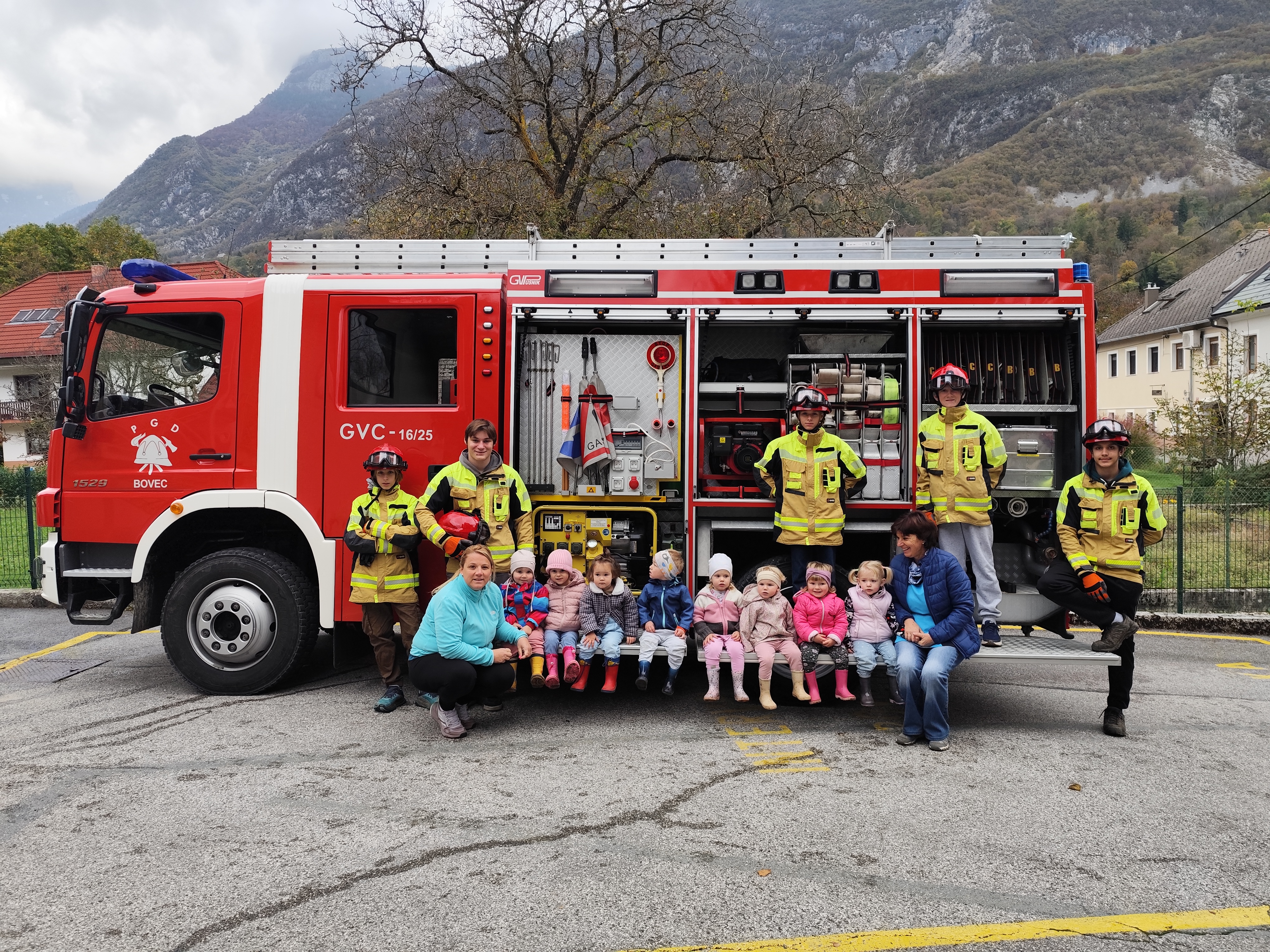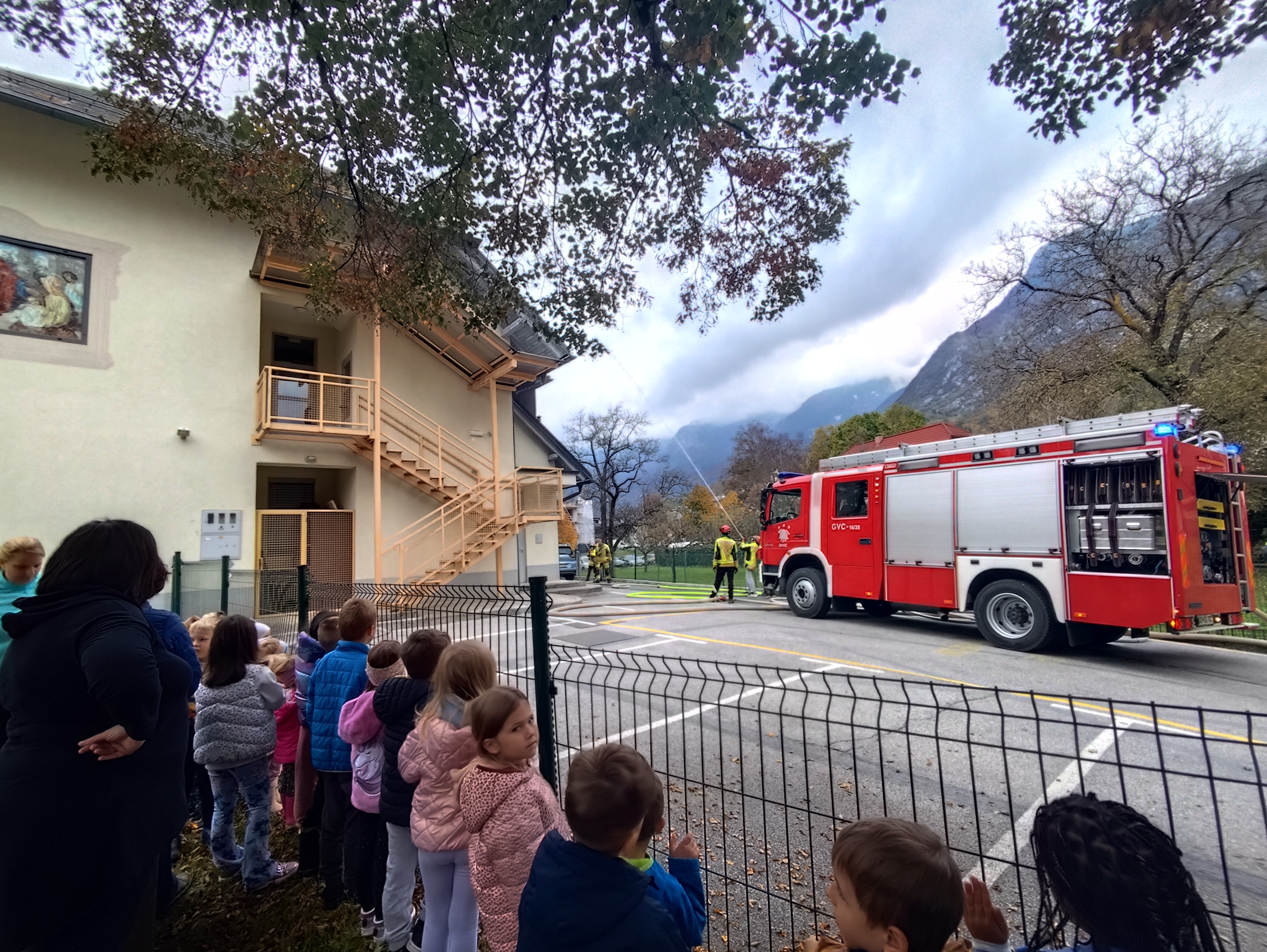 Ponedeljkovo jutro je zaznamoval alarm, ki se je sprožil v našem vrtcu. Vse majhne in velike je iz hiše pregnal, da čimprej na varno smo se skrili in čakali nova navodila. Kje gori, če gori, kaj gori in sploh, kaj se dogaja, nas je zanimalo, ko na naše dvorišče že gasilski je kamion s sireno zavijal. Gasilci z nasmehom na obrazu so nam izdali, da lažni preplah smo zagnali, samo zato, da vajo evakuacije bi izpeljali. Ob tem smo hitro dojeli, da smo se tokrat odlično izkazali, ampak kljub temu si želimo, da nikoli realno v taki situaciji ne bi pristali. Vsekakor pa kar nekaj malčkov izmed naših vrst so kazali potencial, in verjamemo, da nekoč kot gasilci, na pomoč se podajo.