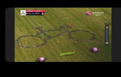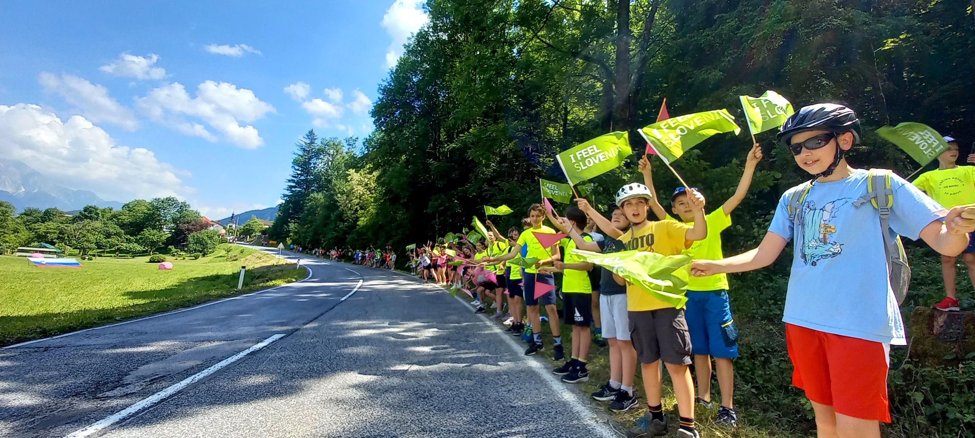 Kolesarska dirka Giro d'Italia se je letos vrnila na slovenska tla. Zgornji del Soške doline se je cel mesec evforično tudi navzven pripravljal na prihod kolesarjev Gira in se odel v rožnato barvo. Prebivalci naselij ob poti Gira so se v okraševanju na različne načine inovativno organizirali. Tudi naša šola je prispevala k okrasitvi Bovca in Žage z rožnatimi kolesi iz gradbene pene, slikami in okraski iz blaga. Na Osnovni šoli Bovec so se učenci od 6. do 9. razreda v stilu Gira na športni dan s kolesi odpravili iz Bovca do Srpenice in spodbujali kolesarje ob poti. Na cilju so učenci skupaj z učitelji iz koles sestavili veliko kolo, ki je bilo dobro vidno iz helikopterja in tako tudi v televizijskem prenosu.