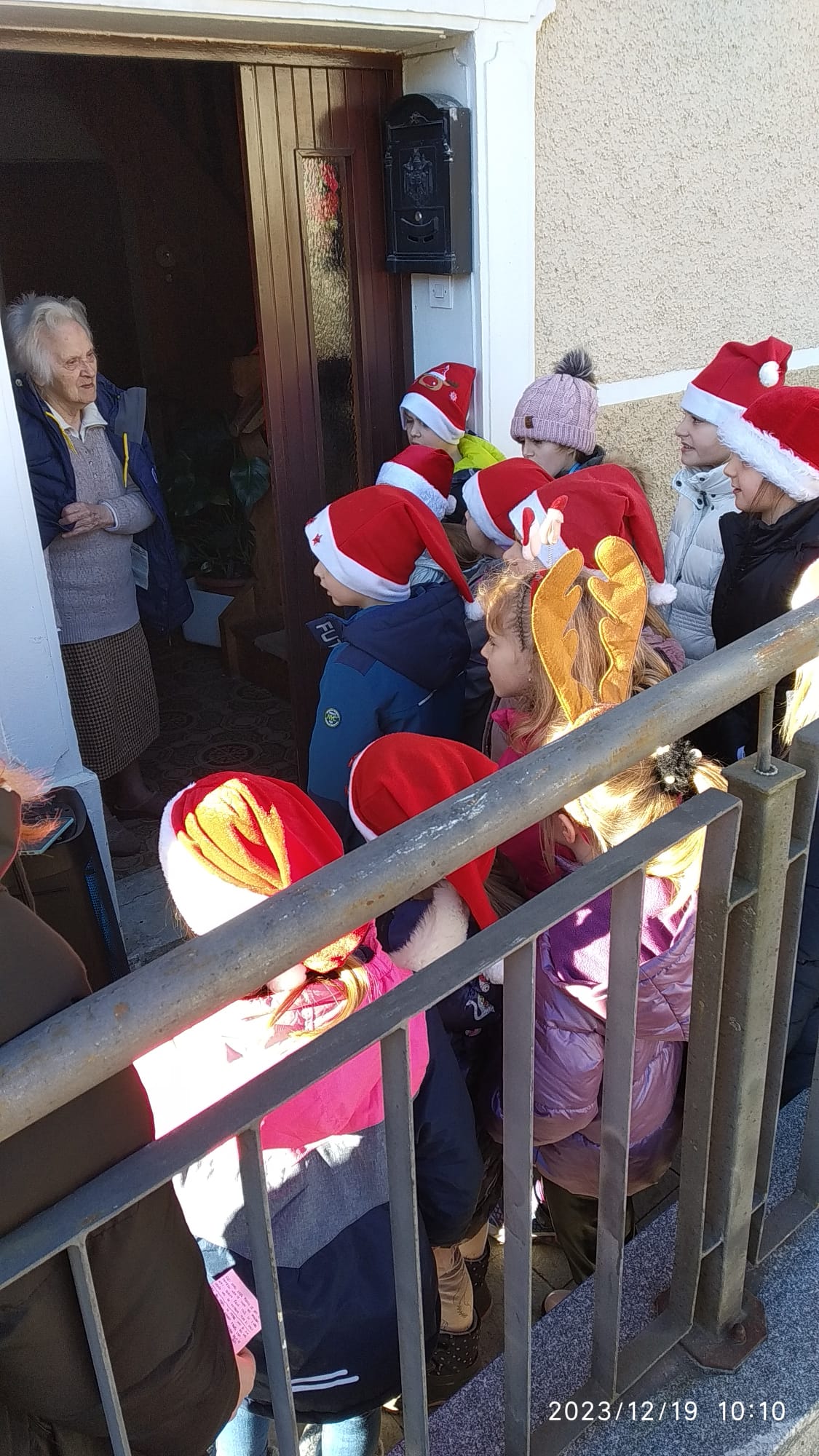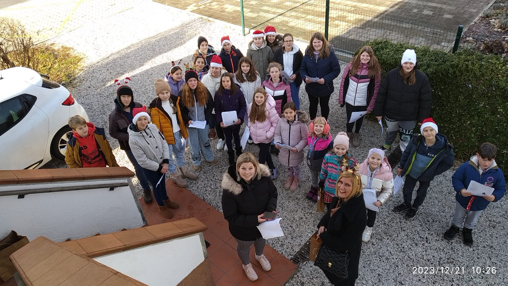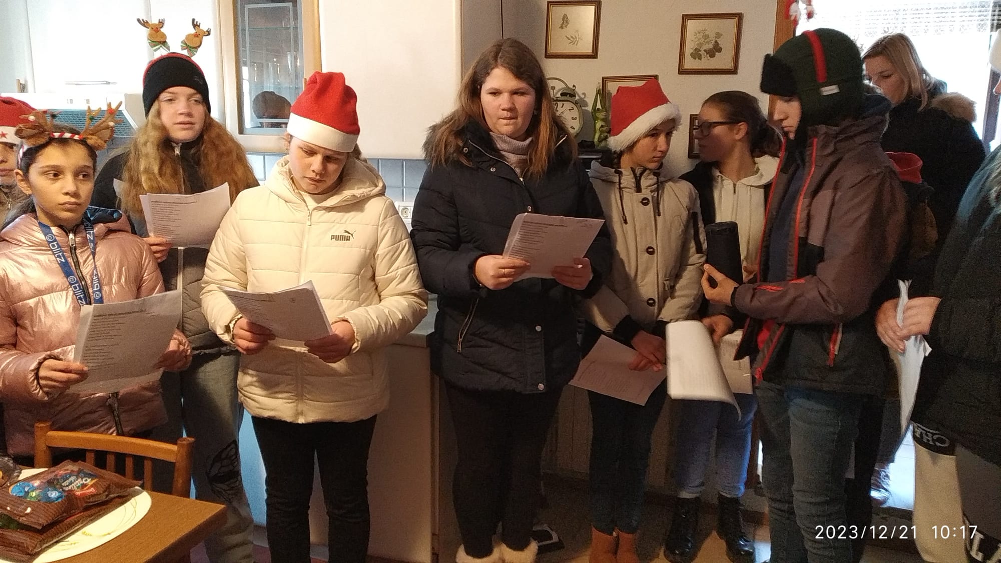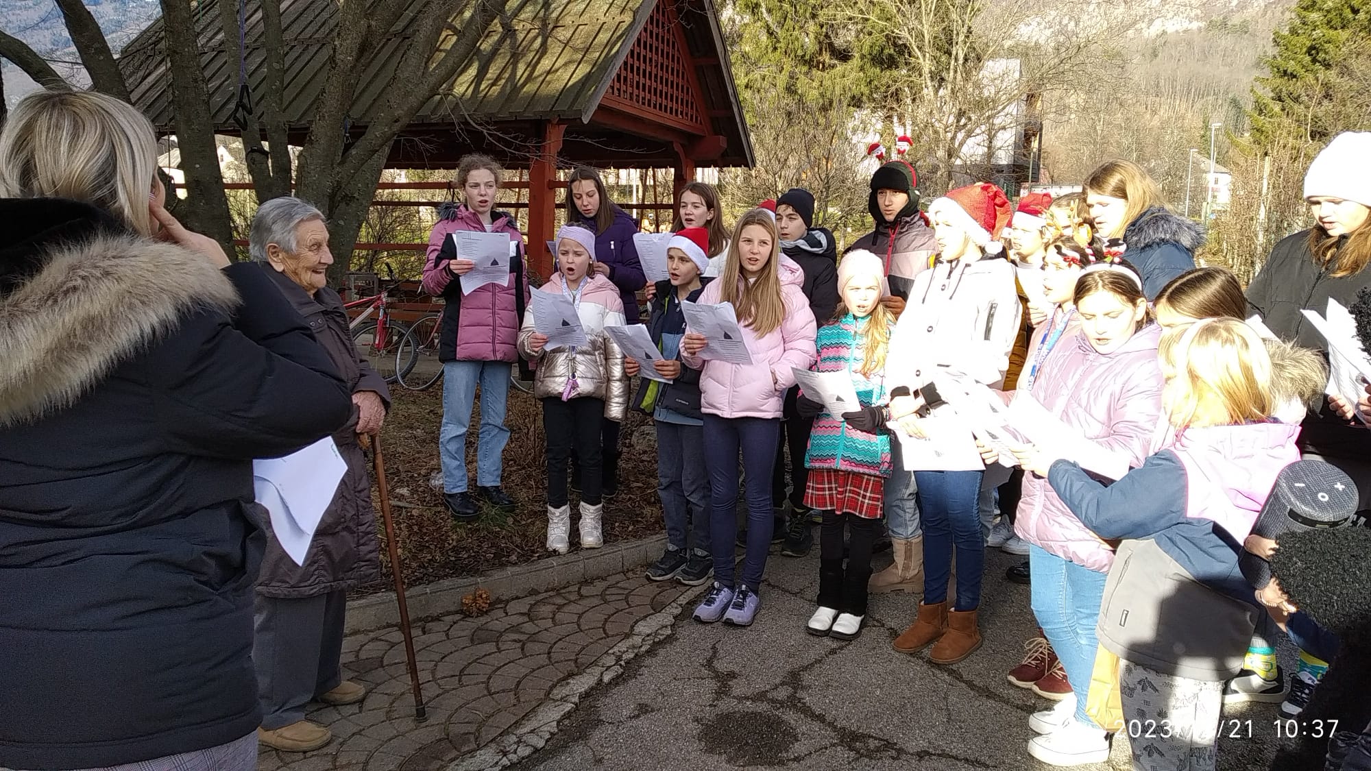 Koledovanje je star predkrščanski običaj, v času okrog novega leta. V naših krajih ni toliko značilno, zato se nam je porodila ideja, da bi na naši šoli to navado obudili. Z otroškim in mladinskim zborom smo v zadnjem tednu pred božično-novoletnimi počitnicami obiskali starejše občane, stare nad 90 let. Spremljala nas je predstavnica Rdečega križa Bovec Nada Mlekuž. S pesmijo smo jim popestrili vsakdan, v njihove domove pa prinesli upanje in veselje. Z obiskom so izrazili veliko hvaležnost, otroke so pocrkljali z veliko sladkih dobrot. Tudi mi smo jih razveselili z majhno pozornostjo in jim zaželeli mirne praznike, polne zdravja.