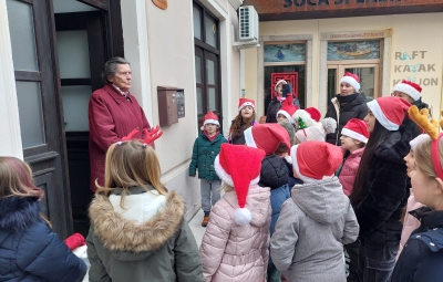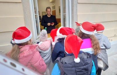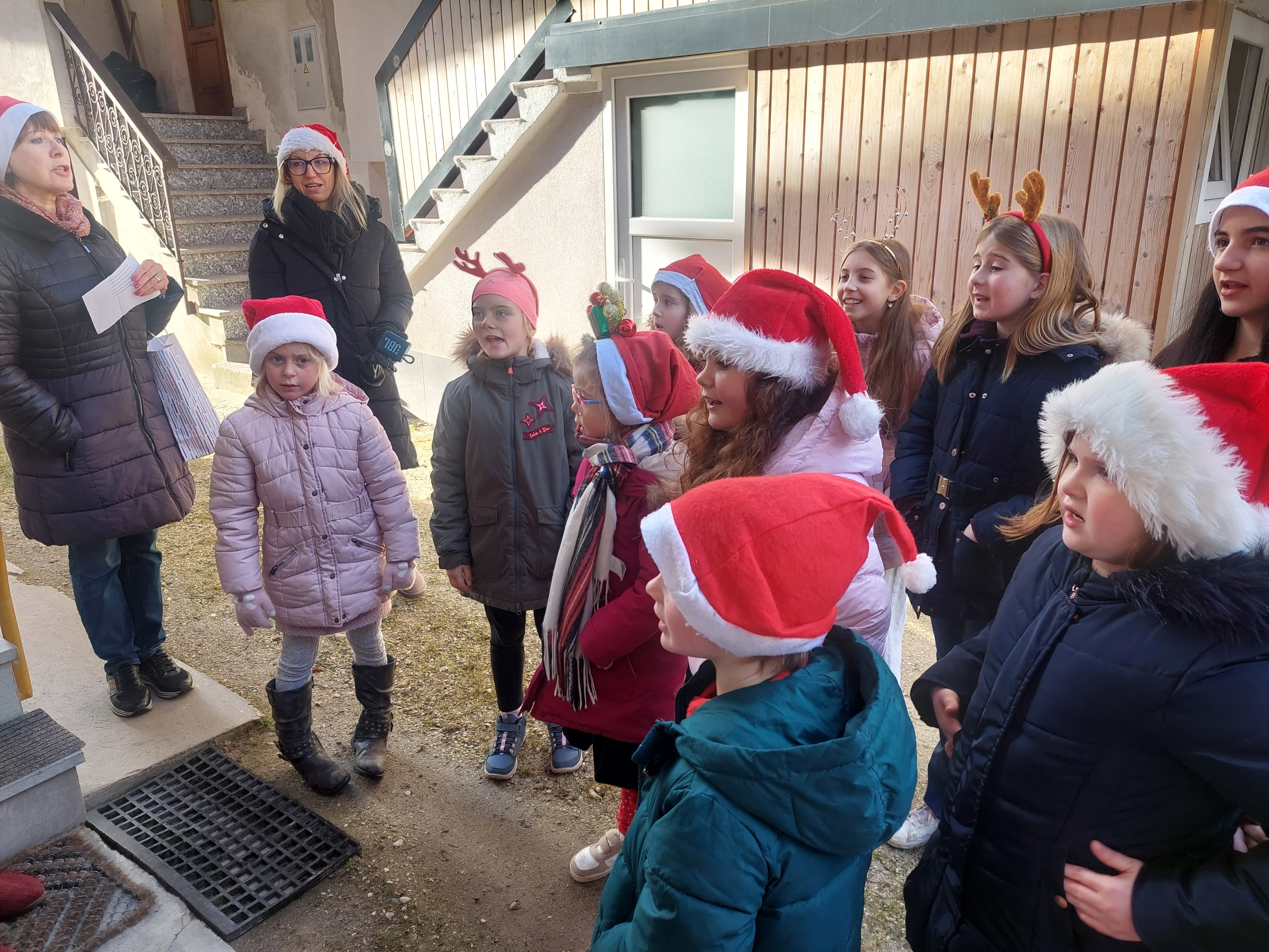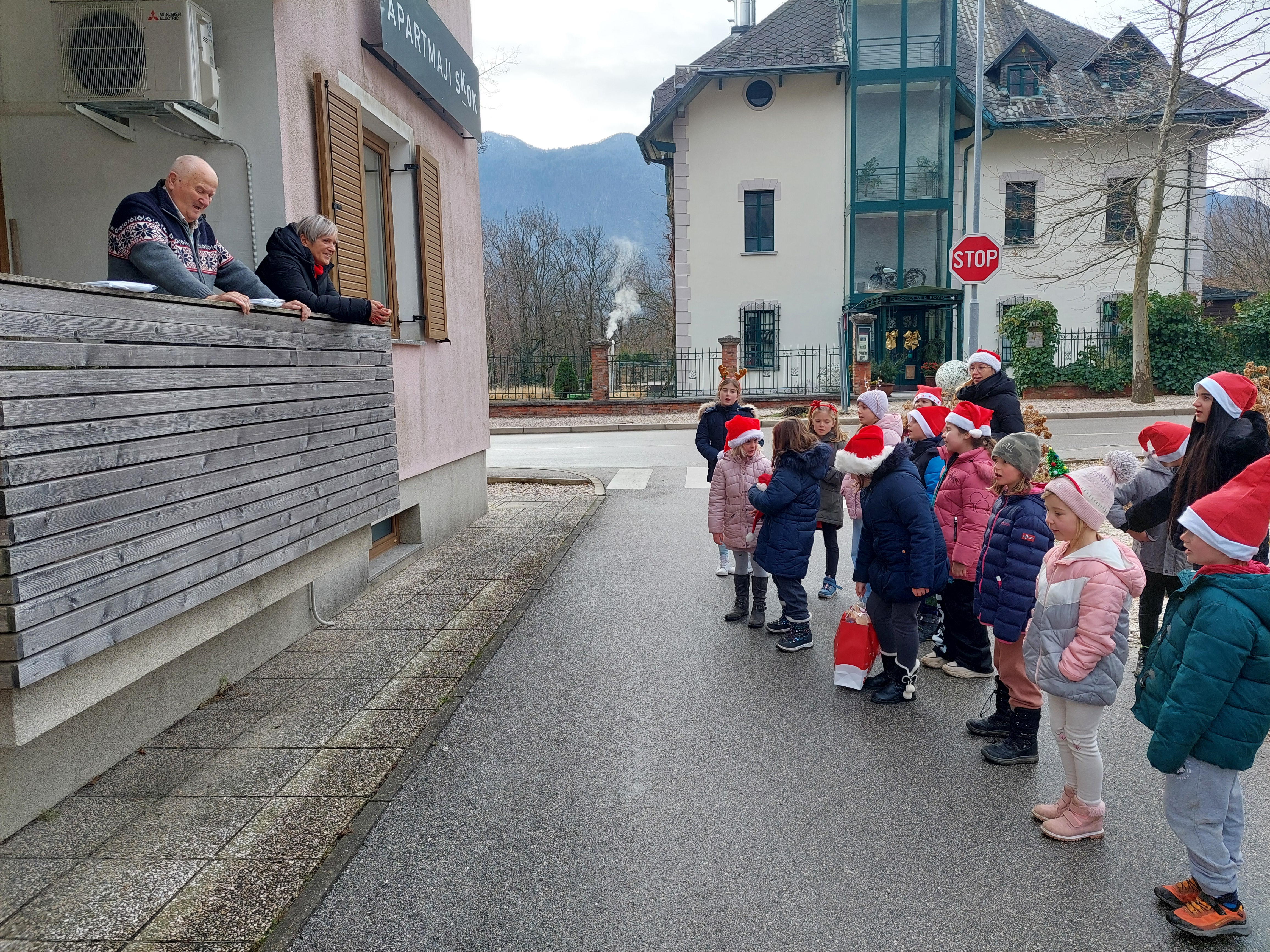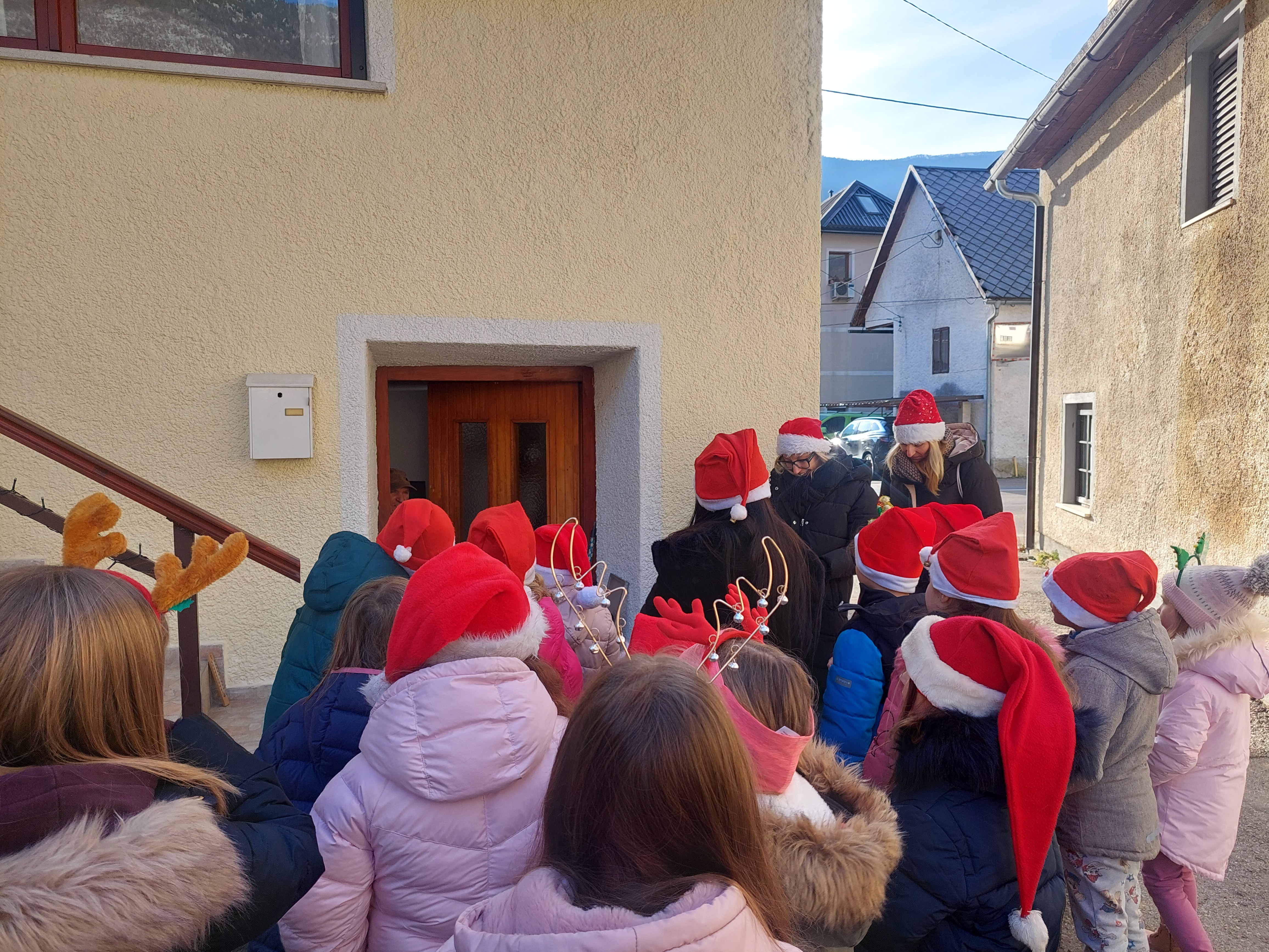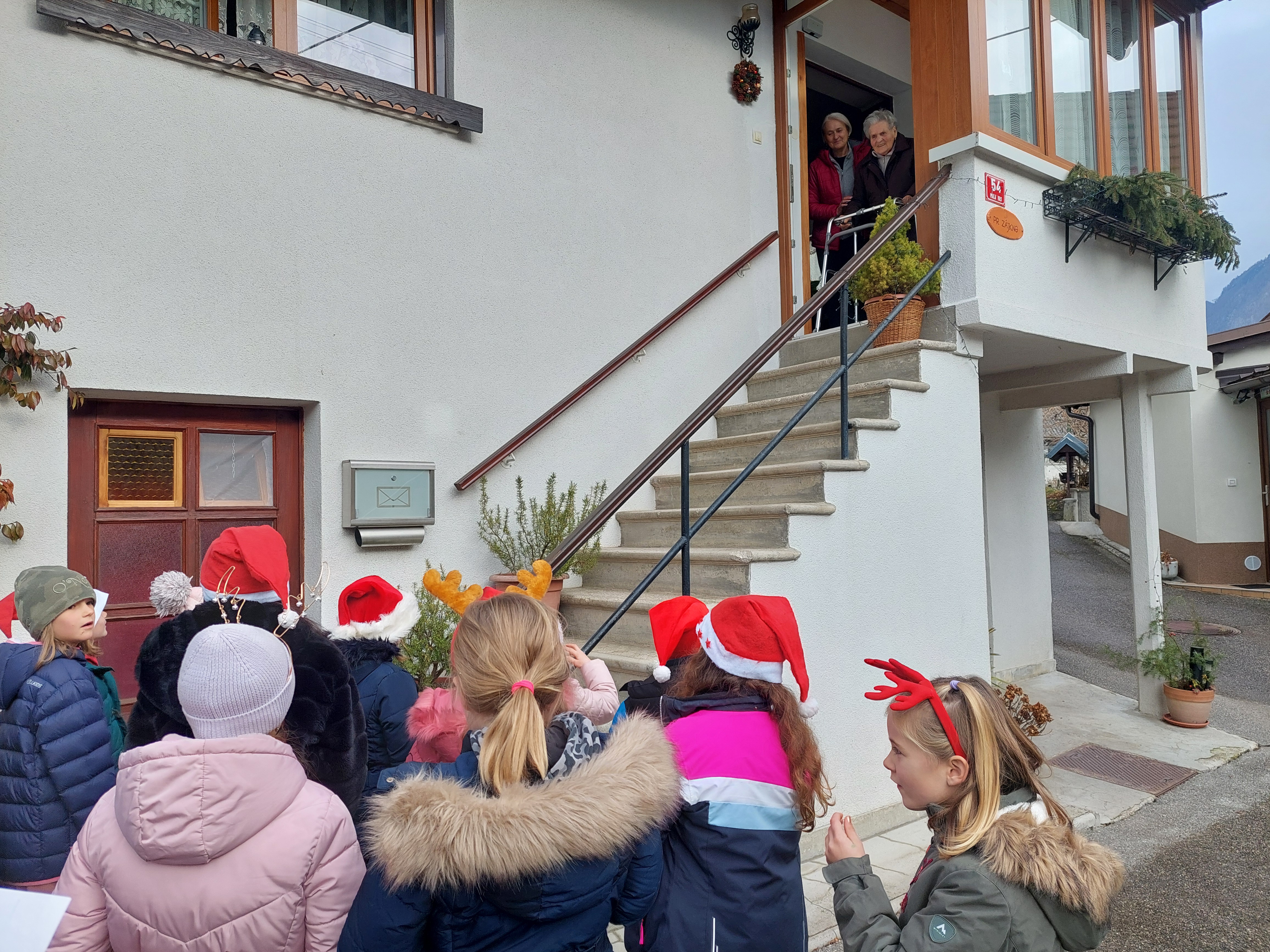 Tudi letos smo z otroškim pevskim zborom pod mentorstvom učiteljic Daše Mlakar Komac in Andreje Šulin obiskali starostike starejše od 90 let. Veseli smo, da smo na njihove obraze pričarali nasmeh. Zaželeli smo jim mirne praznike in zdravo ter srečno novo leto 2026. S pesmijo smo dan polepšali tudi županu in zaposlenim na Občini Bovec. Iskreno se zahvaljujemo ga. Nadi Mrakič, ki nam vsako leto pomaga organizirati obiske pri naših starostnikih.