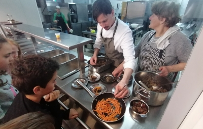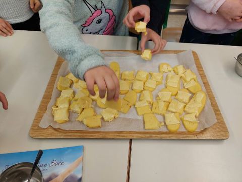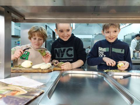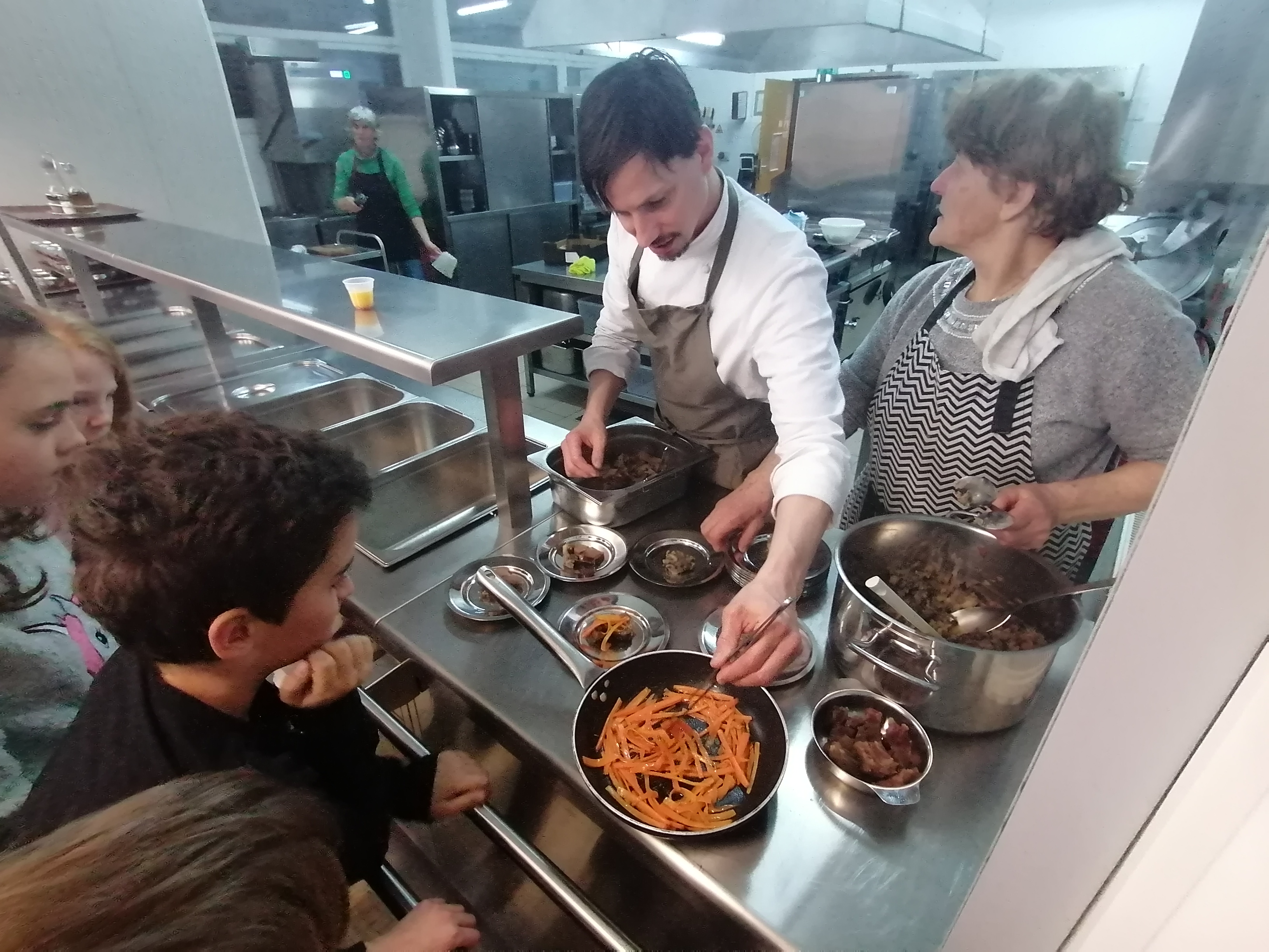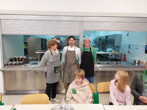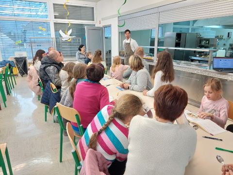 V torek, 28. 2. 2023, smo se učitelji, učenci 4. razreda in njihovi starši udeležili kuharske delavnice v organizaciji LAS projekta "Iz drobnice". Udeleženci smo imeli priložnost okusiti jedi iz lokalnih sestavin, ki so jih za nas pripravili uspešen kuharski mojster Tomaž Sovdat, Antonija Ivančič in Peter Domevšček.