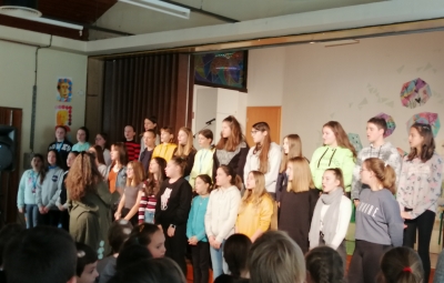V petek, 7.2.2020, smo počastili slovenski kulturni praznik s proslavo. Spomnili smo se našega velikega pesnika Franceta Prešerna. Letos obeležujemo 50-letnico smrti pisatelja Franceta Bevka, ki je veliko knjižnih del namenil mladim. Zato smo proslavo namenili njemu. Program so oblikovali učenci od 6. do 9. razreda, otroški pevski zbor in učenci prvega razreda.