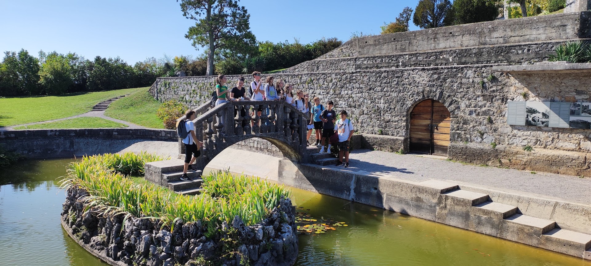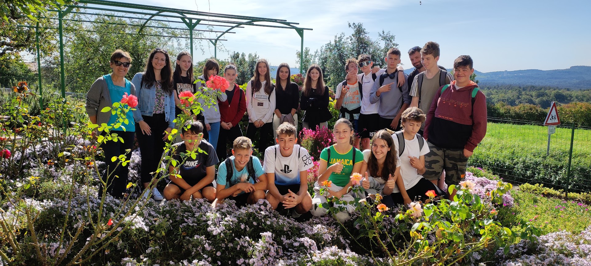 V petek, 6. 10. 2023, smo se z učenci 9. razreda v lepem sončnem vremenu odpravili na literarno-geografsko ekskurzijo na Kras. Obiskali smo domačijo pesnika Srečka Kosovela, kjer smo izvedeli, kako bogato kulturno dediščino, kljub kratkemu in težkemu življenju, nam je zapustil pesnik Krasa. Pot smo nadaljevali v lepo kraško vasico Koprivo, rojstni kraj Branke Jurca. Po naključju smo naleteli na pisateljičino nečakinjo, ki nas je peljala do rojstne hiše in nam povedala nekaj zanimivosti, ki jih je doživela v družbi svoje tete. Sledil je geografsko-zgodovinski del z ogledom Štanjela. Zelo nas je očaral Ferrarijev vrt in tipična kraška hiša.