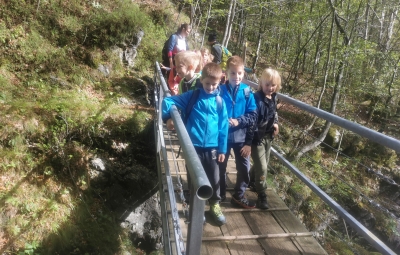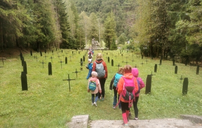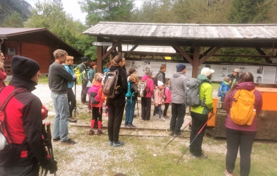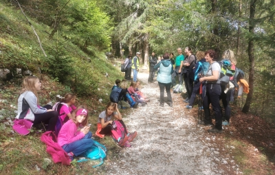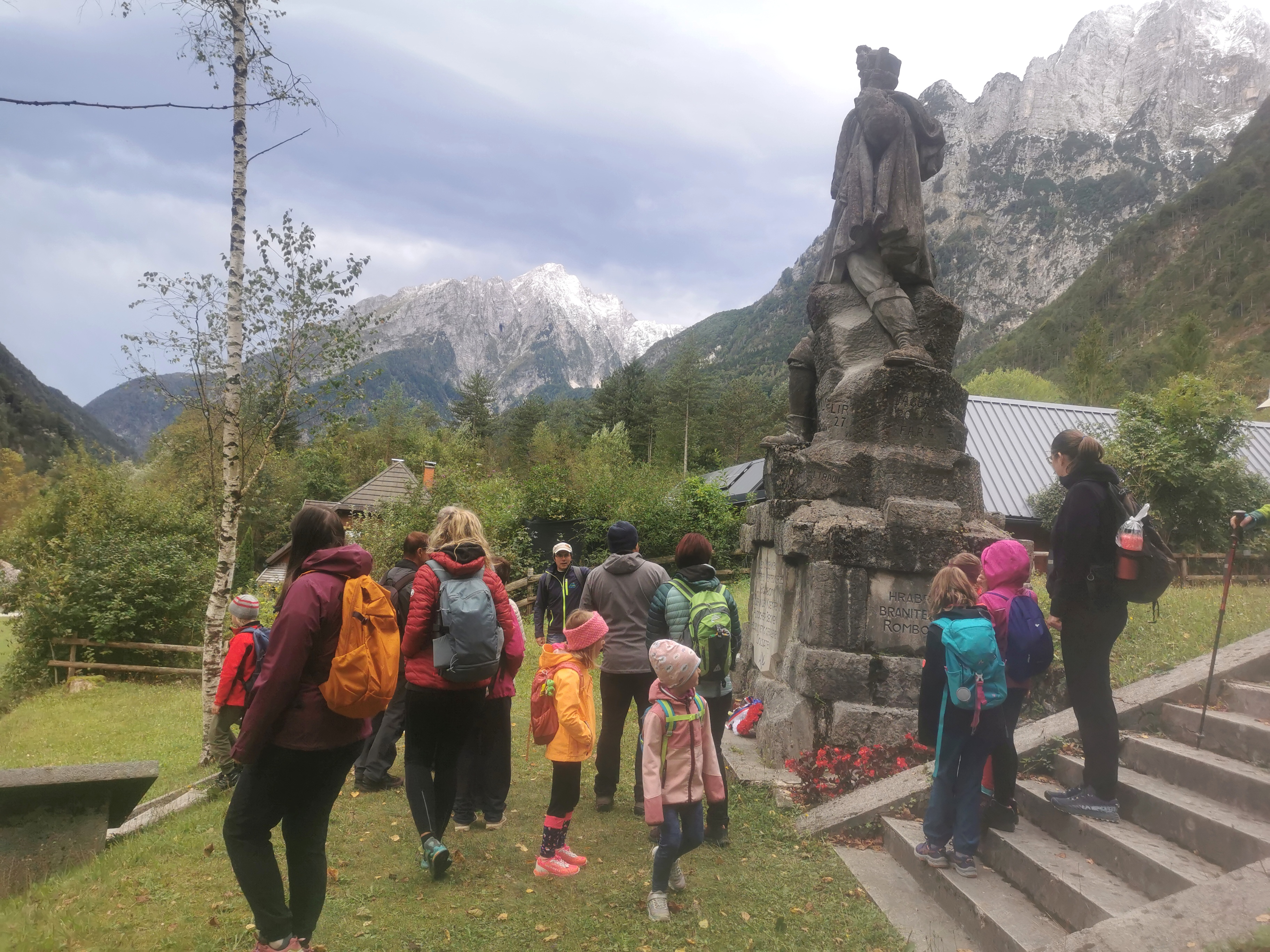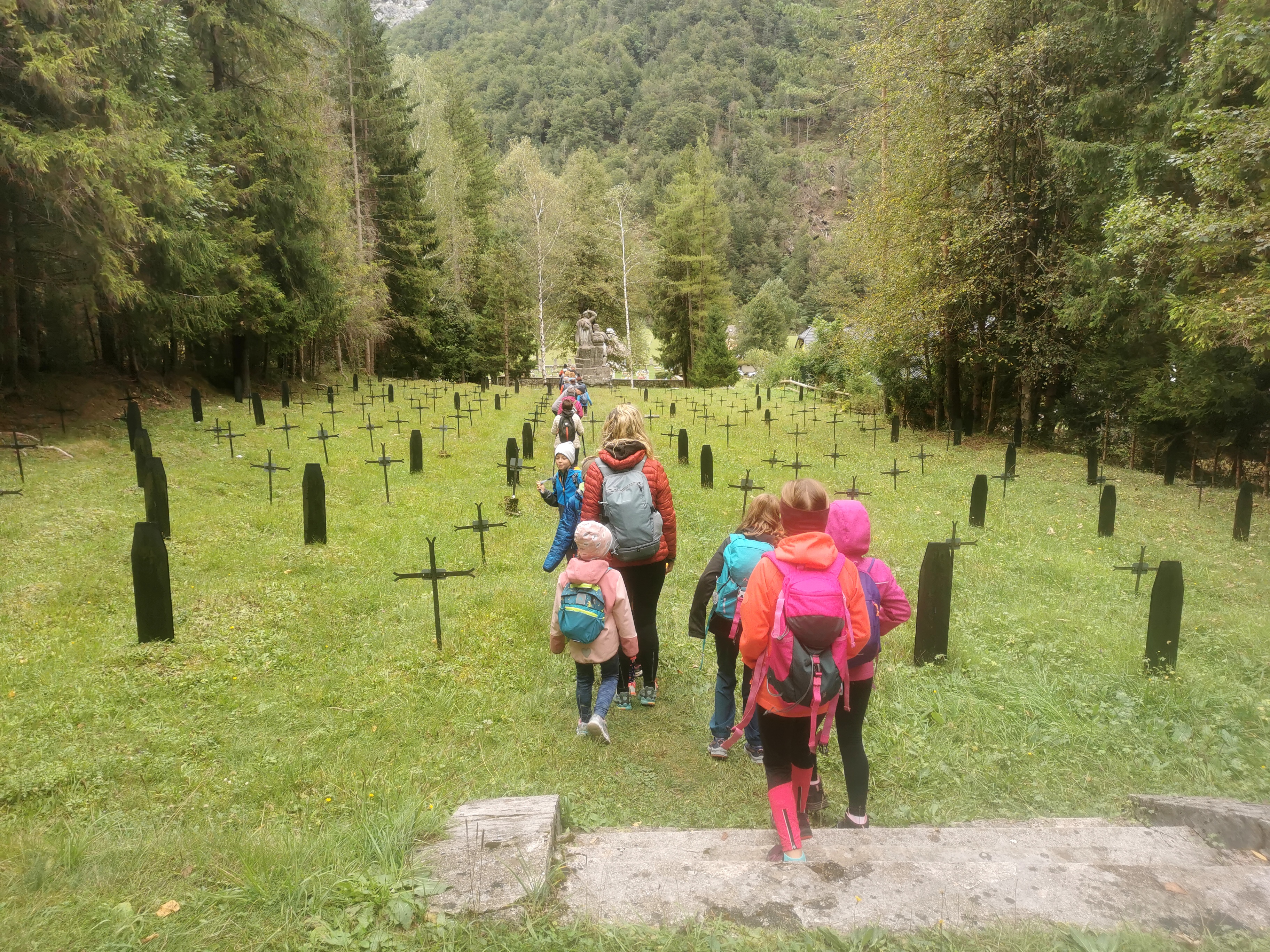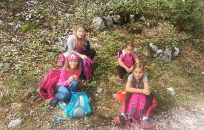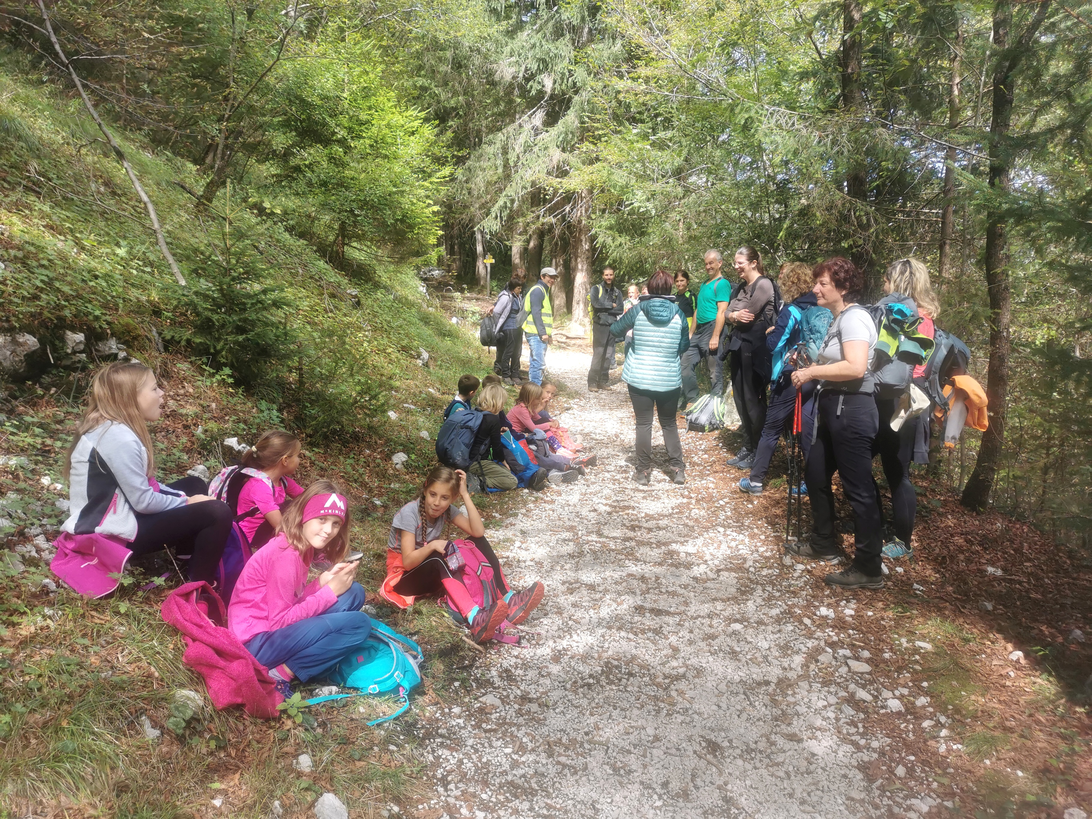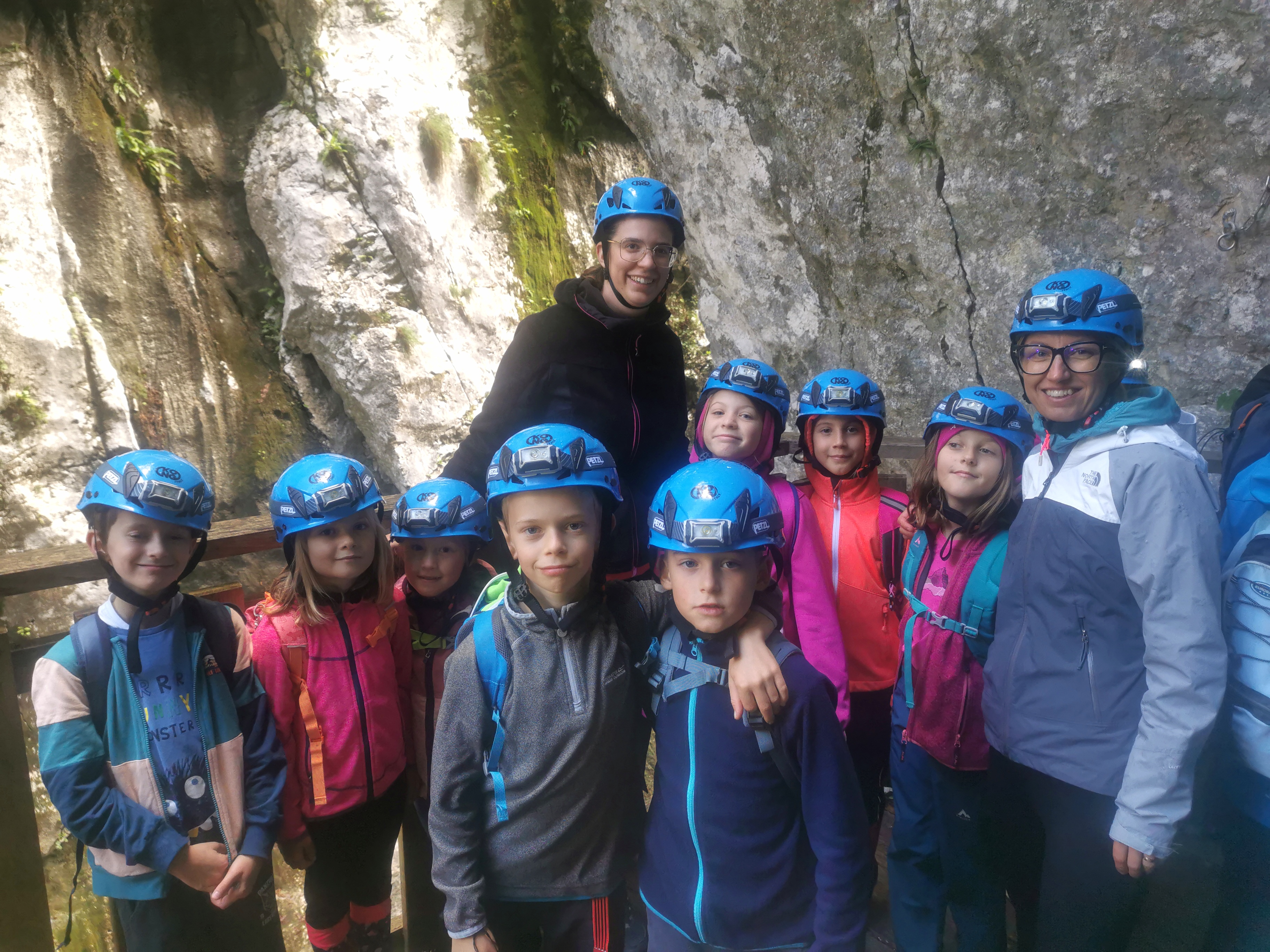 V nedeljo, 15. 9. 2024 smo se mlajši planinci, od prvega do četrtega razreda odpravili na prvi pohod, pohod po delu 14. etape Juliana Trail- od Loga pod Mangartom do trdnjave Kluže. Pot smo začeli pri Štolnu, kjer je vhod v predor, ki je vodil v rudnik na italijanski strani. Tam nas je pozdravil vodič Peter Mlekuž, ki nam je za uvod predstavil nekaj zanimivih informacij o rudniku. Sprehodili smo se do Avstro-ogrskega pokopališča, enega najbolje ohranjenih pokopališč iz prve svetovne vojne v Sloveniji. Ob poti smo si ogledali apnenico in nadaljevali po spodnjem delu doline Možnice do Trdnjave Kluže. Najbolj od vsega pa smo nestrpno pričakovali, da iz nahrbtnikov vzamemo naglavne svetilke in se odpravimo v bližnji rov pod trdnjavo, ki je dolg 400m. Pohodna pot skozi rov nas je pripeljala do razgledne ploščadi, kjer smo opazovali korita reke Koritnice.