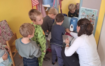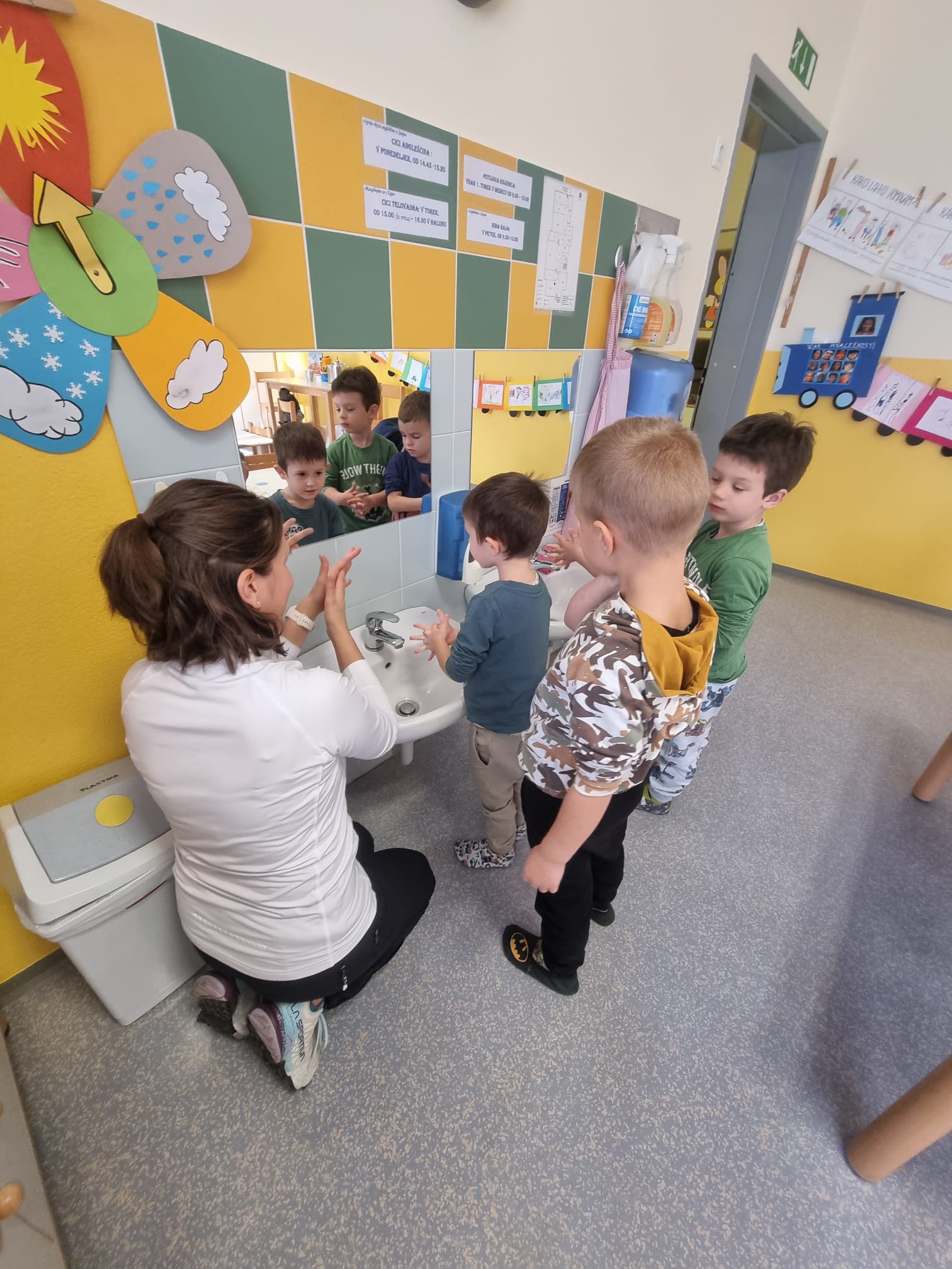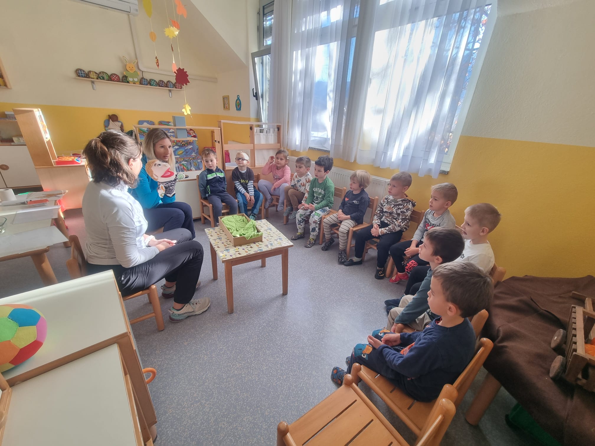 Povedali smo, kaj mora narediti, da se bo pozdravil ter ga skupaj dali spat. Veliko smo slišali o preventivi za zdravje, predvsem o higieni rok: predstavili ter približali sta nam bacile, bakterije, oziroma škratke, nas poučili o dobrih in slabih škratkih ter prikazali poizkus, kako se škratki bojijo mila.
