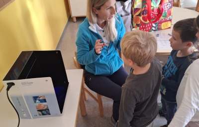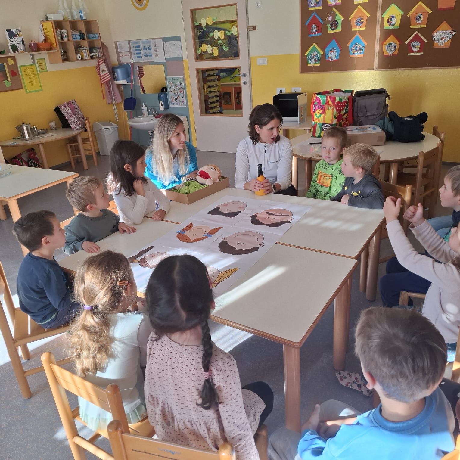 V vrtcu sta nas v skupinah "Zajčki" in "Ptički" obiskali medicinski sestri Špela Čujec in Tina Fon, skupaj z maskoto Maticem, ki je prišel ves prehlajen in bolan.