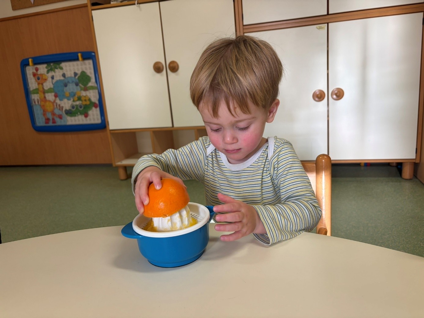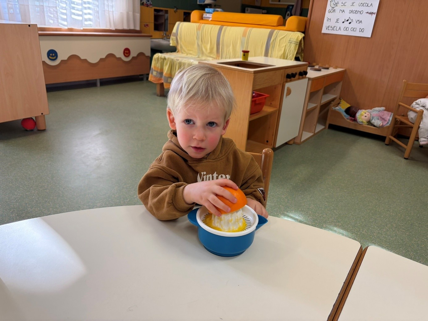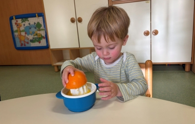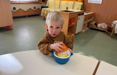 V skupini “Medvedki” spodbujamo zdrav življenjski slog tudi s pripravo pomarančnega sok. Otroci so z veseljem pomagali pri pripravi ter oželi pomaranče. Na koncu smo vse skupaj nalili v skodelice in otroci so z velikim veseljem popili pripravljen pomarančni sok.