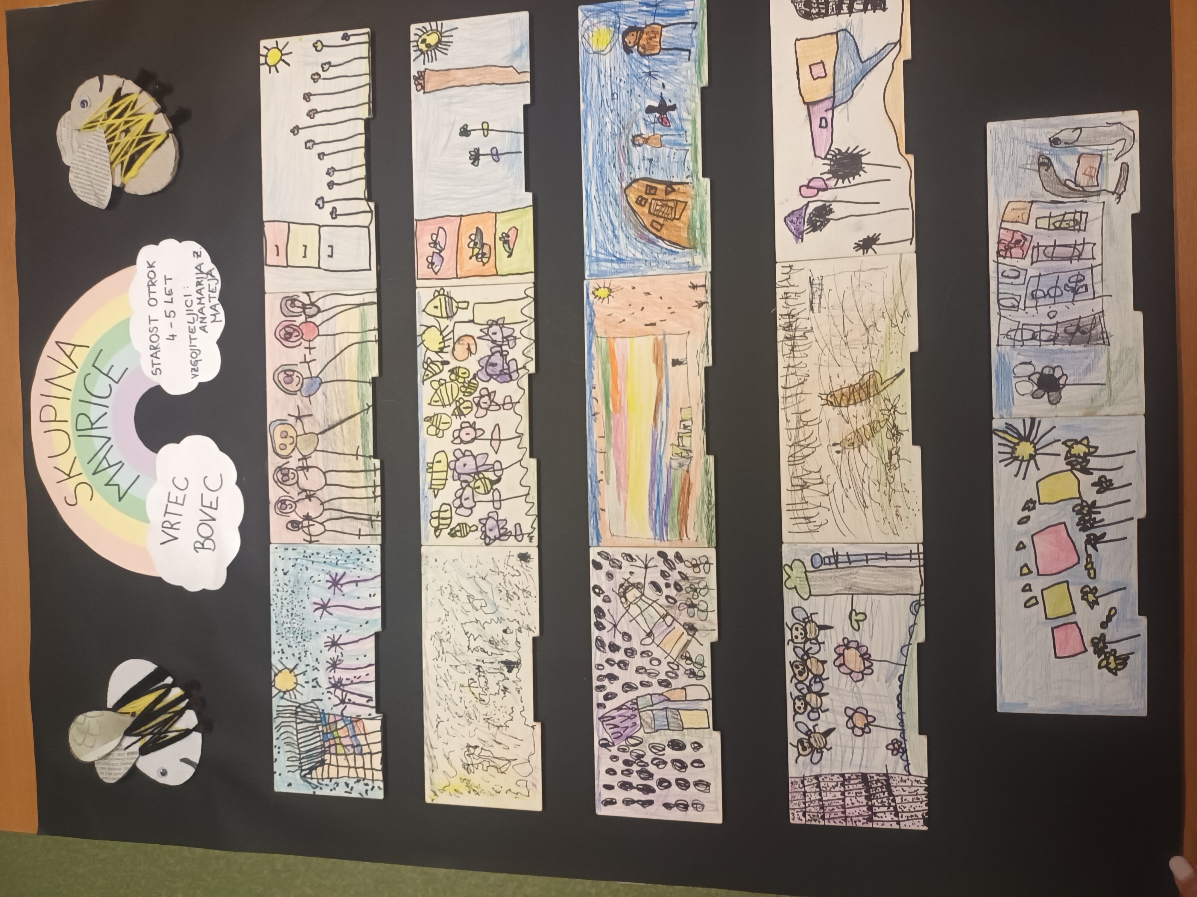 V petek, 17. 5. 2024, je skupino Mavrice obiskal gospod Rene Čopi, ki izdeluje panjske končnice. Otroci so s svojo otroško domišljijo porisali tudi čisto svoje panjske končnice.