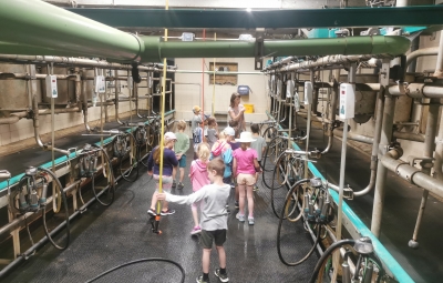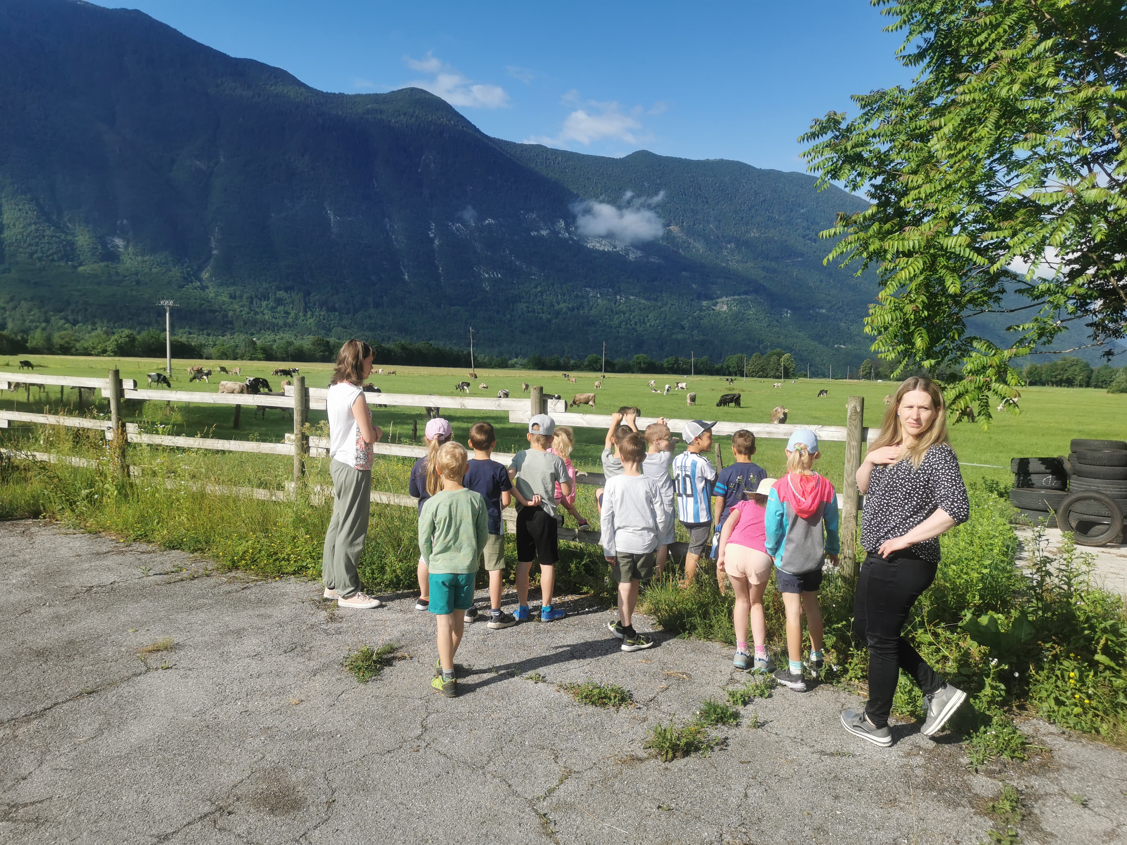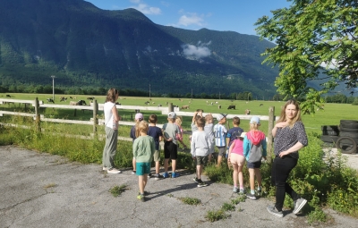V torek, 13. 6. 2023, je prvi razred obiskal ekološko kmetijo Bogata. Popeljali so nas skozi hlev, pokazali molzne stroje, obiskali smo teličke in krave na pašniku ter si ogledali vso mehanizacijo, ki jo kmetija premore. Izvedeli smo koliko mleka pridelajo na dan, katere izdeleke pridelujejo v obratu Mlekarne Planika Kobarid in imeli možnost okušat različne jogurte. V muzeju smo si ogledali kratek filmček o predelavi mleka v Posočju, otroci pa so se preizkusili tudi v molži ''umetne'' krave.