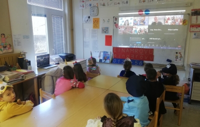 V torek, 13. 2. 2024, je pri Naši mali knjižnici potekalo srečanje preko spleta z belgijskim avtorjem, ki je napisal knjigo Moja babi. Jan de Kinder se nam je približal s sproščenim pogovorom in odgovori na naša vprašanja. Prvošolce in drugošolce naše šole pa je še posebej navdušilo njegovo risanje in ustvarjanje pravih malih umetnij z ogljem.