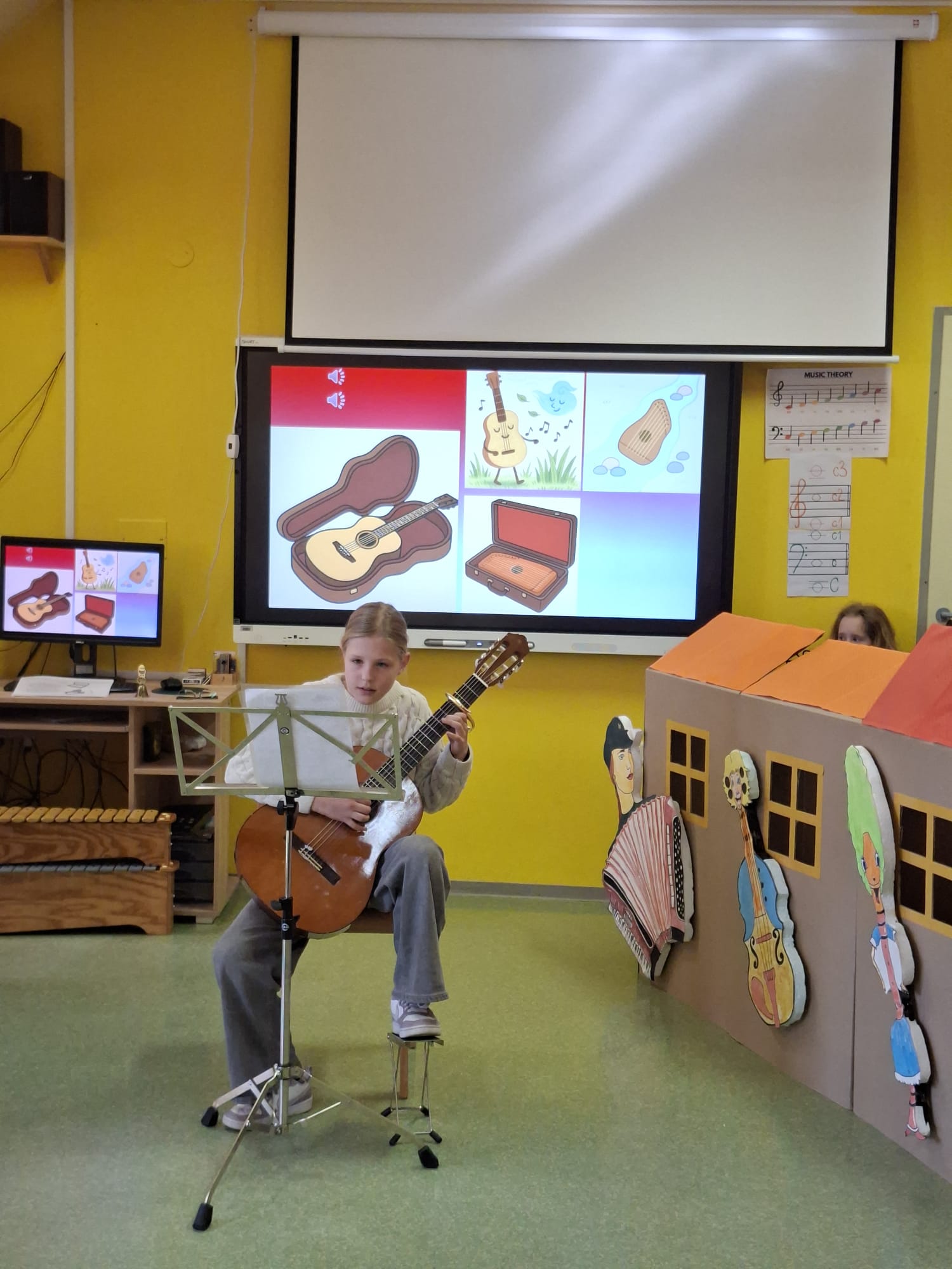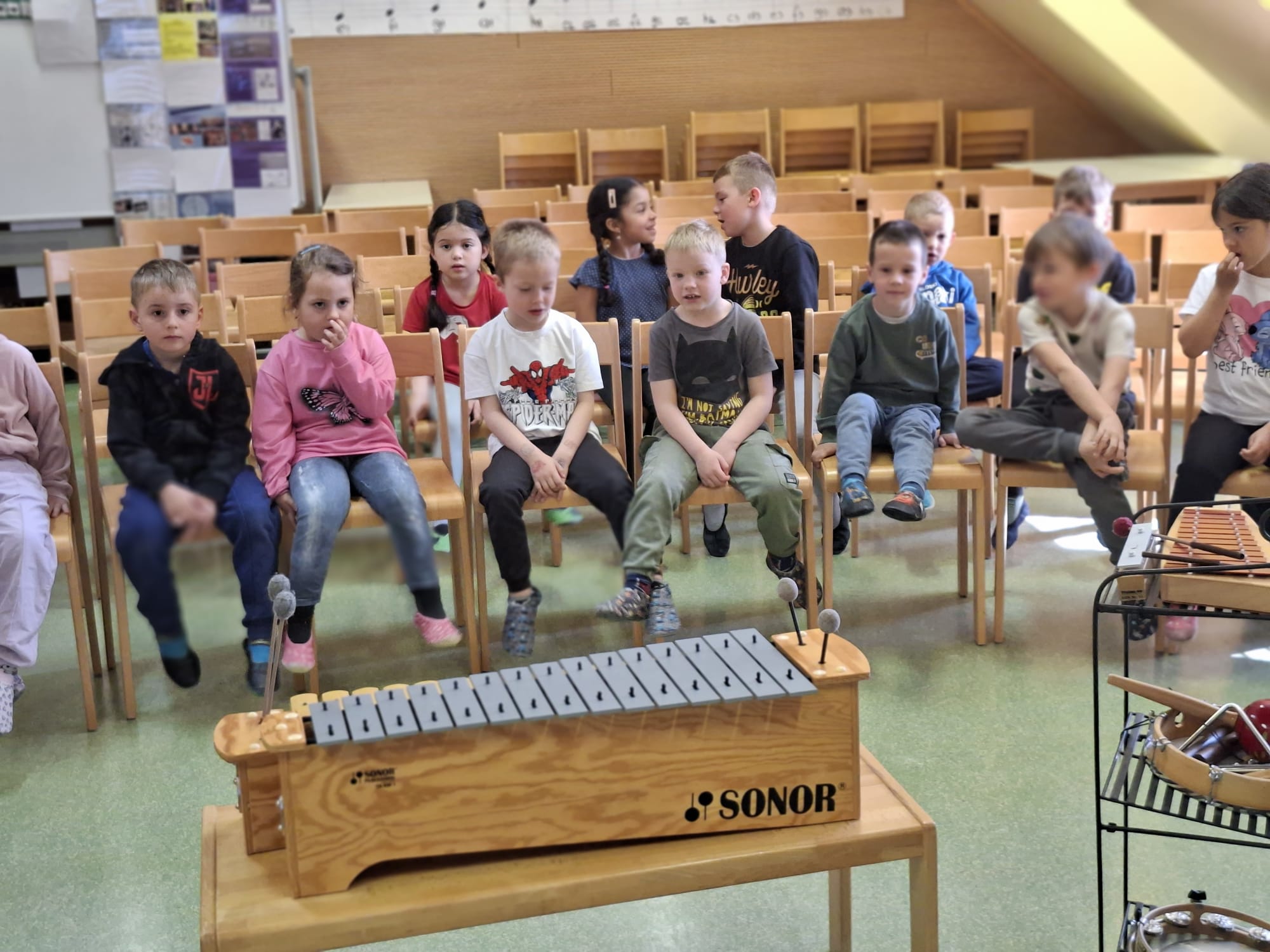 Imeli smo se zelo lepo, najlepša hvala učiteljici Katji in vsem učencem, ki so si vzeli čas za nas in nam veliko pokazali in katerega tudi navdušili za kasnejšo vključitev v glasbeno šolo.