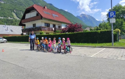 Predšolski otroci pa so imeli še čisto posebno nalogo - opraviti so morali kolesarski preizkus na poligonu, ki ga je policist pripravil samo za njih.