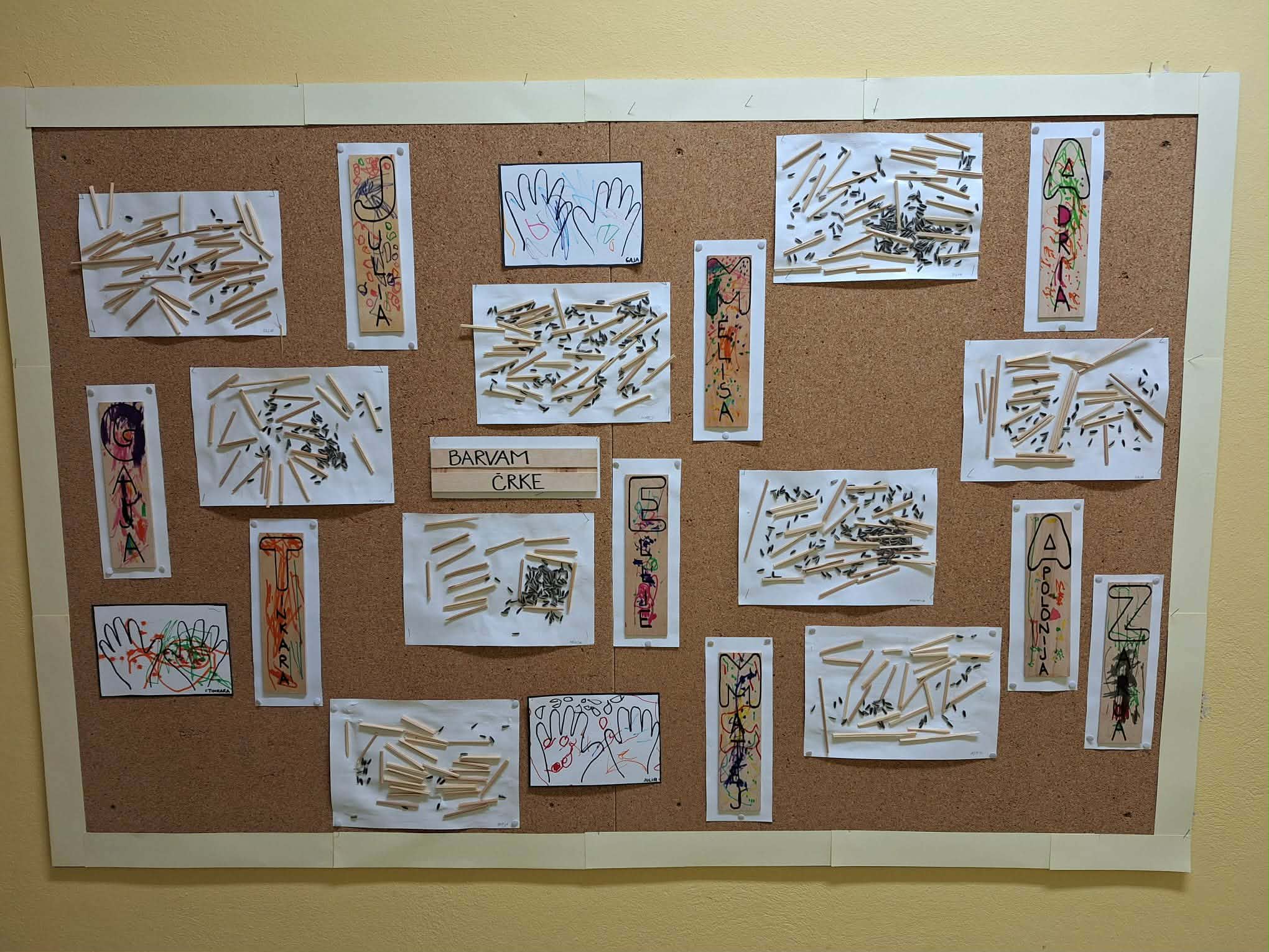 Mesec januar je tudi mesec pisanja z roko, kar smo "Čebelice" izkoristile za to, da smo prepoznavali črke svojega imena. Urili smo fino motorične spretnosti s tem, ko smo svoja imena olepšali s kreacijami in uporabo barvnih pisal. Ugotovili smo, da ima vsak izmed nas svoje ime, ena se malo težje izgovarjajo saj so dolga in težka, druga lažje saj so enostavnejša in krajša. Ampak najbolj pomembno je to, da se skupaj imamo lepo in da vemo, kdo vse v čebeljem panju skupaj biva.