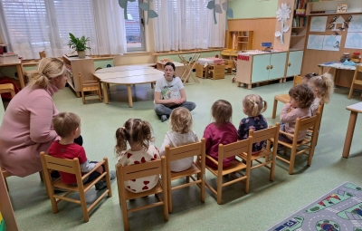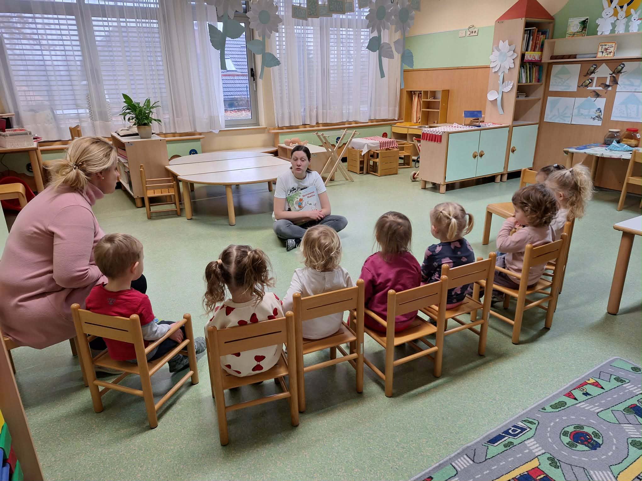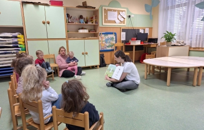 Otrokom je predstavila in prebrala pravljico z naslovom Skrivnostna škatlica. Z zanimivim in toplim pripovedovanjem je otroke odpeljala v svet domišljije, kjer so z veseljem prisluhnili zgodbi in sodelovali pri pogovoru. Otroke je pravljica zelo navdušila.