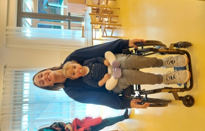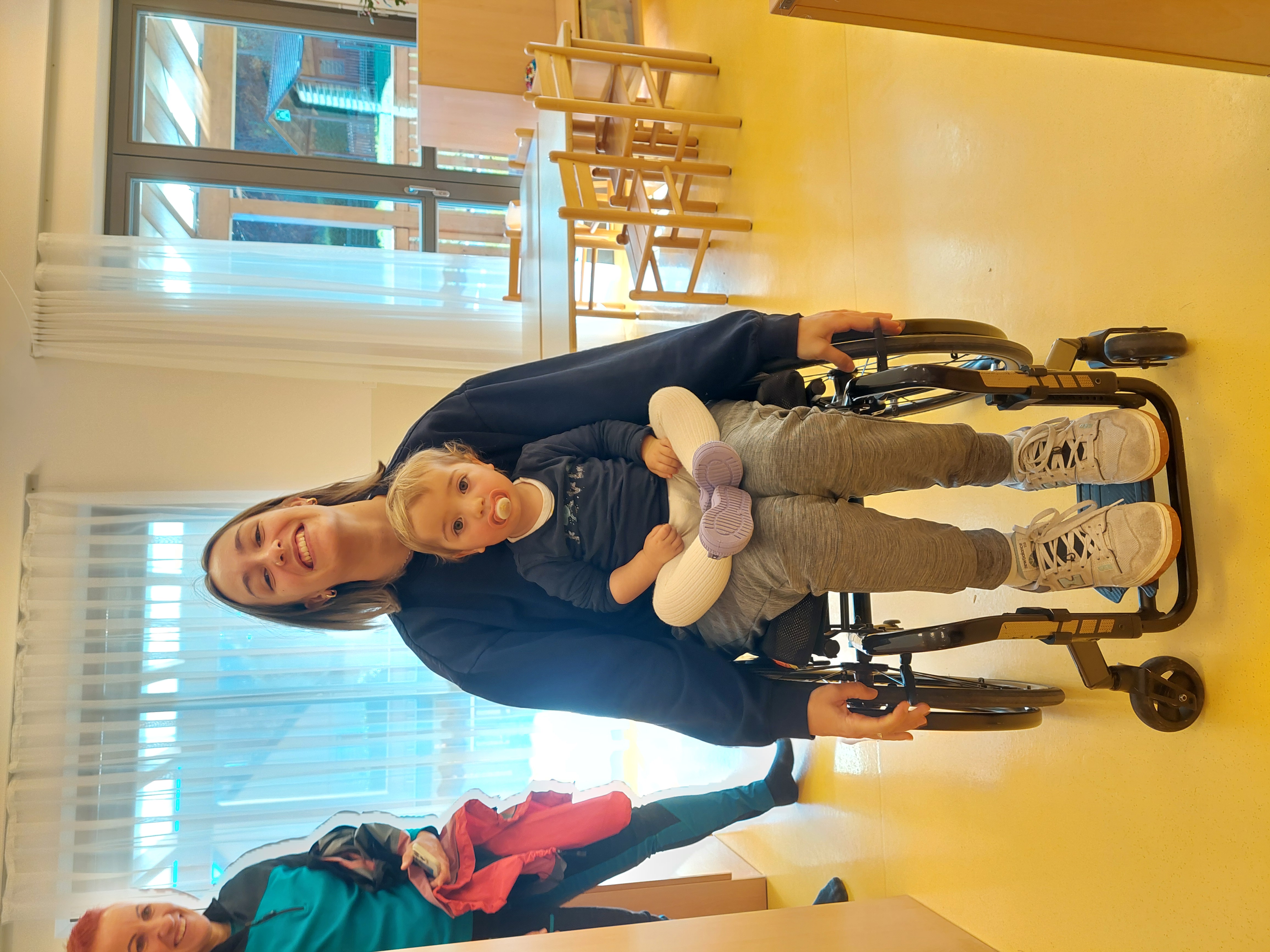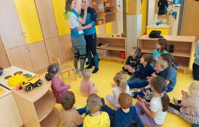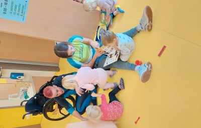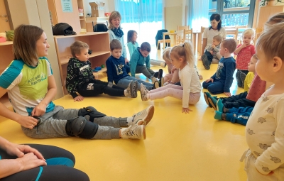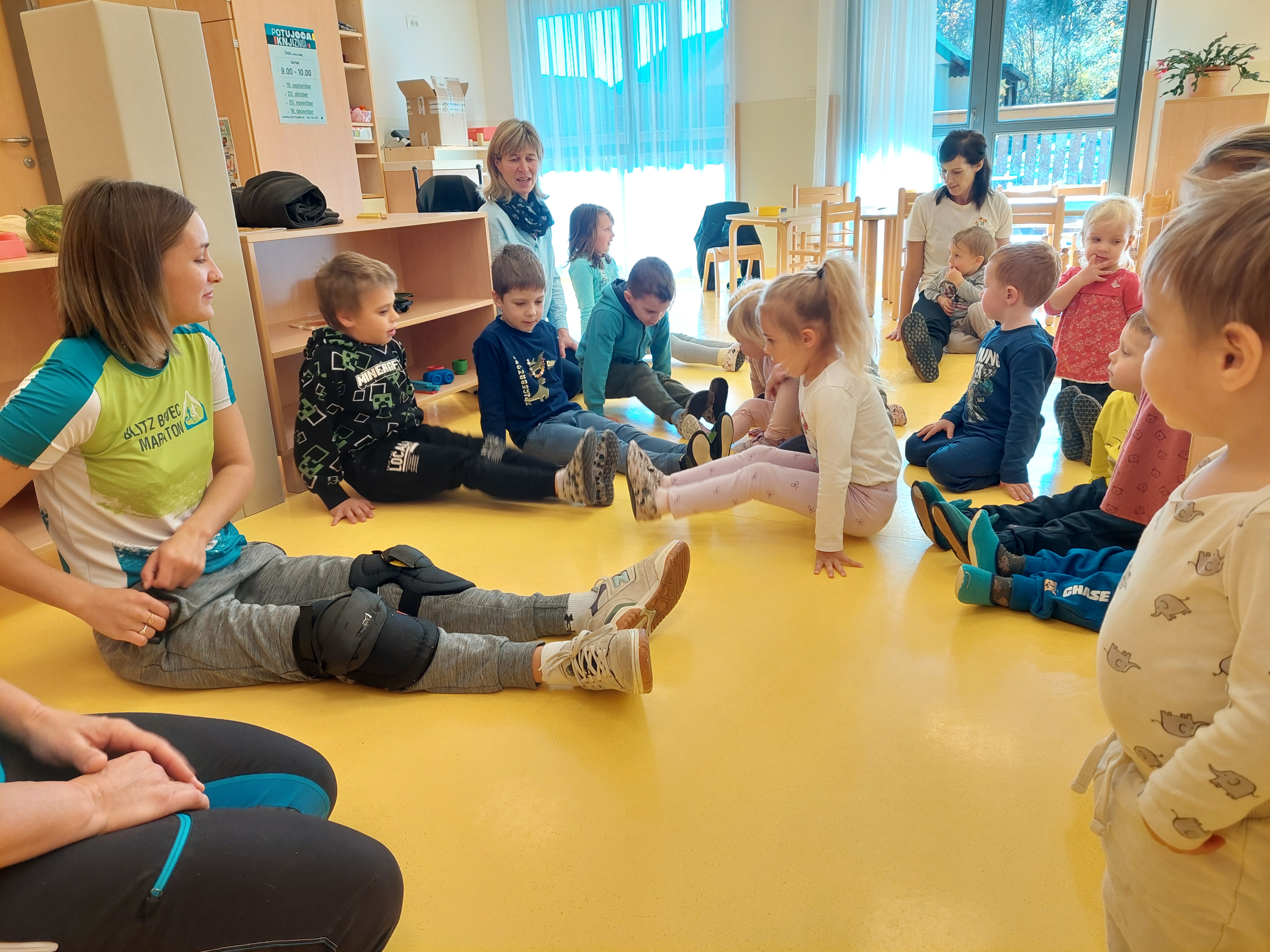 Danes smo v vrtcu gostili našo sovaščanko Tio Žagar, ki je prišla v družbi svoje mame Tine Fratine Žagar, njene največje opore, motivatorke in, kot v šali pravi Tia, kar lastne fizioterapevtke.