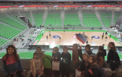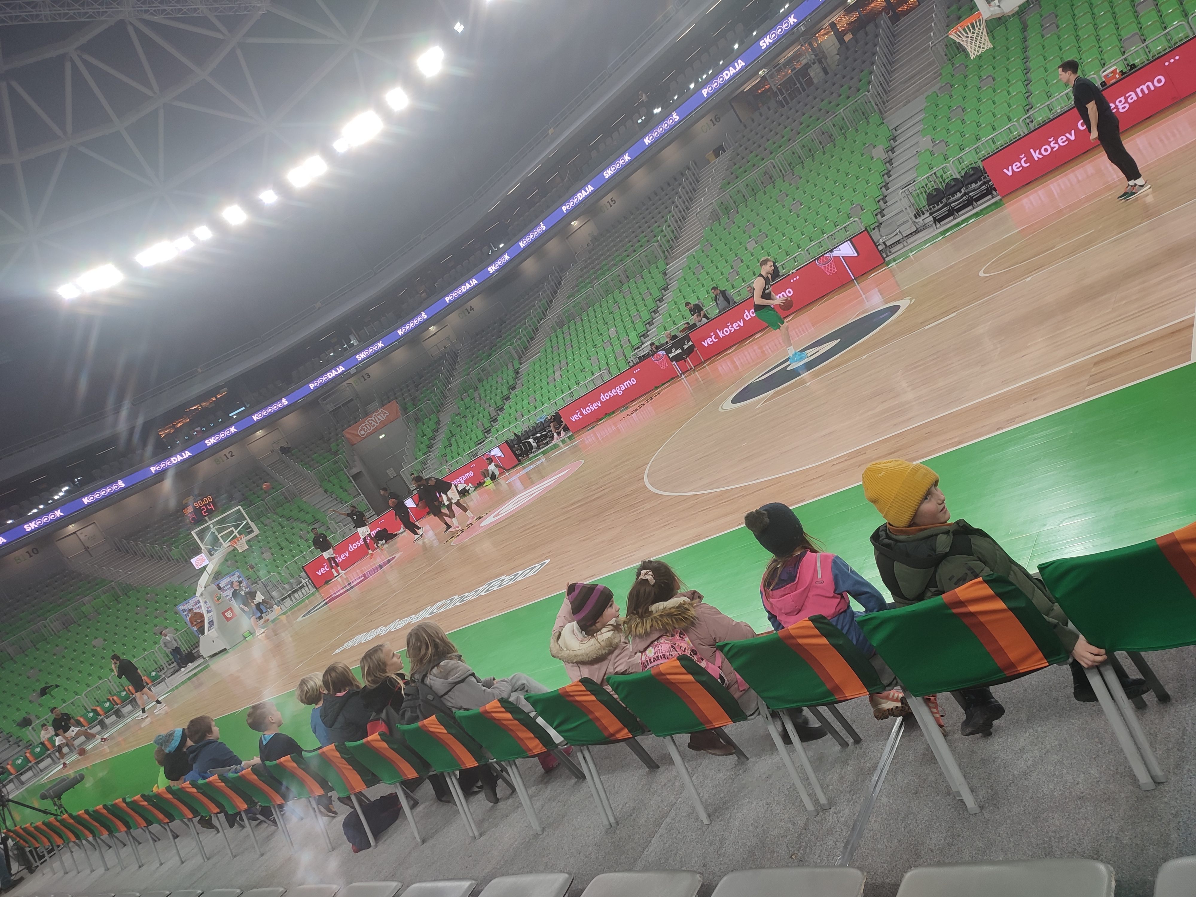 V sredo, 31. 1. 2024, smo bili povabljeni v Športni center Stožice, kjer smo si ogledali košarkarsko tekmo CEDEVITA OLIMPIJA : LONDON LIONS. Pred tekmo nas je pri vhodu pričkal gospod Tomaž Krajnčič, ki nam je razkazal zakulisje, dvorano, opazovali smo vaje plesne skupine, ogrevanje košarkašev. V garderobi naših košarkašev smo srečali kapetana Cedevite Olimpija, Jaka Blažiča. Zaželeli smo jim zmago, nato pa šli v sobo za novinarje, kjer športniki dajejo izjave. Ogledali smo si tudi VIP ložo, nato pa odšli na sedišča v dvorani.