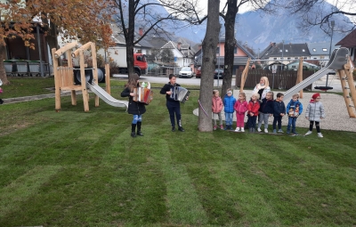 Bovški otroci so se razveselili novega otroškega igrišča v centru mesta. G. županu Valterju Mlekužu so igrišče pomagali otvoriti otroci iz vrtca, skupina Škratki, ki so tudi prisrčno zapeli in zaplesali pod mentorstvom vzgojiteljic Sandre Kverh, Tine Gašperčič in Ane Mlekuž. Otvoritev sta s poskočnim glasom harmonike popestrila učenca 8. razreda Lara Škander in Kristjan Arcet. Novo igrišče bo zagotovo privabilo mnogo igrivih otrok.