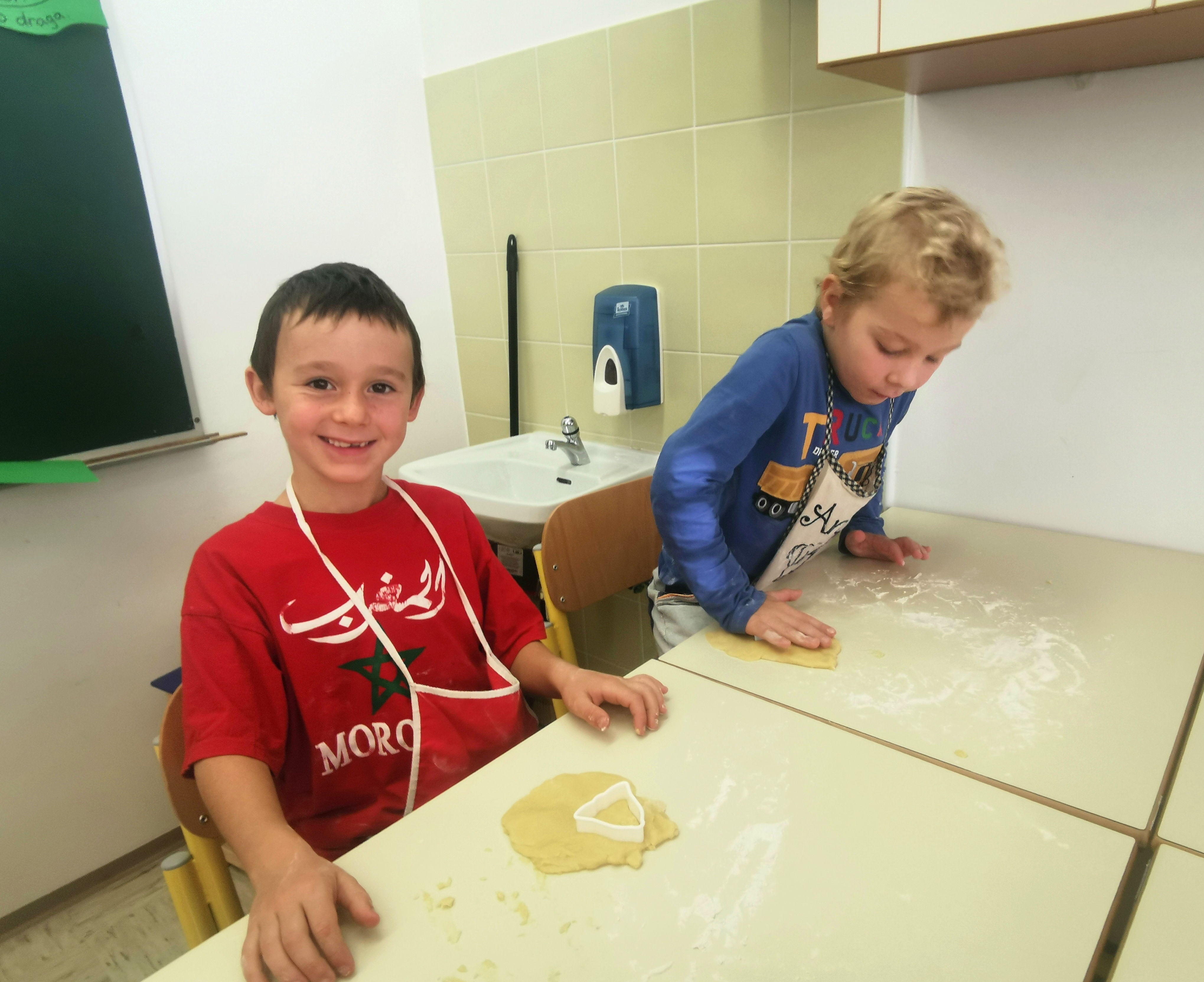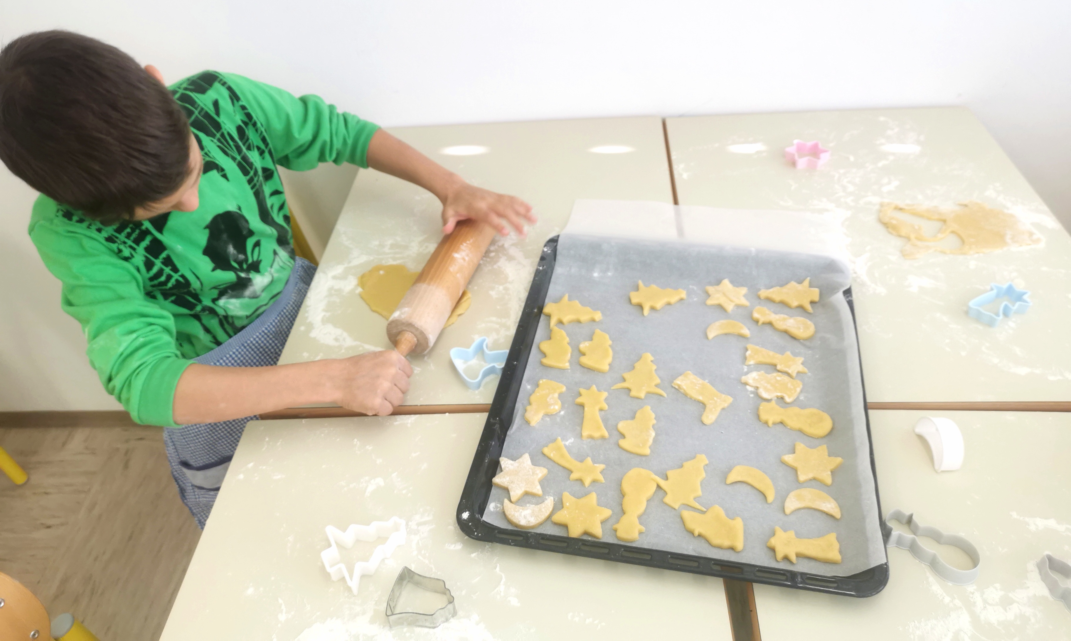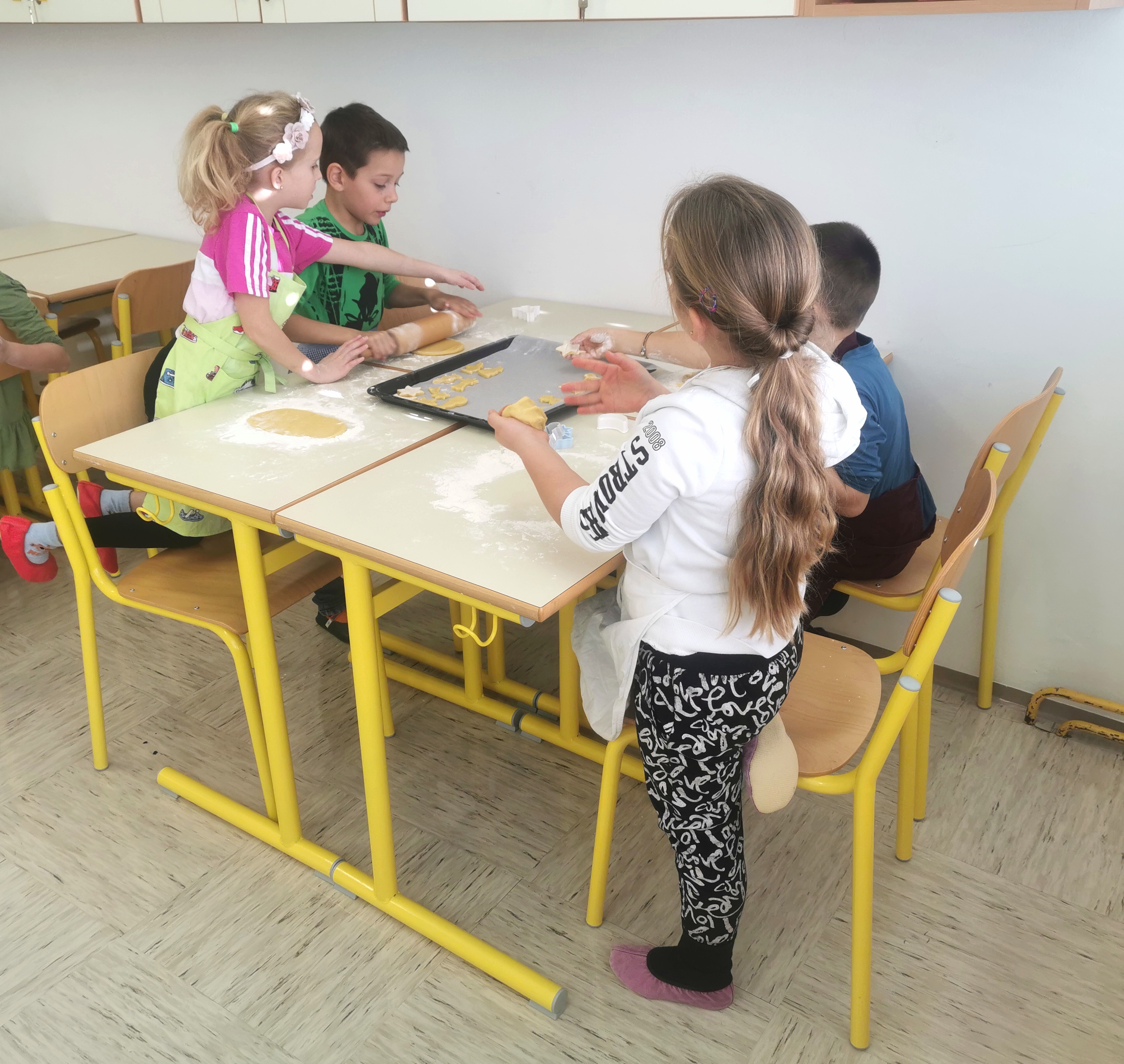 V drugem razredu je včeraj, 6. 12. 2023, na Miklavžev dan, prijetno dišalo. V praznični december smo vstopili s peko božičnih piškotov. Nadeli smo si predpasnike in zakorakali v gospodinjsko učilnico. Tehtali smo, mešali sestavine, gnetli in s pomočjo modelčkov oblikovali različne piškote. Prijetno je zadišalo po vsej šoli. Seveda je bilo na koncu potrebno poskusiti, kaj smo spekli. Zadovoljni peki smo na koncu pomili še posodo in uredili gospodinjsko učilnico.