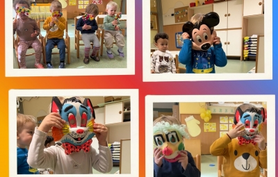 Ta mesec nam je prinesel tudi veselo pustno rajanje. Spoznali smo različne otroške pustne maske, jih pomerili in se ob tem nasmejali do ušes.