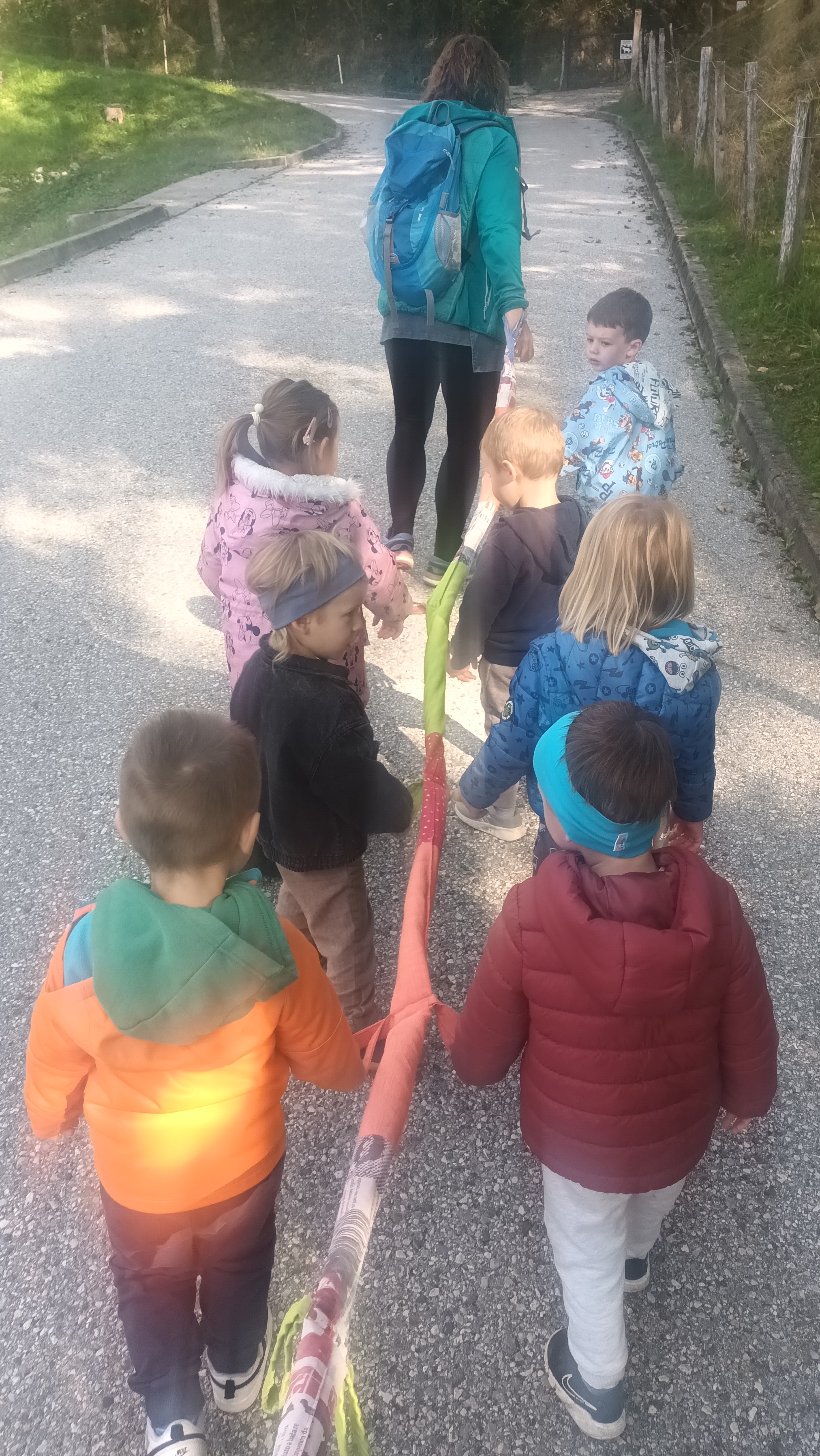 Danes je skupina Polžki izkoristila sončen dopoldan in se odpravila na pohod za Mali sonček. Obiskali so Cudrovo kmetijo, kjer jih je prijazno sprejela ga. Tina in jim pokazala koze. Predvsem sta jih navdušila najmlajša kozlička, ki sta jih veselo pozdravila, Polžki pa so ju pobožali.