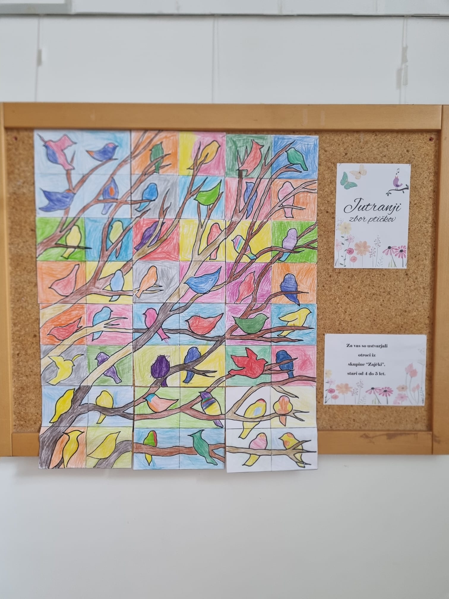 Naše pomladne ptičke iz »jutranjega zbora« smo razstavili tudi v avli mestne knjižnice, zdaj pa svoje izdelke razstavljajo otroci iz skupine »Medvedki«.