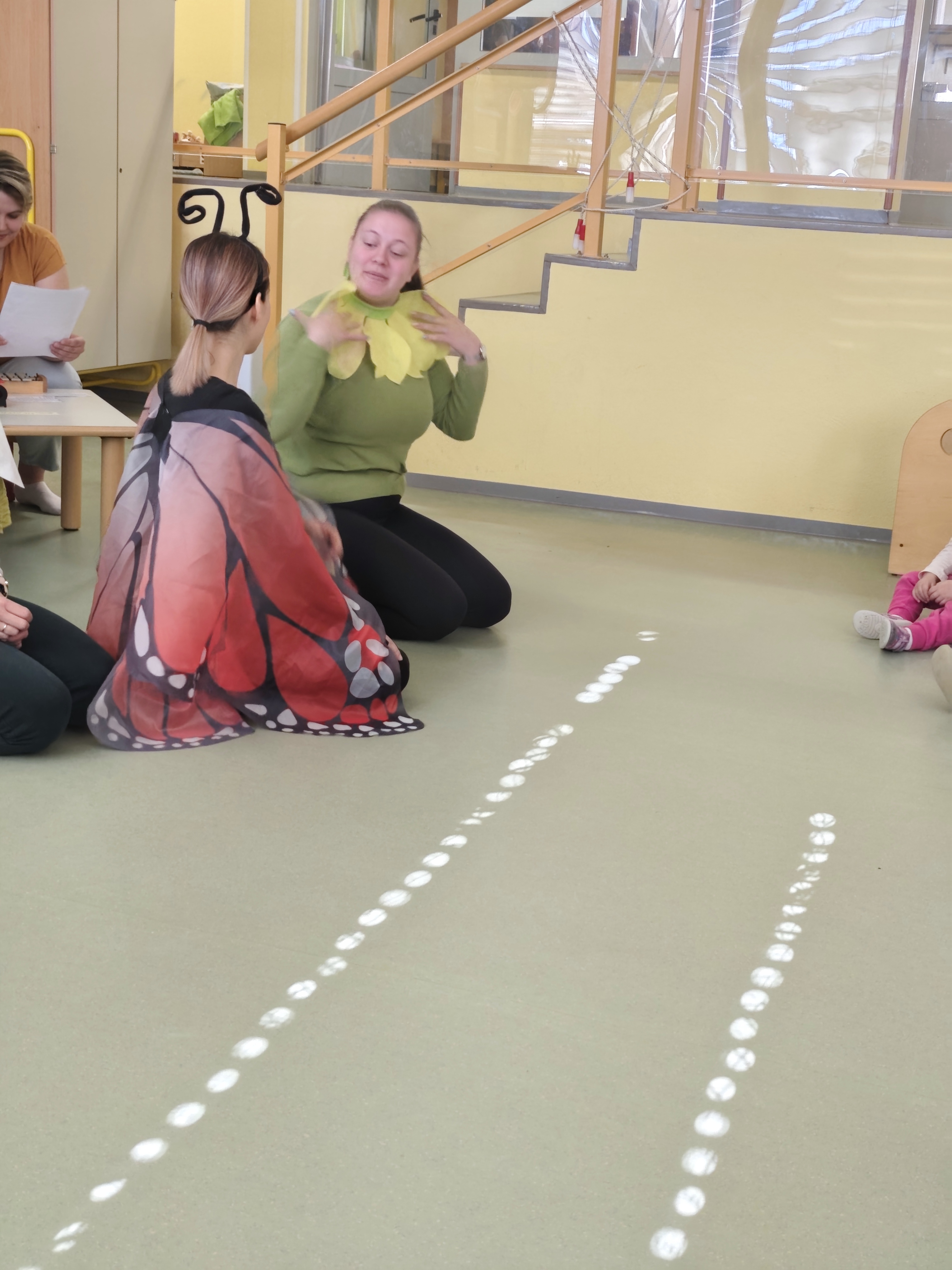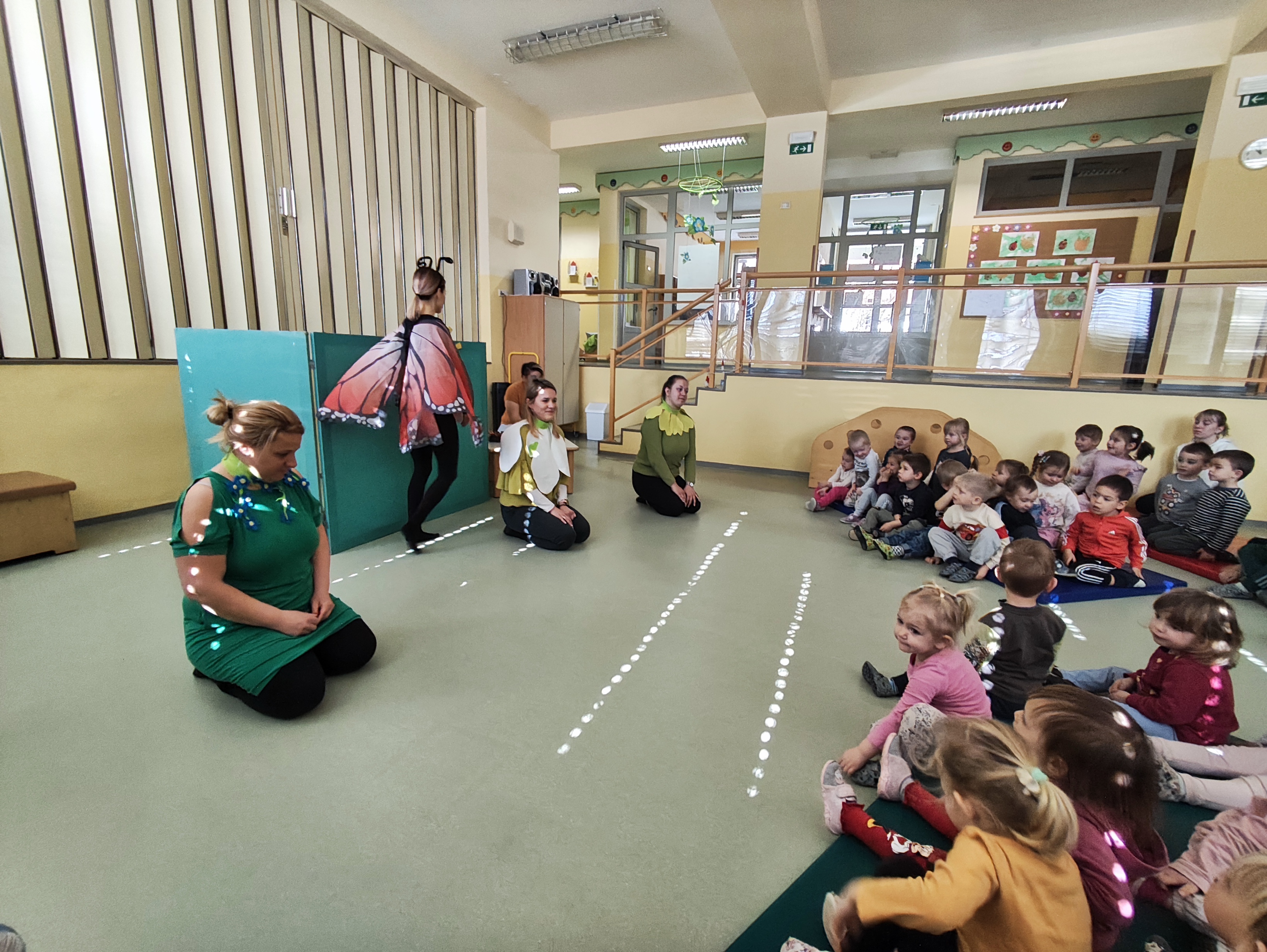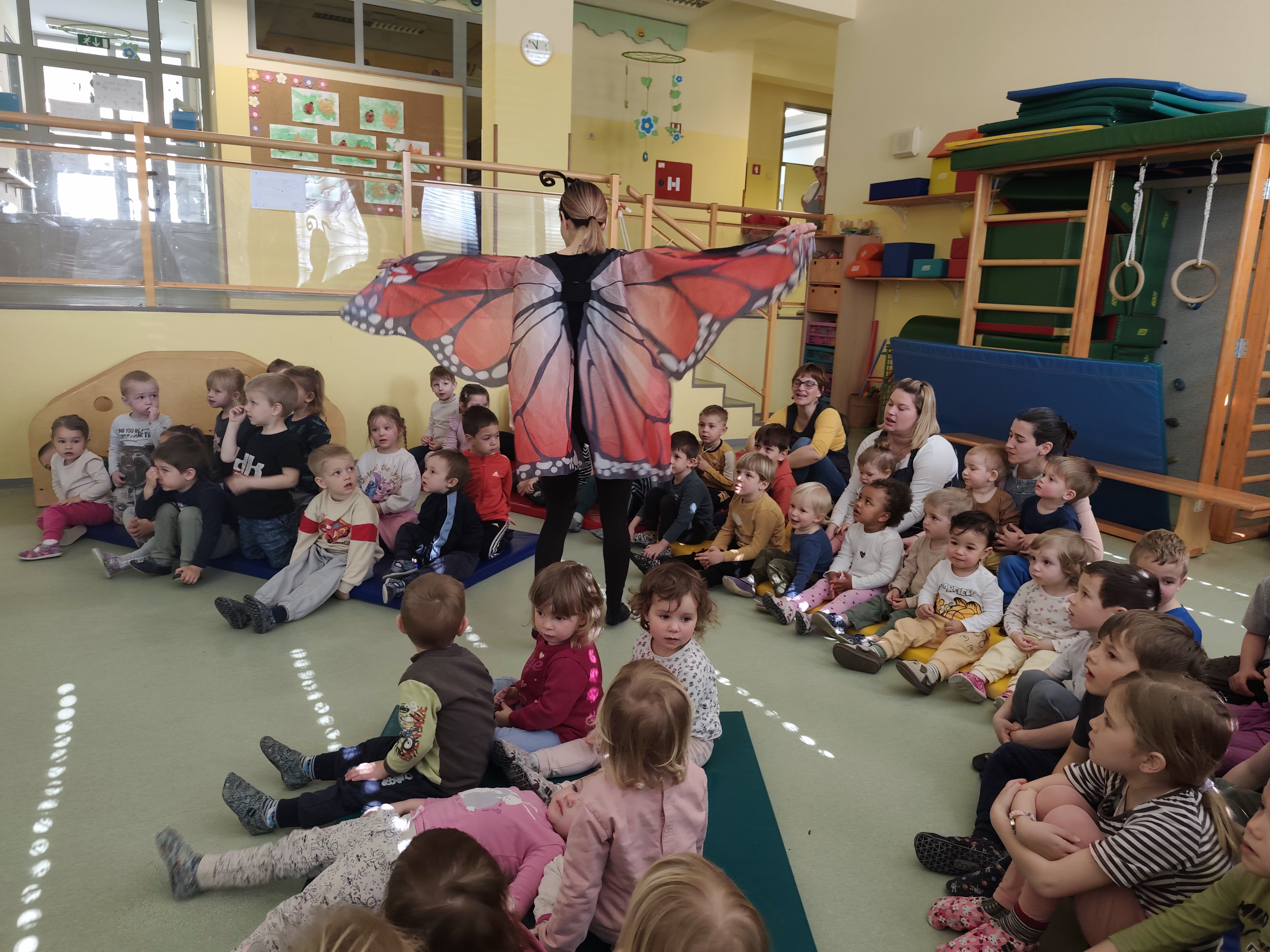 Na prvi pomladni dan je v vrtcu zavladalo prav posebno vzdušje, saj so vzgojiteljice za otroke pripravile spomladansko obarvano gledališko predstavo z naslovom Metuljček išče pomlad. Ko so se otroci vrtca zbrali, so v prijetno okrašenem prostoru, vzgojiteljice stopile v vloge pravljičnih likov ter otroke popeljale v zgodbo o zaspanem travniku, ki ga je po dolgi zimi prebudil nežni metulj. S svojim lahkotnim plesom je najprej zbudil zvonček, ki je sramežljivo pokukal iz zemlje, nato še trobentico, ki je pogumno razprla svoje rumene cvetove, in nazadnje še nežno spominčico, ki je travnik obarvala v modro. Otroci so z navdušenjem spremljali dogajanje, prisluhnili zgodbi o metulju, ter vsaki odpeti pesmi. Vsem otrokom je metulj še dodatno pričaral nasmeh na obraz, ko je poletel med njih in jih pobožal z nežnimi krili. Ob koncu smo še skupaj zapeli in tako obeležili prvi pomladni dan, v duhu ustvarjalnosti, igre in povezanosti z naravo.