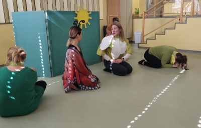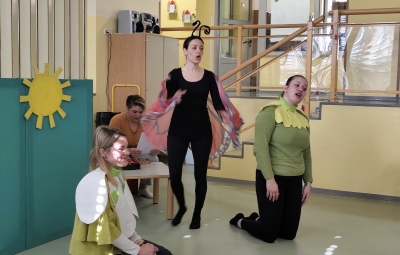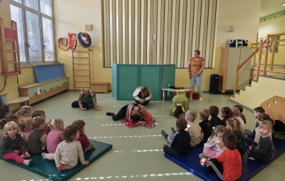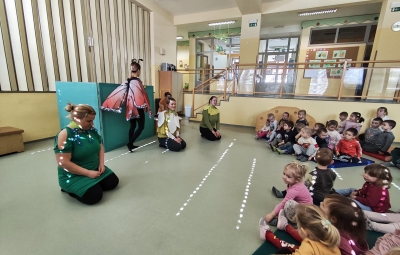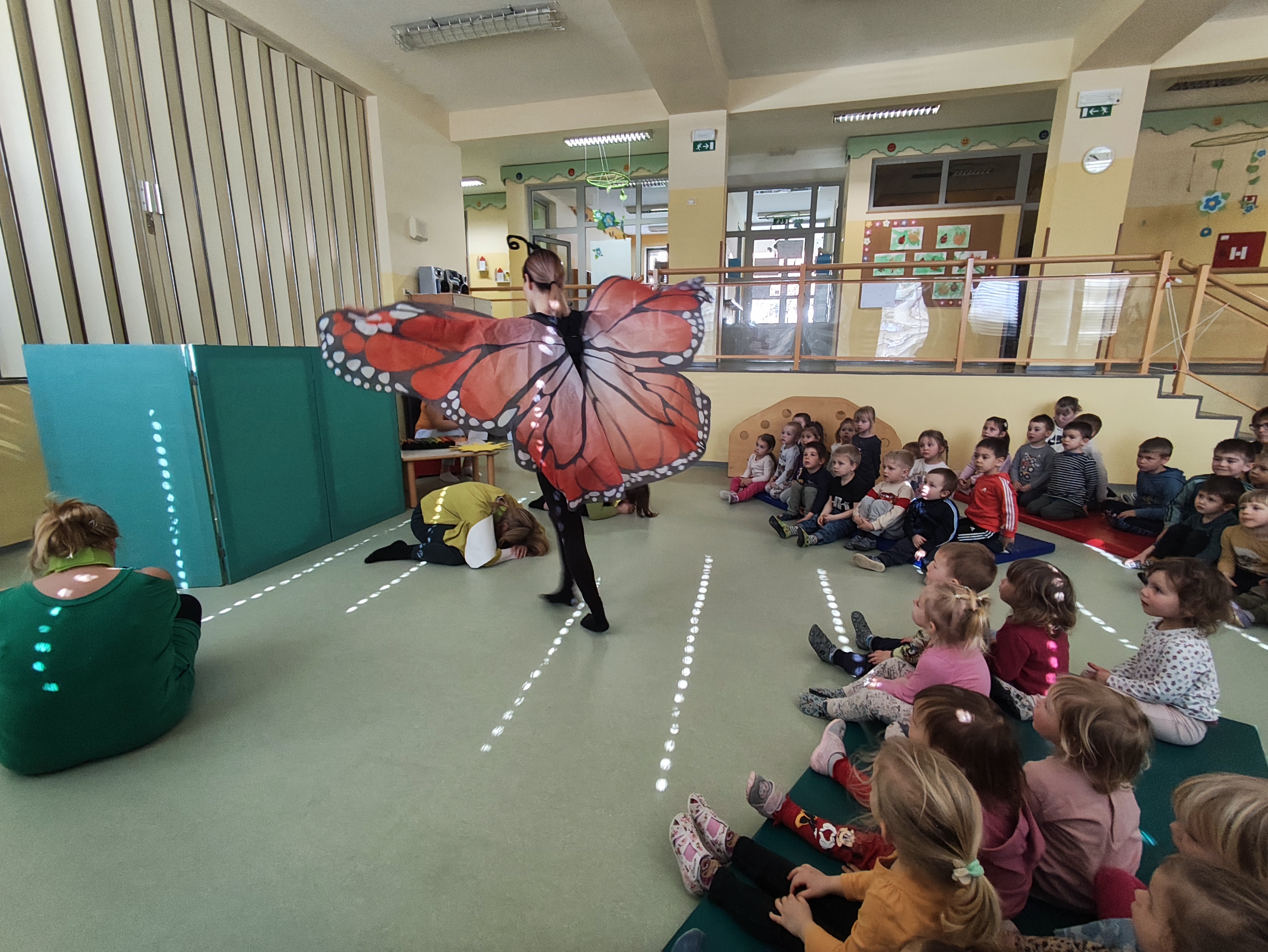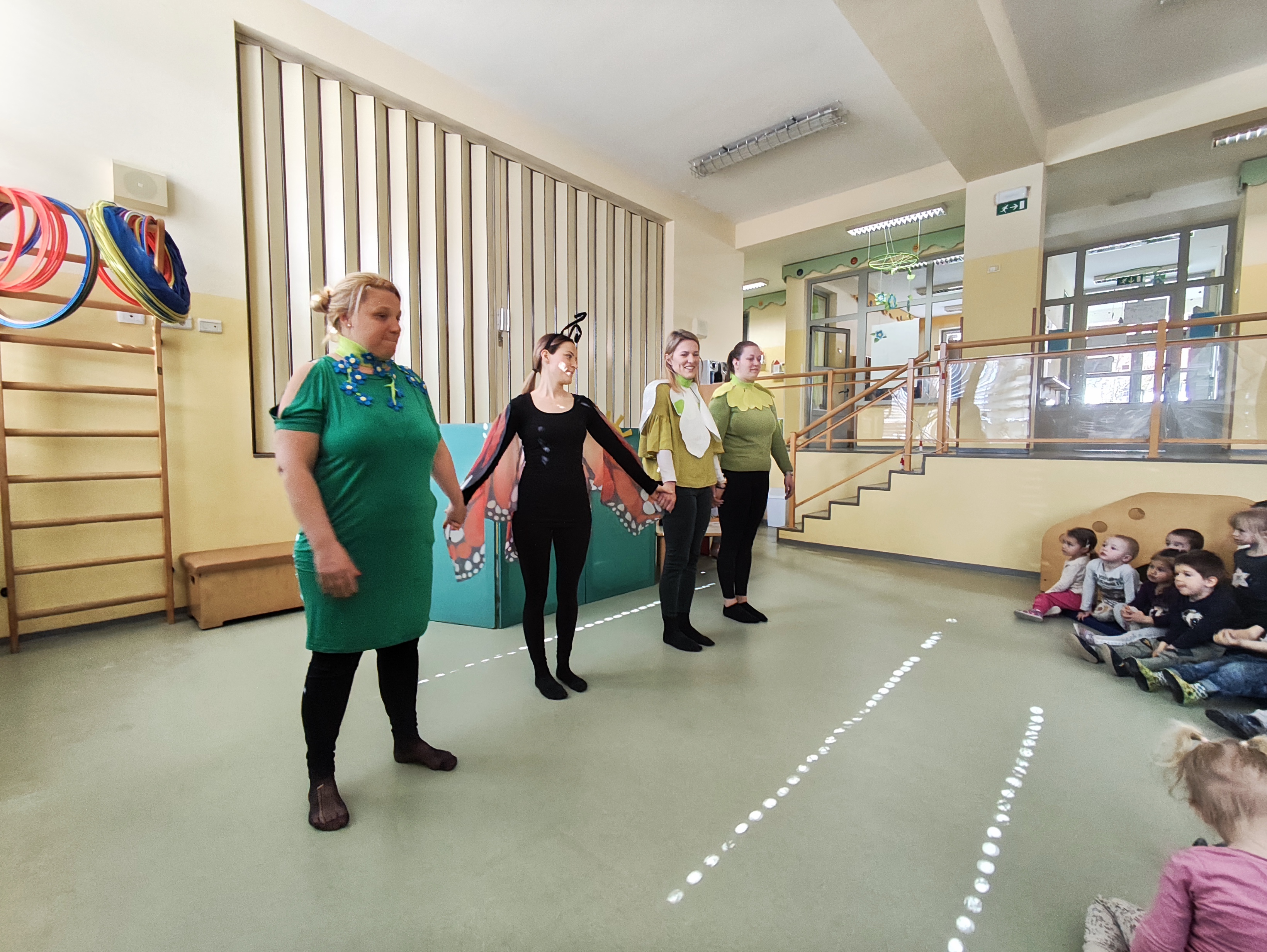 Na prvi pomladni dan je v vrtcu zavladalo prav posebno vzdušje, saj so vzgojiteljice za otroke pripravile spomladansko obarvano gledališko predstavo z naslovom Metuljček išče pomlad. Ko so se otroci vrtca zbrali, so v prijetno okrašenem prostoru, vzgojiteljice stopile v vloge pravljičnih likov ter otroke popeljale v zgodbo o zaspanem travniku, ki ga je po dolgi zimi prebudil nežni metulj. S svojim lahkotnim plesom je najprej zbudil zvonček, ki je sramežljivo pokukal iz zemlje, nato še trobentico, ki je pogumno razprla svoje rumene cvetove, in nazadnje še nežno spominčico, ki je travnik obarvala v modro. Otroci so z navdušenjem spremljali dogajanje, prisluhnili zgodbi o metulju, ter vsaki odpeti pesmi. Vsem otrokom je metulj še dodatno pričaral nasmeh na obraz, ko je poletel med njih in jih pobožal z nežnimi krili. Ob koncu smo še skupaj zapeli in tako obeležili prvi pomladni dan, v duhu ustvarjalnosti, igre in povezanosti z naravo.