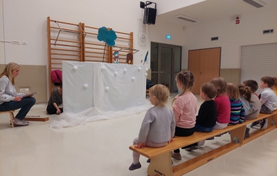 V mesecu februarju smo v vrtcu na Žagi doživeli prav poseben in zelo srčen dogodek. Mamice naših otrok so za najmlajše pripravile čudovito lutkovno predstavo, o sneženem možu, ki je iskal prijatelje za igro, a so mu živali zaradi zimskih navad morale odkloniti družbo. Ko je posijalo sonce se je stopil in tako naredil prostor pomladi.