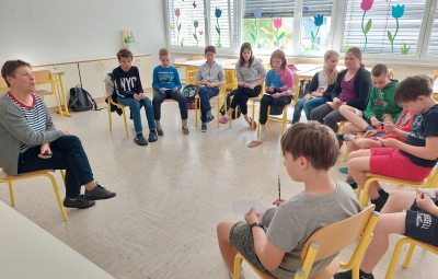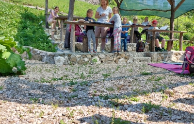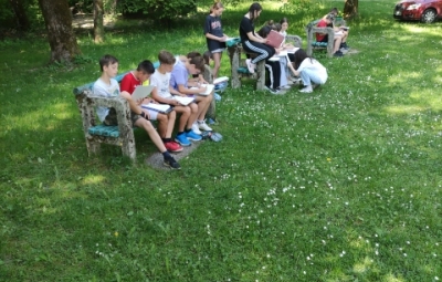 Danes smo pri pouku počeli veliko zanimivih stvari. Spoznavali smo domači kraj in se orientirali v naravi, se učili v učilnici na prostem, raziskovali z mikroskopom, utrjevali matematiko z različnimi pripomočki, izdelovali gradove iz naravnih materialov, pri slovenskem jeziku tudi plesali in peli. Deveti razred je obiskal pustolovski park, na Podružnični šoli Žaga so se družili z vrstnki s podružnnice v Soči. Skupaj so izvajali dejavnosti v okviru projekta E-hiša.
