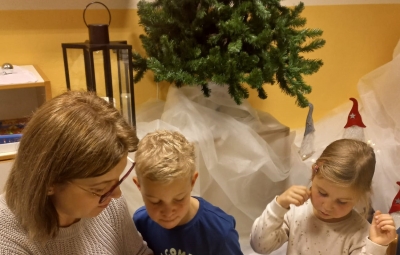 V prvih dneh decembra so otroci po skupinah s svojimi vzgojiteljicami pripravili praznični nastop za starše in skupaj z njimi tudi ustvarjali in okrasili igralnice.