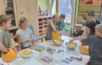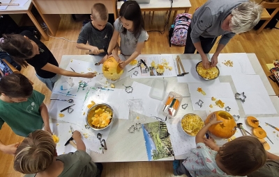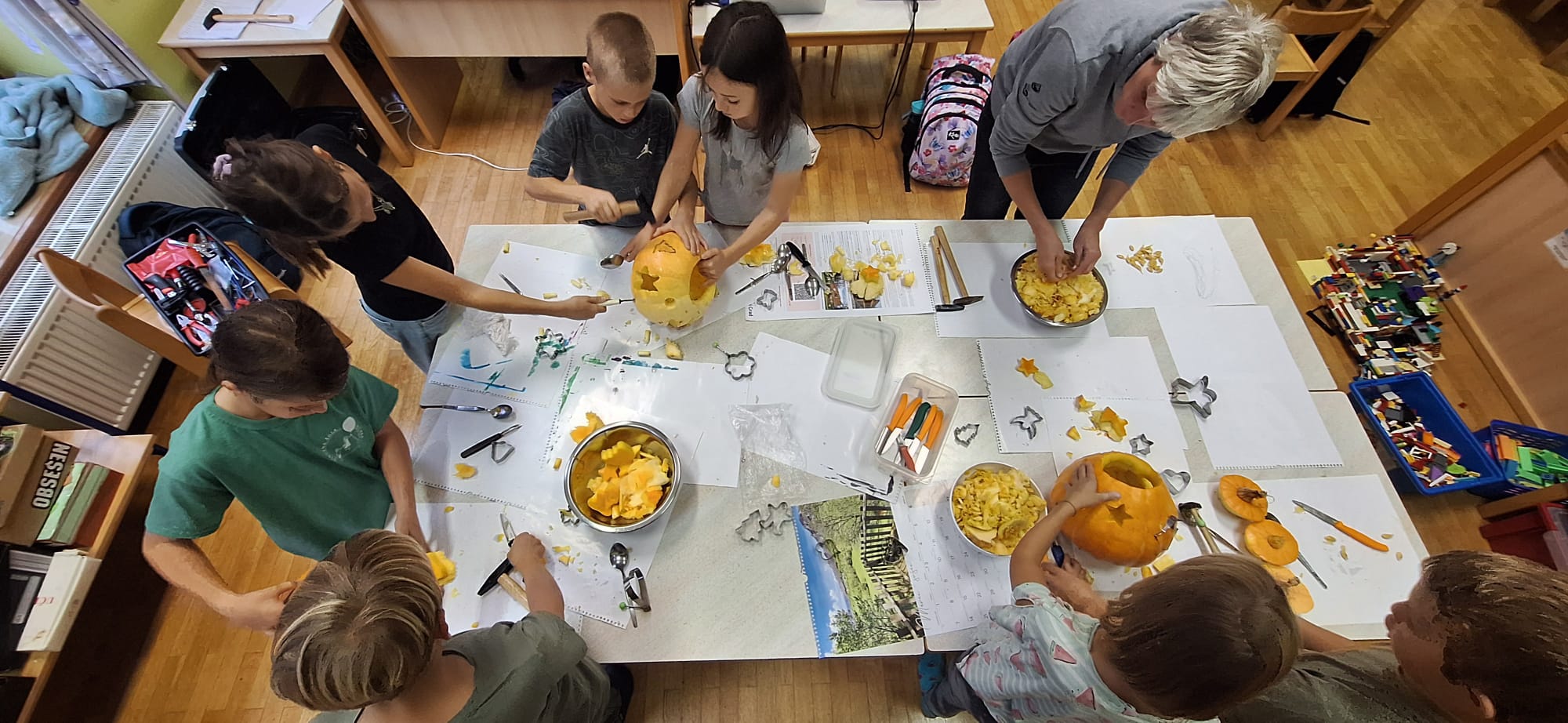 Tik pred jesenskimi počitnicami smo na šoli ustvarjali v pravem jesenskem duhu! Učenci so s pomočjo modelčkov izrezovali buče, s katerimi smo okrasili šolski balkon. Nastale so prave male umetnine, ki so v šolo prinesle toplino, barve in veselje pred zasluženimi počitnicami.