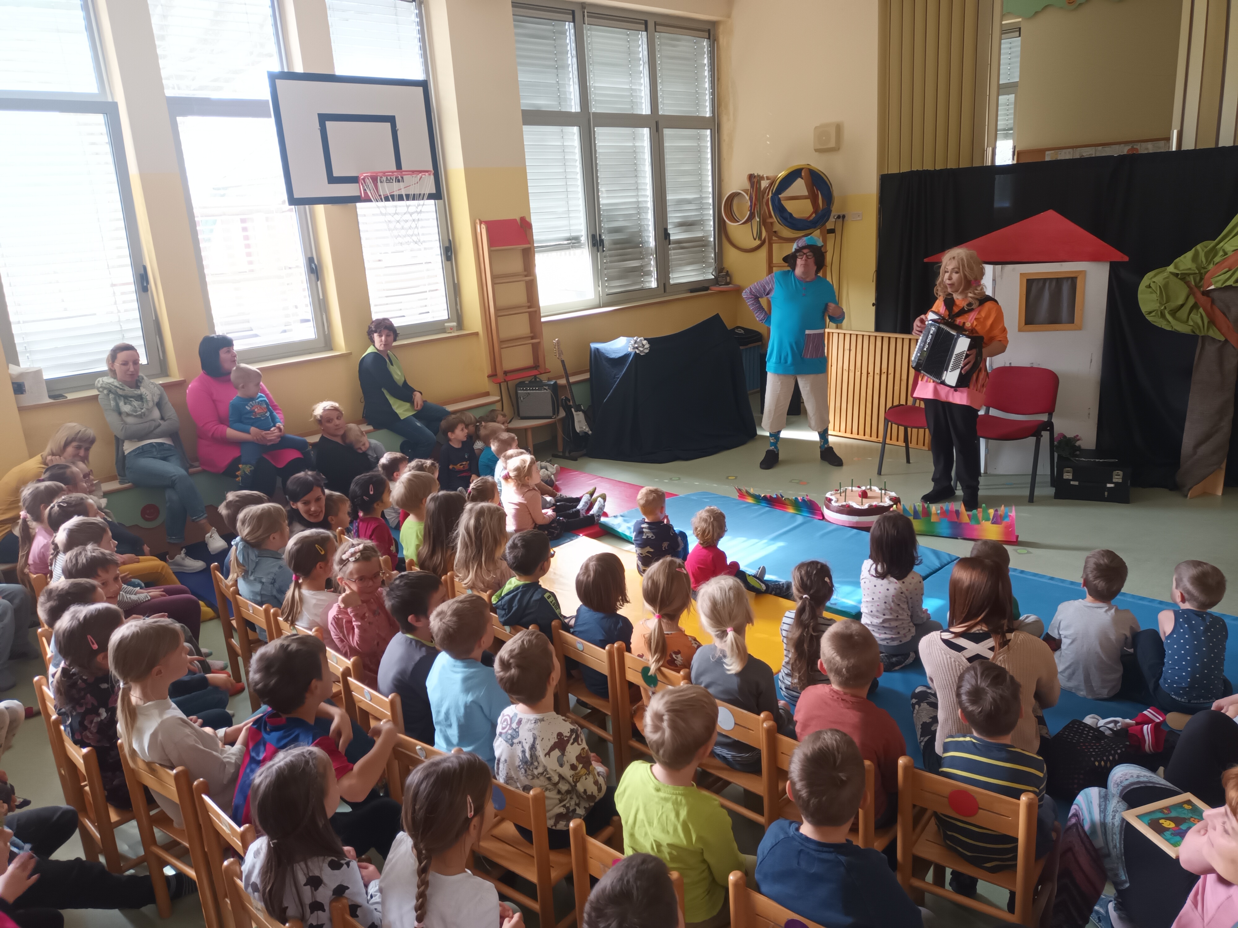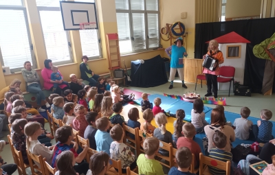 V torek, 2. 4. 2024 sta Vrtec Bovec obiskala Marta Zore in Gojmir Lešnjak Gojc ter otrokom odigrala svojo predstavo Zvonček.