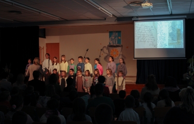 Nastop učencev na Reviji otroških in mladinskih pevskih zborov v...