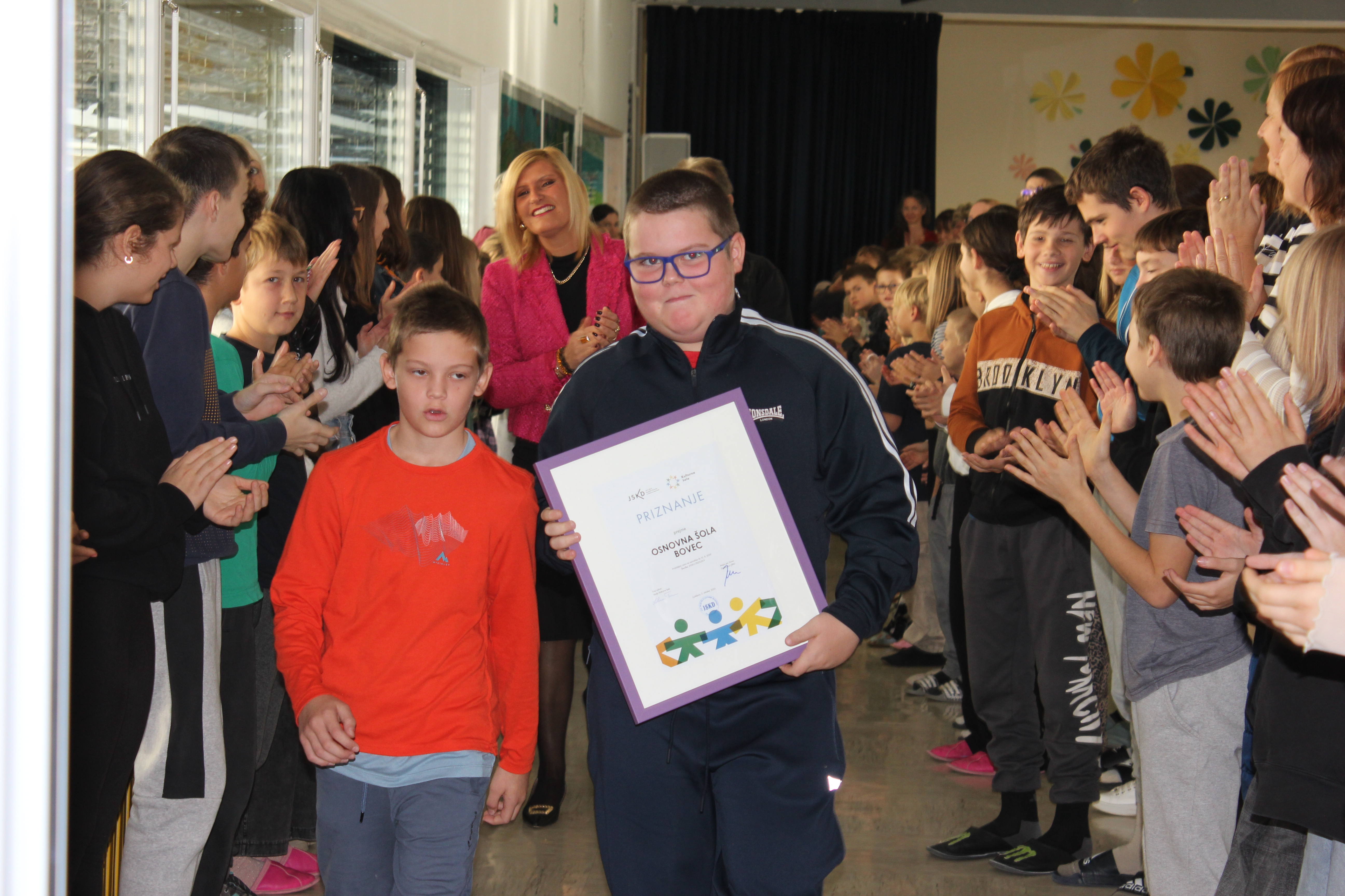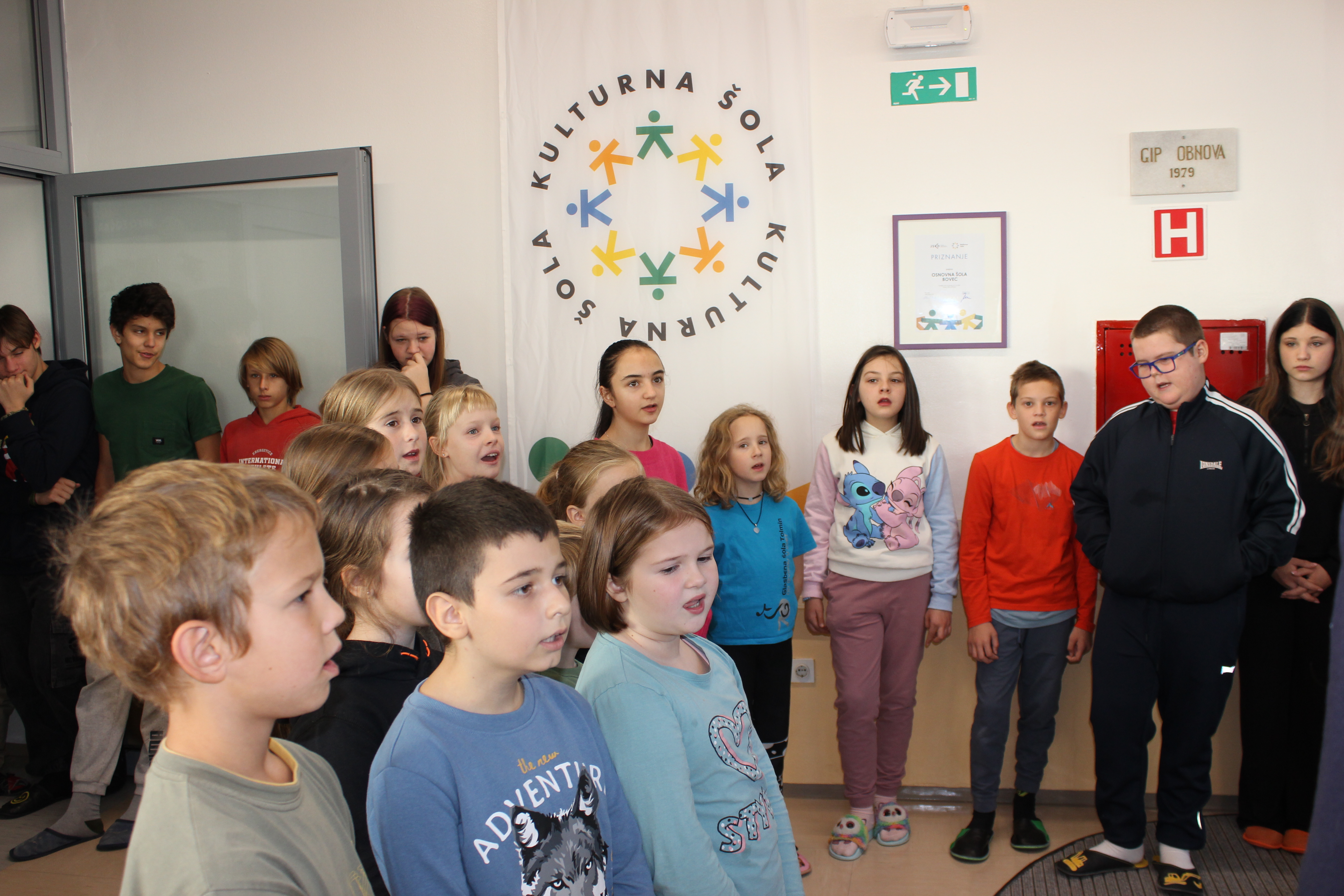 Danes smo z izobešanjem zastave počastili naziv, ki ga je naša šola prejelaz letošnjim šolskim letom. Izjemno sem ponosna in vesela, da je Javni sklad Republike Slovenije za kulturne dejavnosti prepoznal in nagradil naš trud z  nazivom Kulturna šola. Naziv je rezultat dolgotrajnega dela, predanosti in sodelovanja vseh zaposlenih, učencev, staršev in lokalne skupnosti. Vsak dan se trudimo, da je kultura del našega vsakodnevnega delovanja in obnašanja. Zadnja leta smo skupaj ustvarjali mnoge kulturne dogodke, gledališke predstave, likovne razstave, bralne projekte, pevske, plesne ter folklorne nastope. Naša šola je postala prostor, kjer vsak učenec lahko izrazi svoj talent in svojo zgodbo.